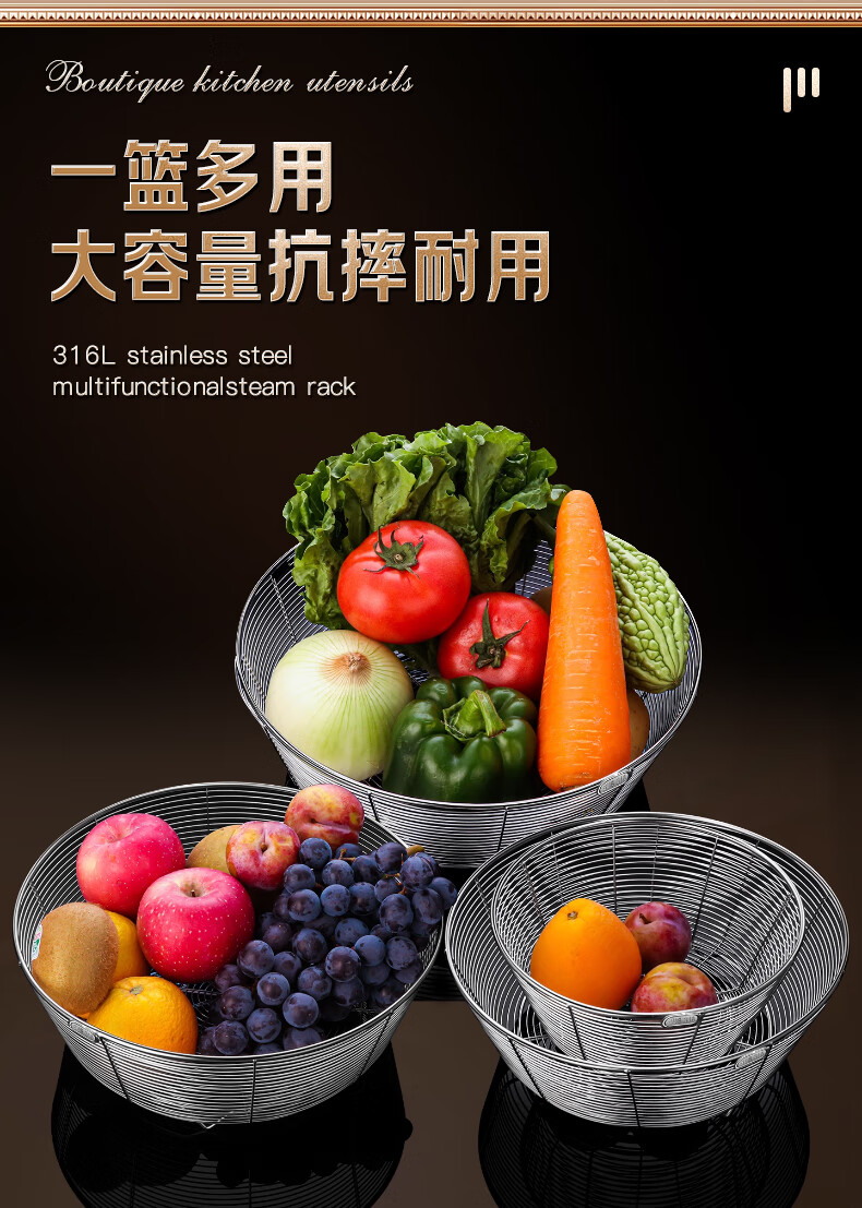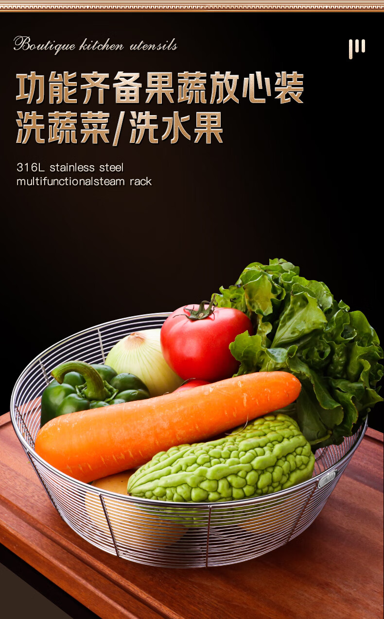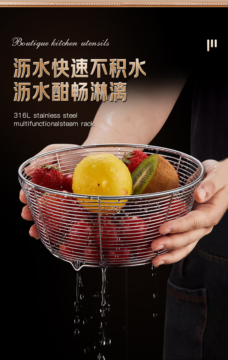 Lianna 316L stainless steel drain basket kitchen round sink rack sieve living room household fruit basket storage basket upgraded 316L steel 20cm 1 pack