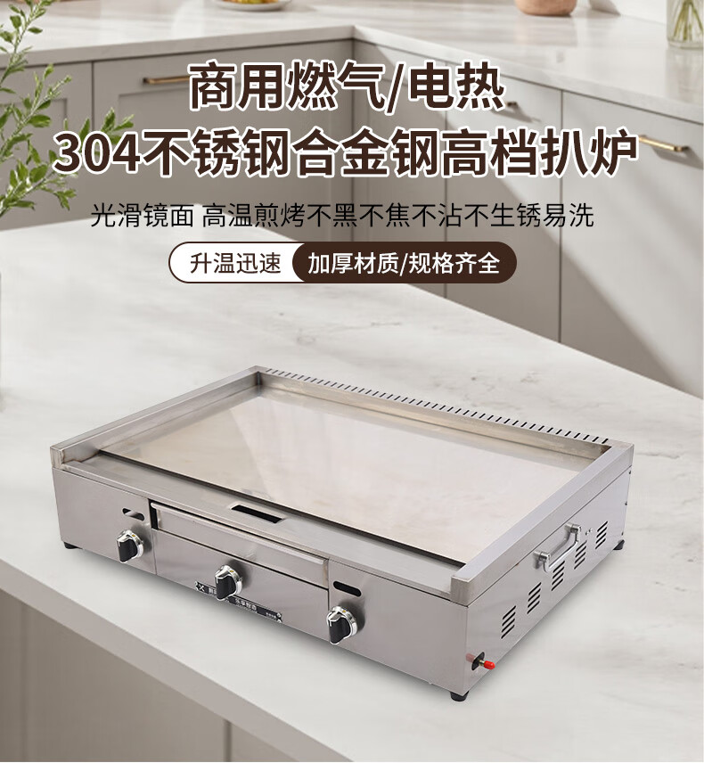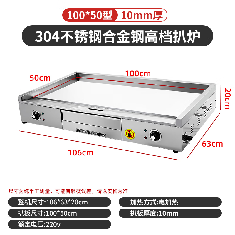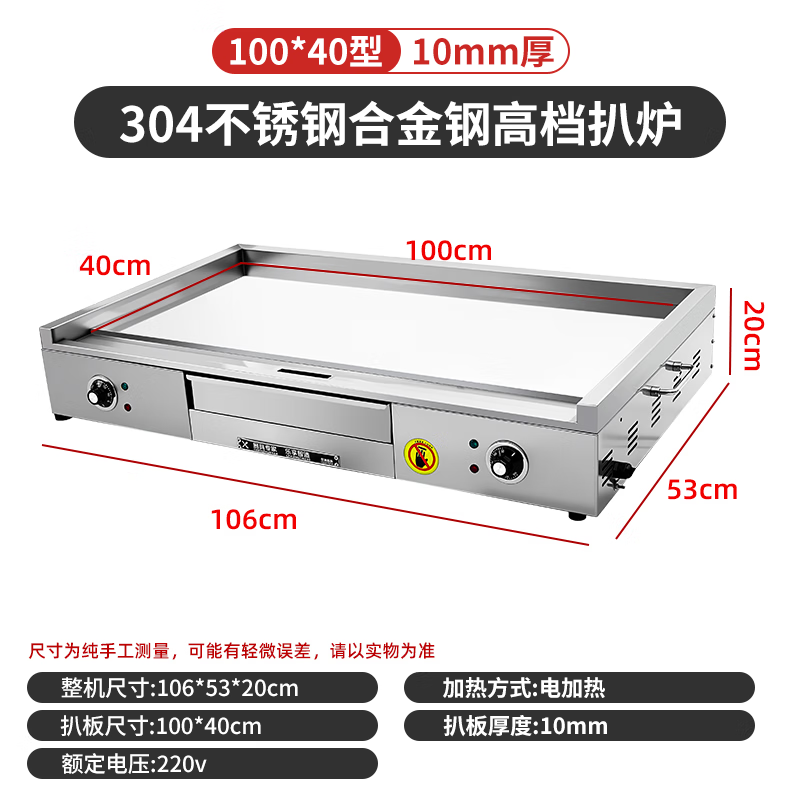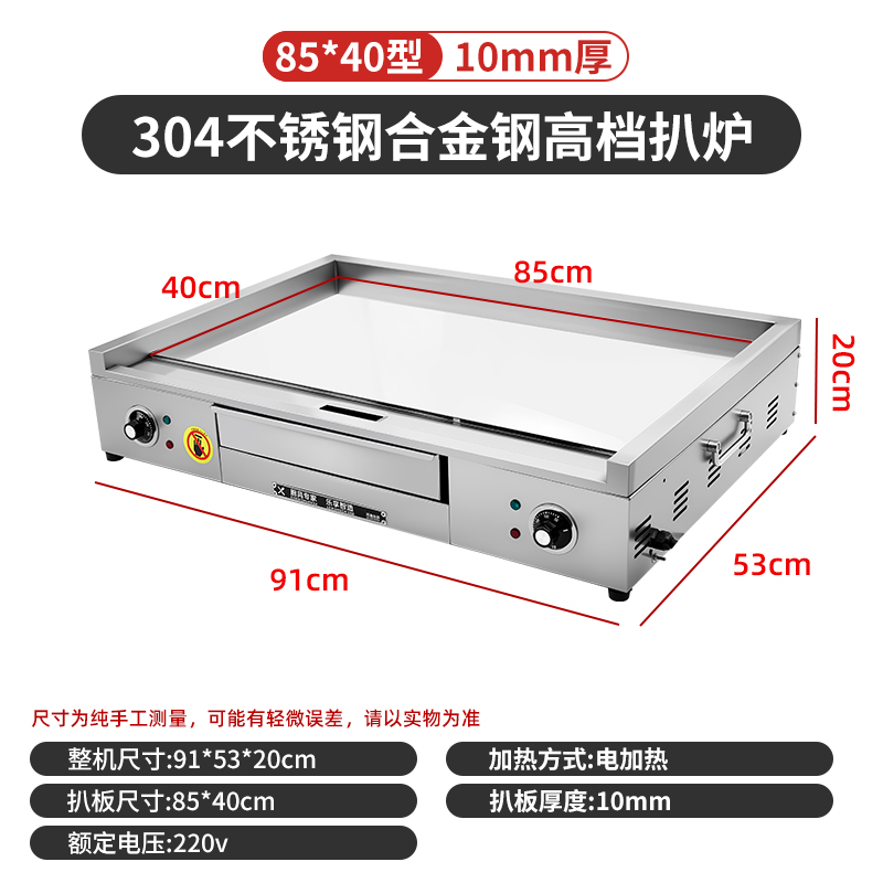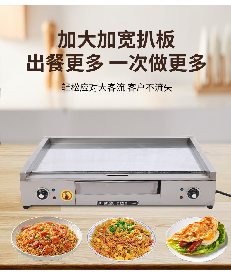 Dekebang's new stainless steel alloy high-end griddle, large oil box, hand-caught cake, egg-filled pancake, grilled cold noodles, fried rice, fried steak burger, electric 85*50 stainless steel alloy griddle plate thickness 10 mm