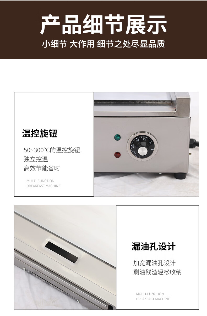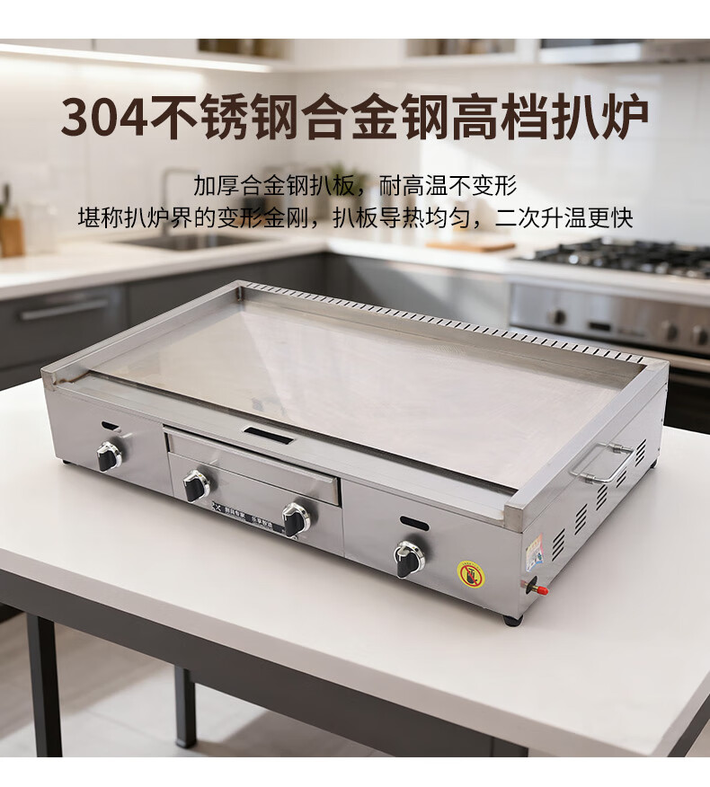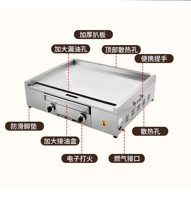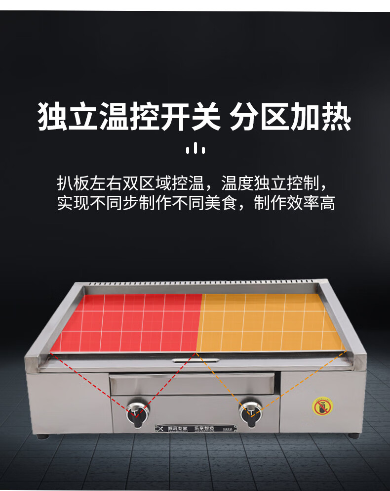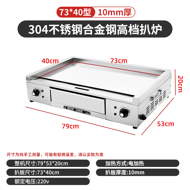 Dekebang's new stainless steel alloy high-end griddle, large oil box, hand-caught cake, egg-filled pancake, grilled cold noodles, fried rice, fried steak burger, electric 85*50 stainless steel alloy griddle plate thickness 10 mm