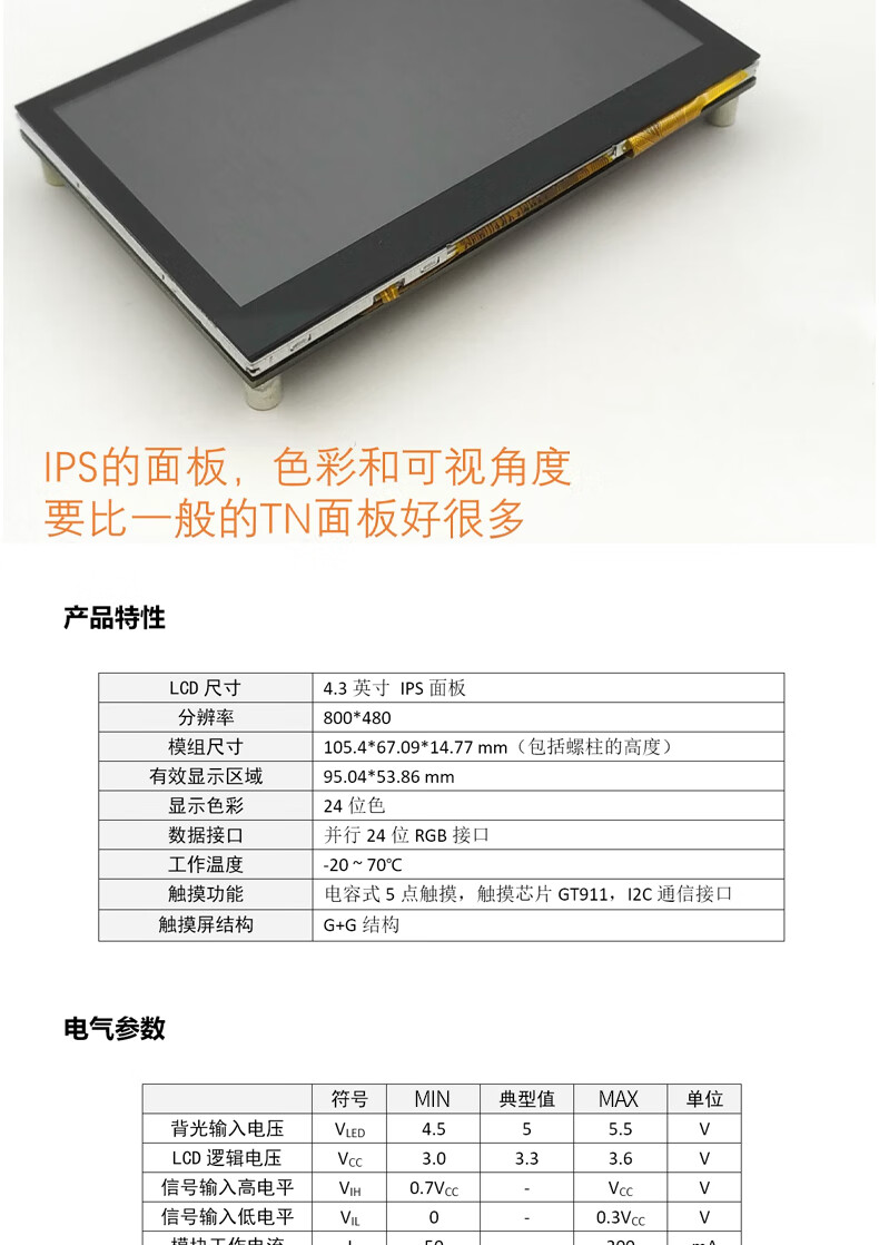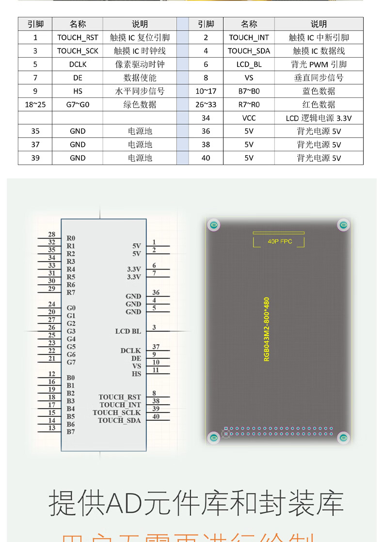 YourCee 4.3-inch TFT LCD screen RGB interface MCU STM32 display module Capacitive touch screen No specifications No specifications