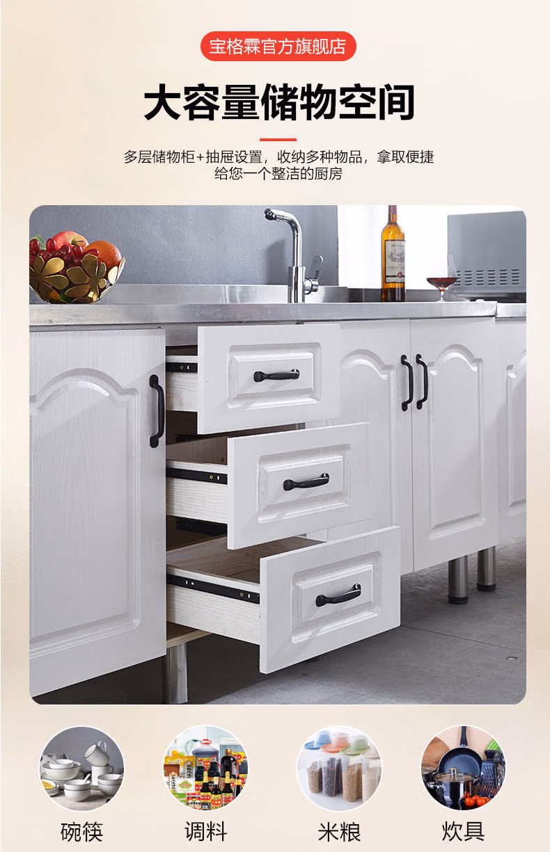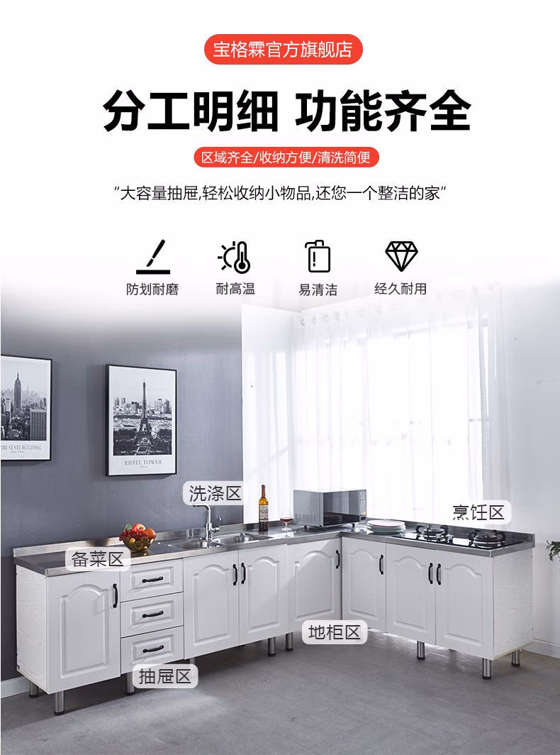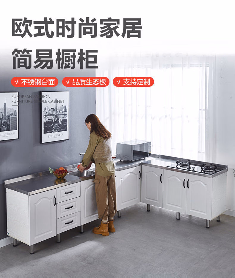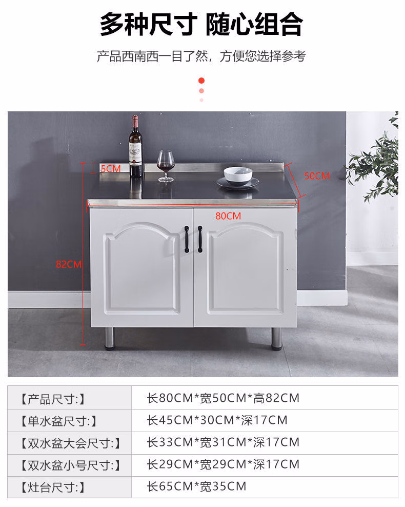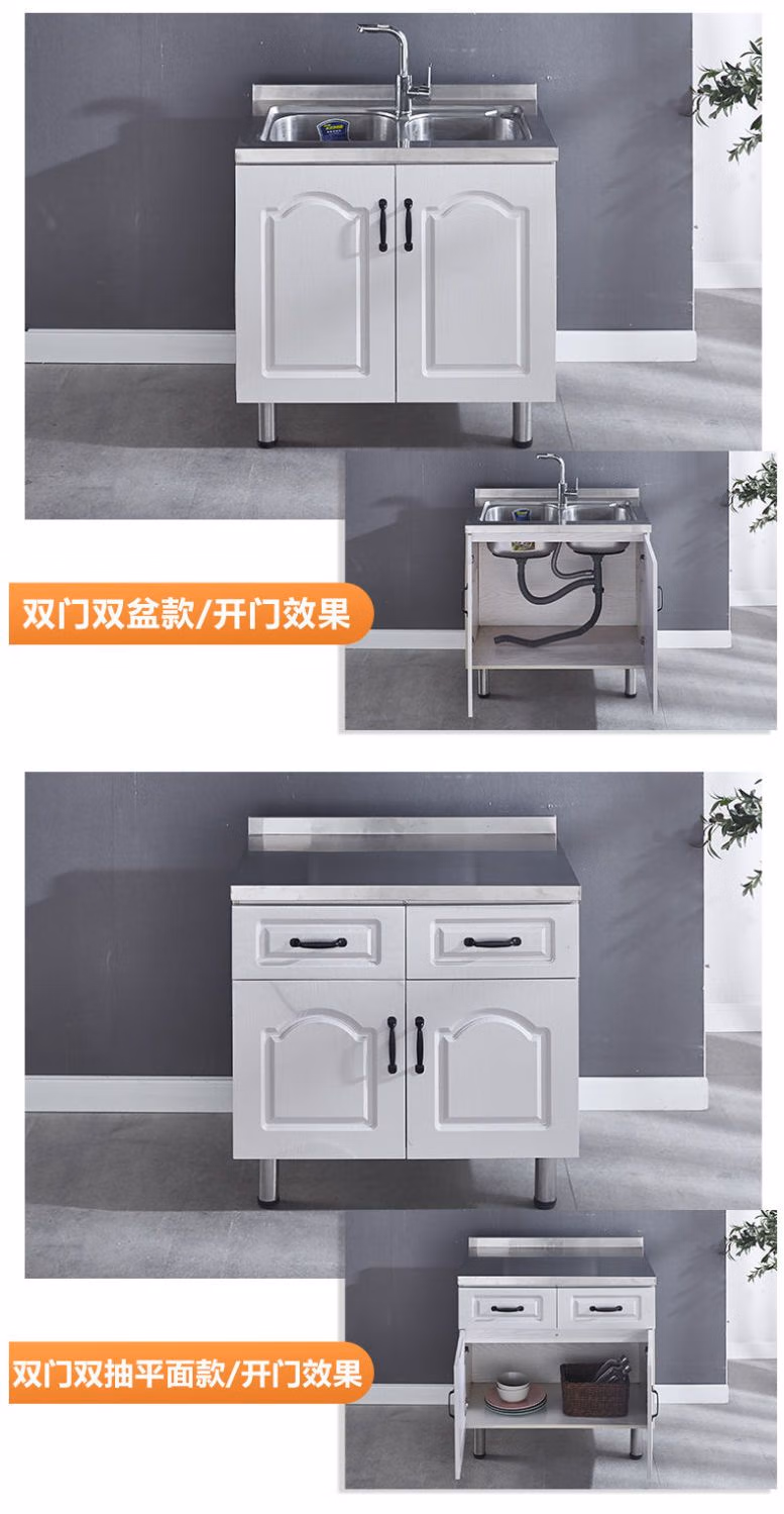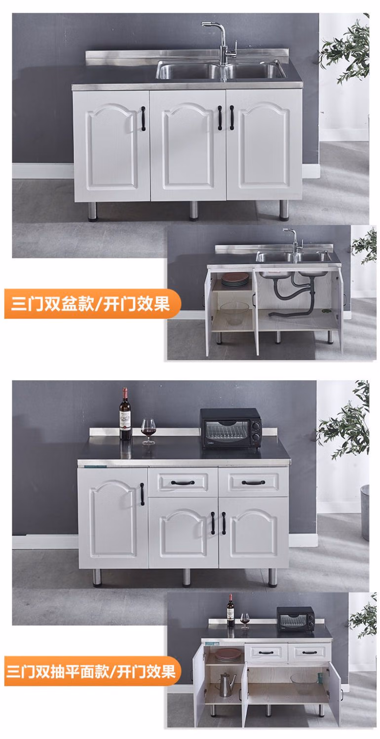 Sanqihu cabinet stainless steel cabinet combination cabinet stove cabinet kitchen household cabinet storage cabinet rental room cabinet customization stove model embedded stove hole free customization 100CM double door