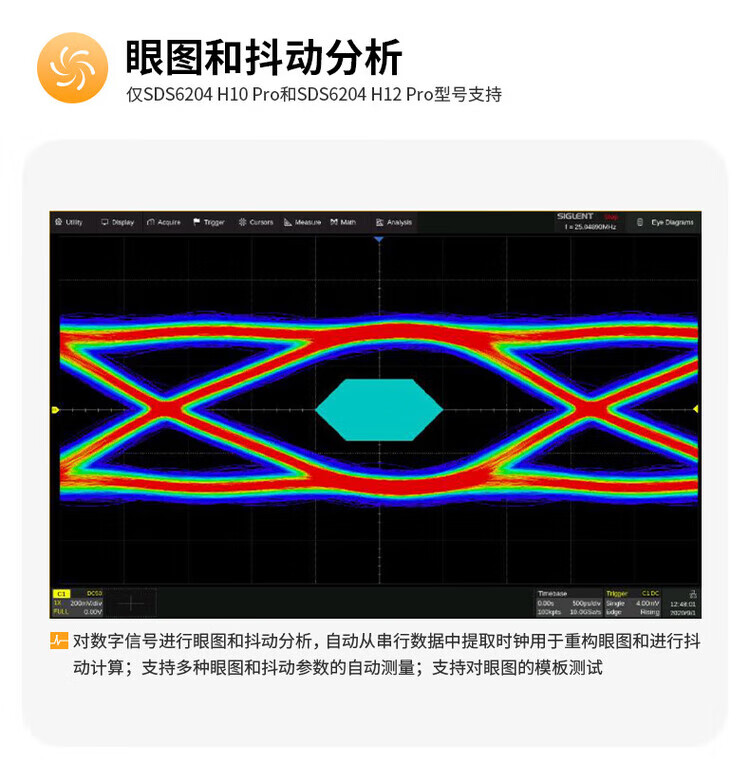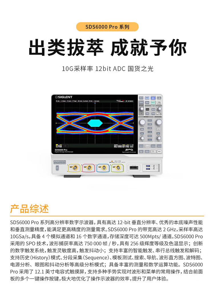 SIGLENT high-end digital phosphor oscilloscope, high-resolution mixed signal, powerful eye diagram, 12.1-inch four-channel SDS6204 H10 Pro/2G