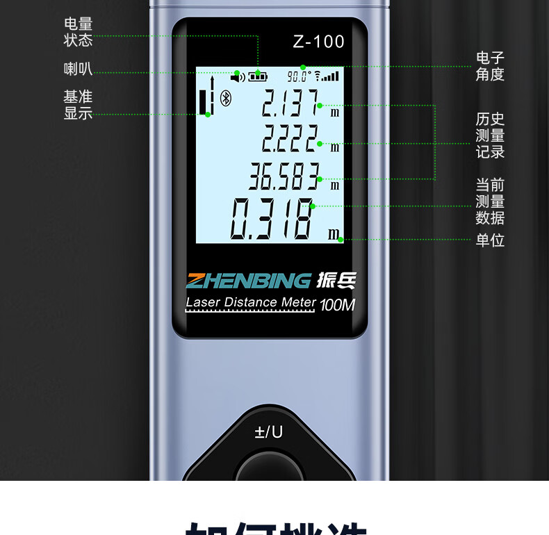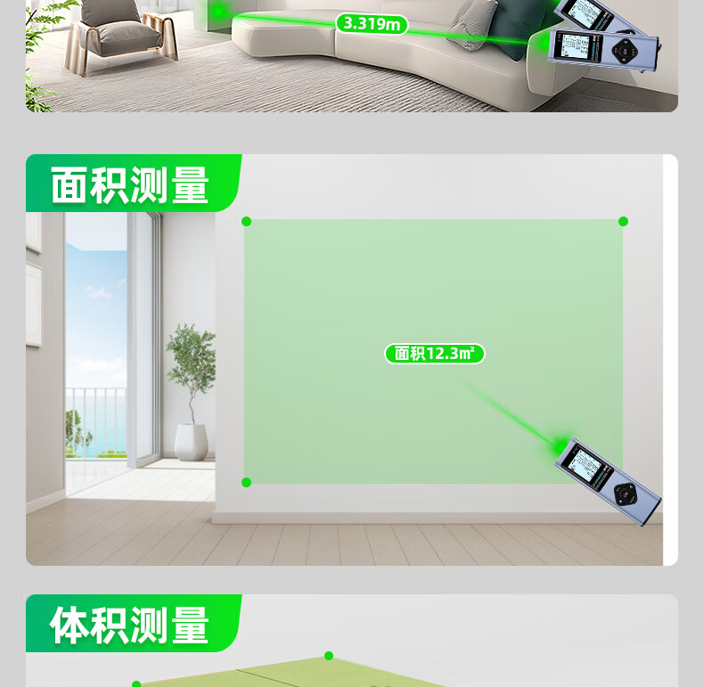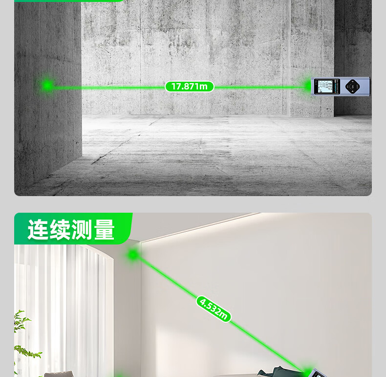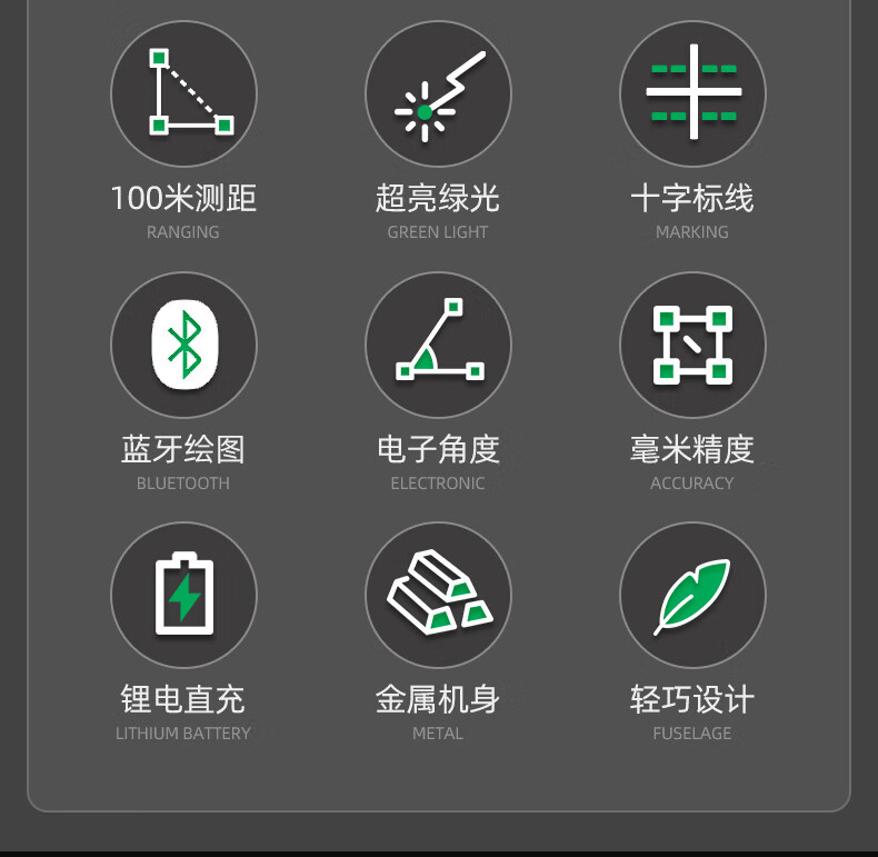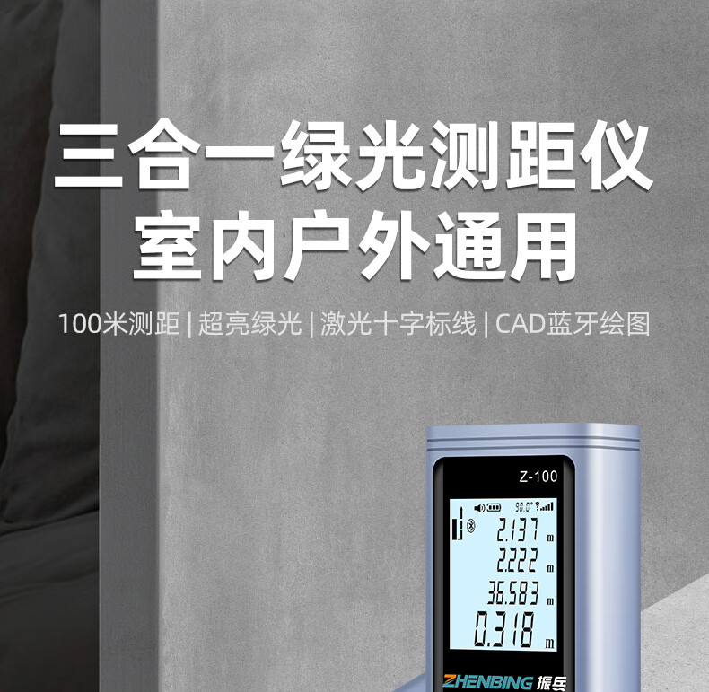 Zhenbing Laser Distance Meter Precision Electronic Ruler Patented Research and Development Measuring Instrument Technology Drawing Ruler Bluetooth 3D Measuring Instrument Green Light All-Purpose Model 40 Meters + Green Light Cross + CAD Drawing + Electronic Angle + Voice Broadcast