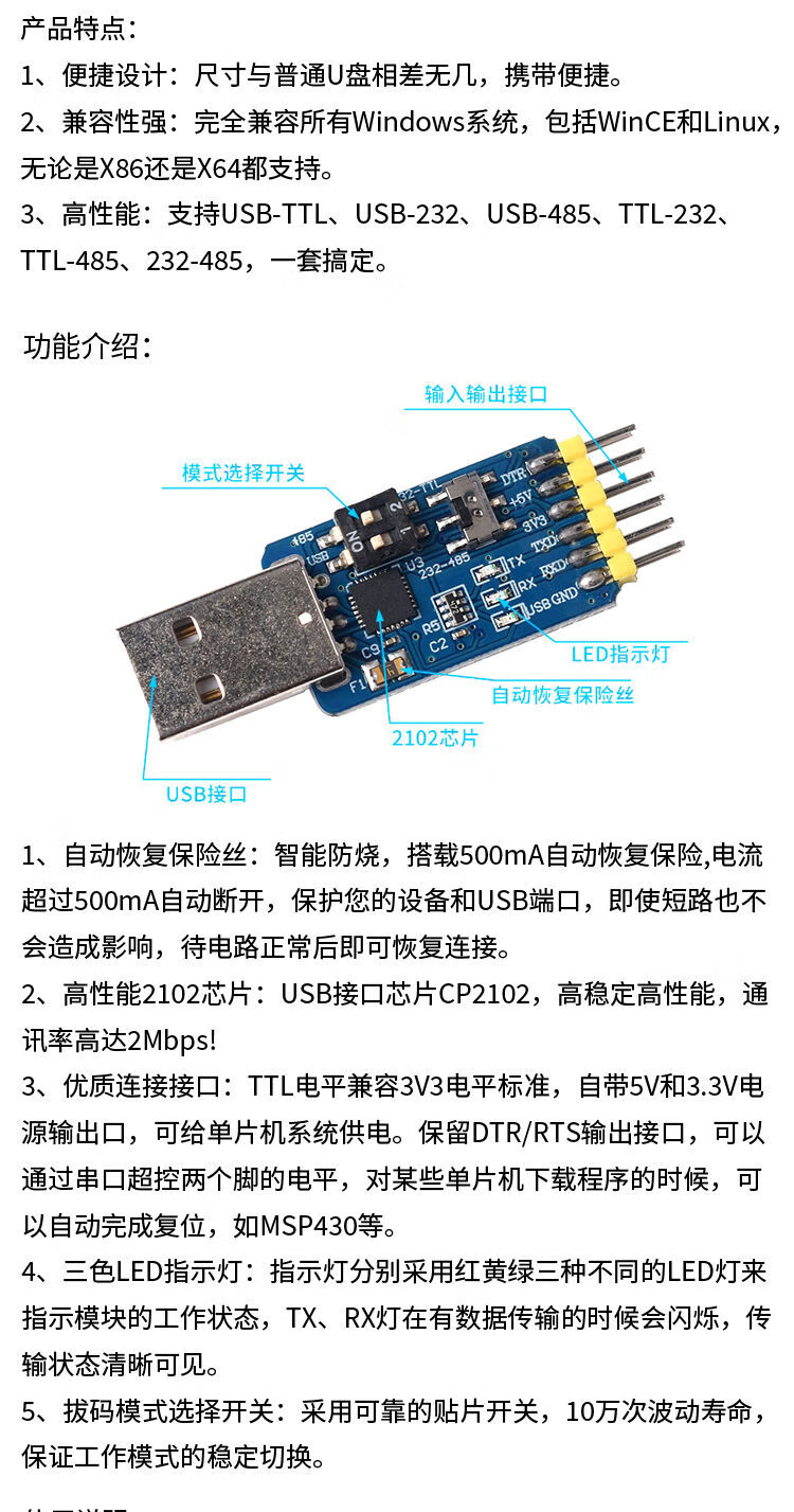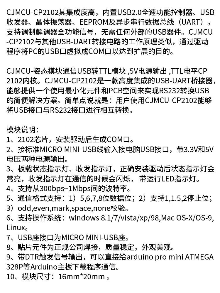 CH9102/CP2102 module USB to TTL serial port UART flash upgrade board STC downloader CP2102 module TYPE-C usb interface