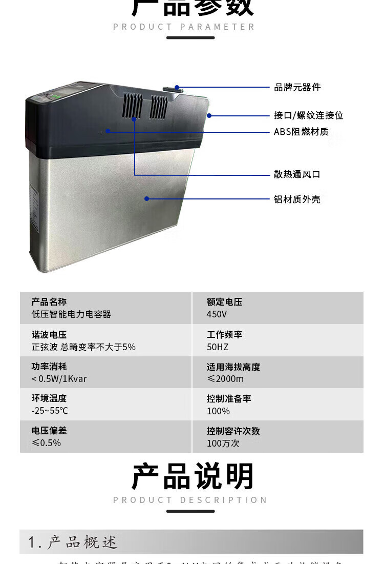 Reactive power compensation smart capacitor three-phase smart integrated low-voltage parallel power capacitor capacitor cabinet dedicated 30kvar 450v total compensation