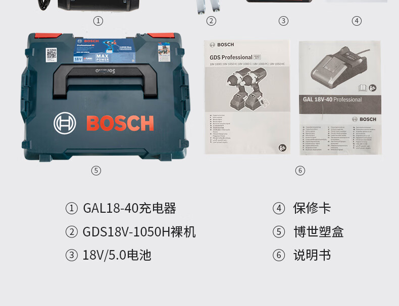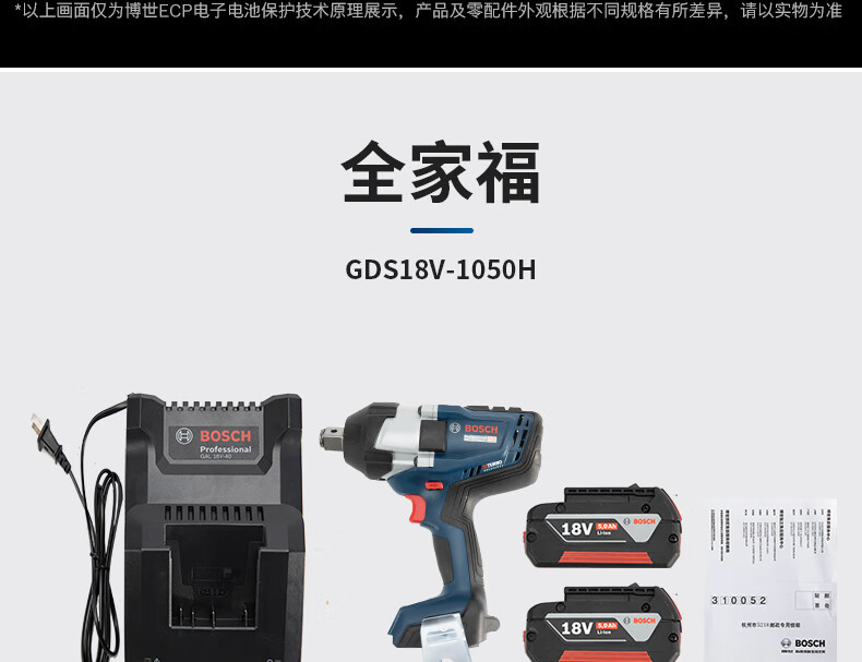 Bosch (BOSCH) electric wrench GDS18V-1050H Dr. rechargeable high-torque wind cannon scaffolding installation tool GDS18V-1050H 4.0 two batteries and one charger