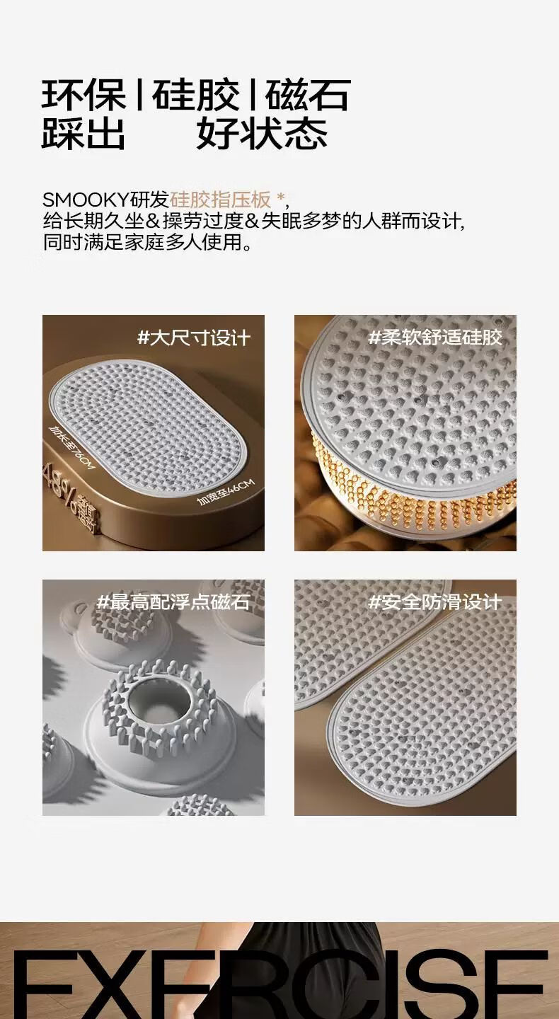 SMOOKY 6th Generation Silicone Bear Bump Acupressure Board Indoor Super Jogging Special Upgraded Large Acupressure Board Yanyu Gray