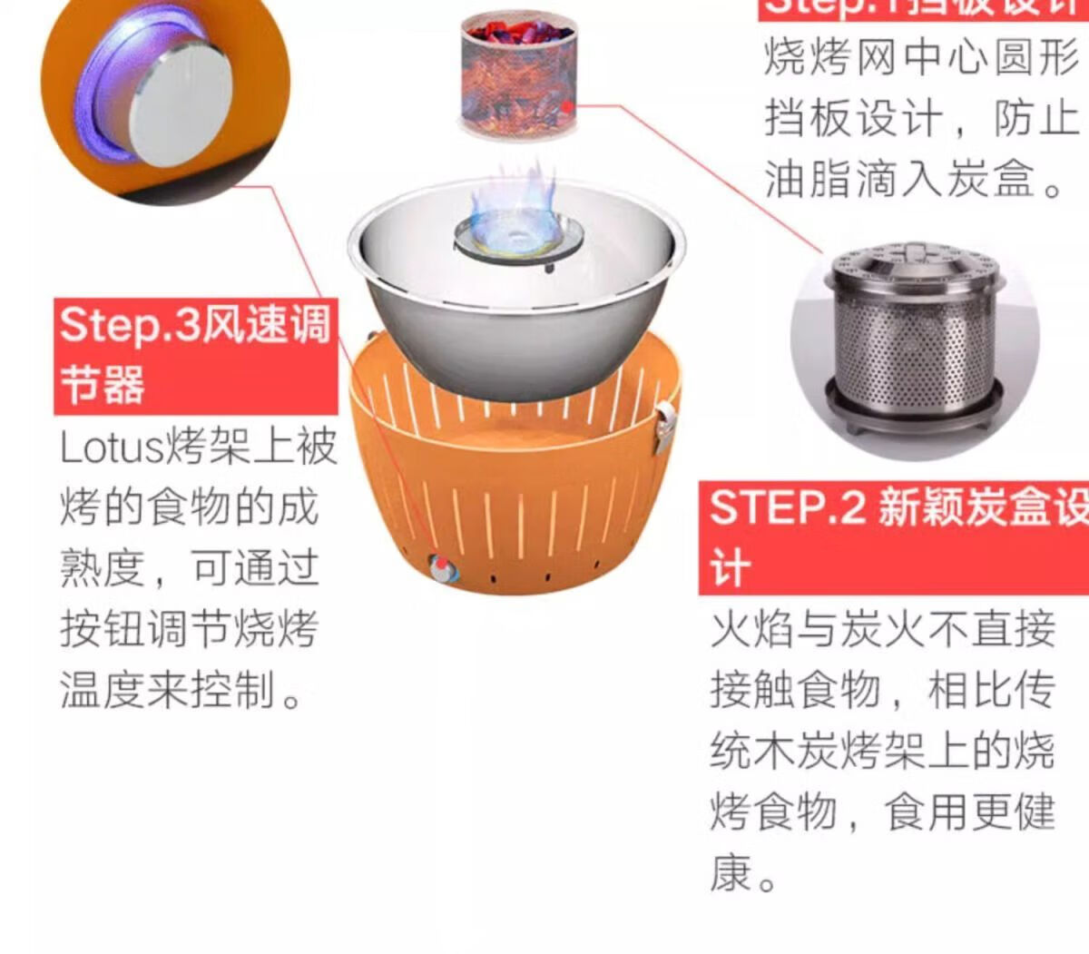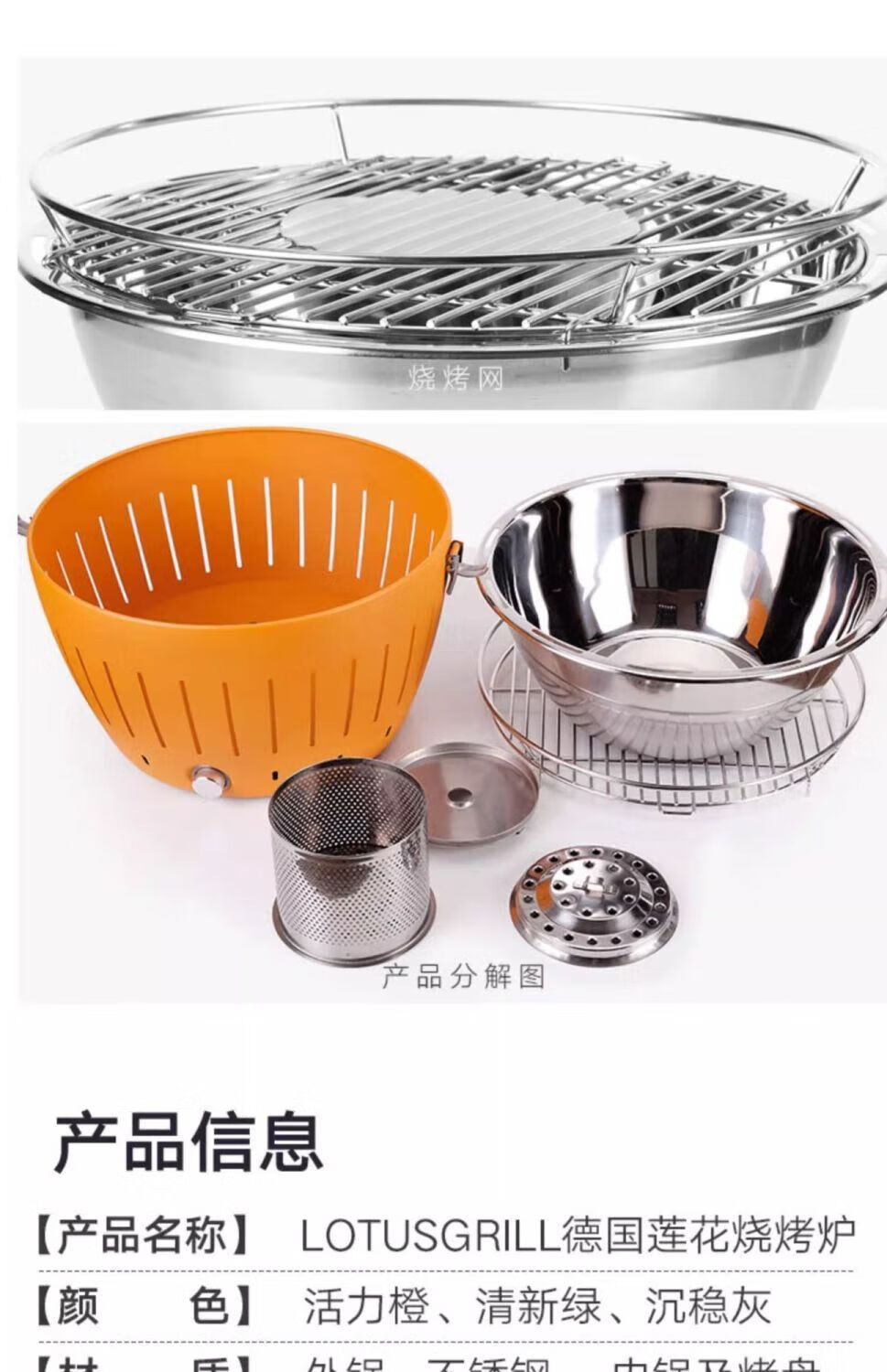 NAOISKEY LotusGrill German Lotus barbecue household oven-free grill outdoor villa stove charcoal barbecue gray small size