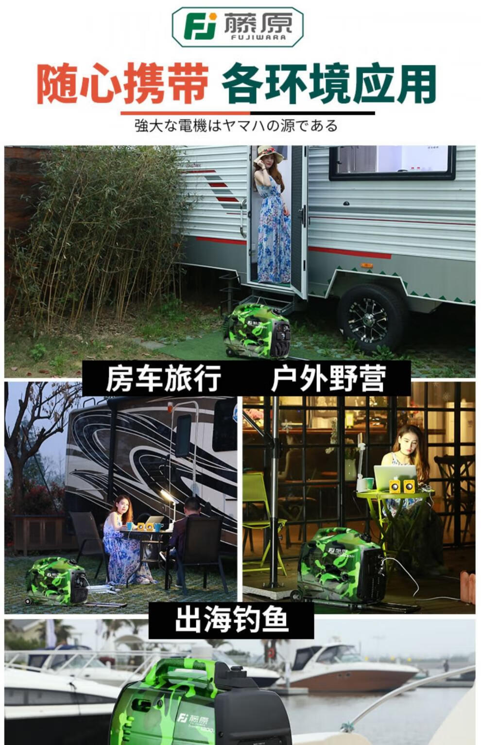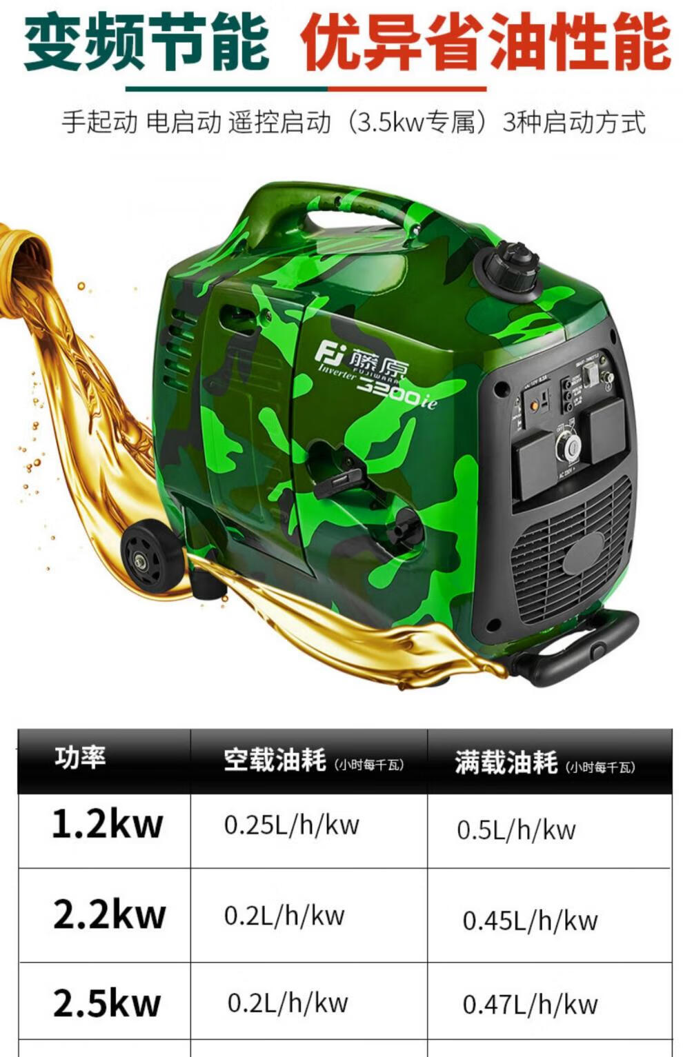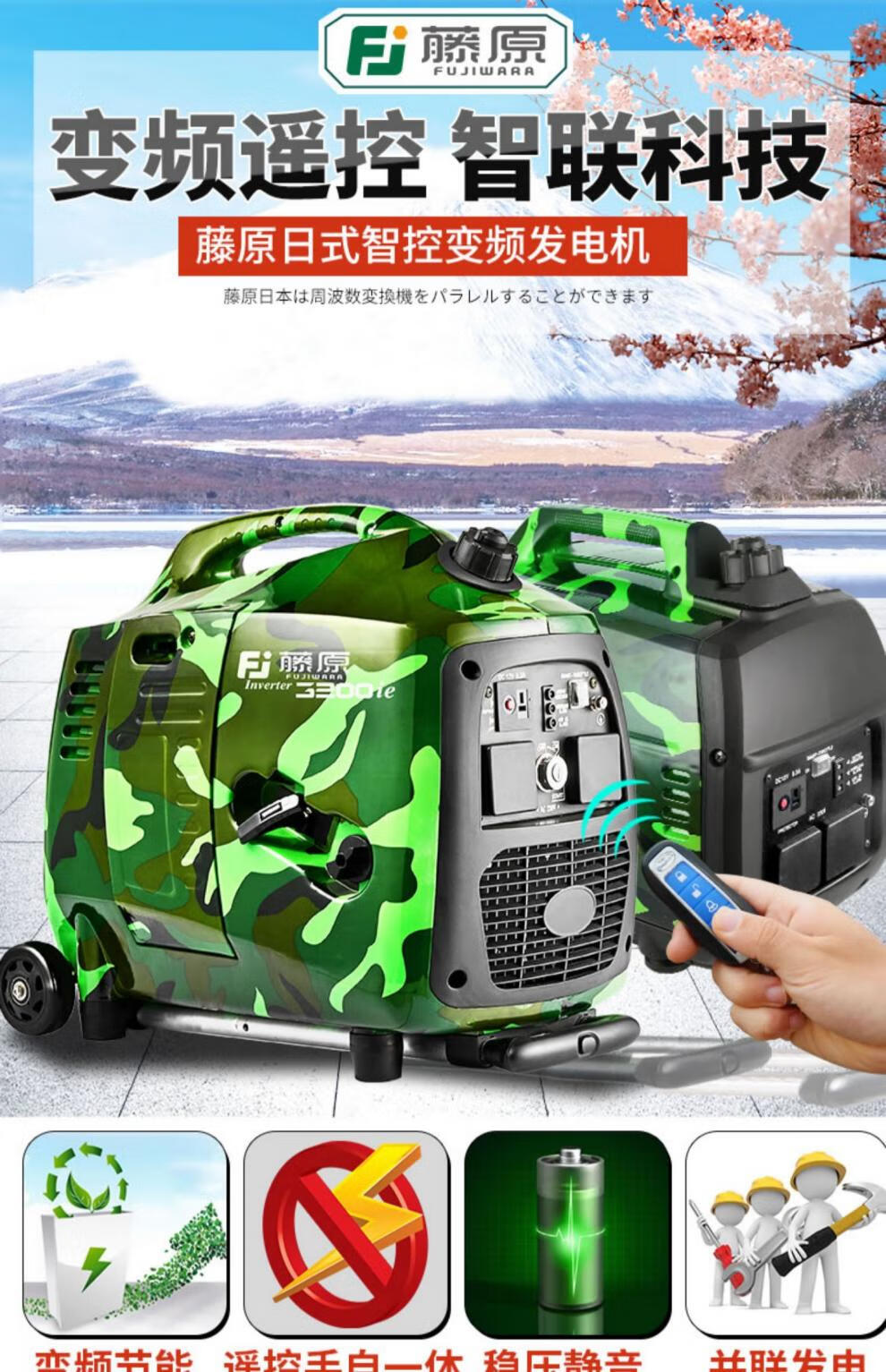 He Jiagong Fujiwara micro gasoline generator 220v household small silent variable frequency backup emergency outdoor camping portable 1.2Kw camouflage variable frequency generator