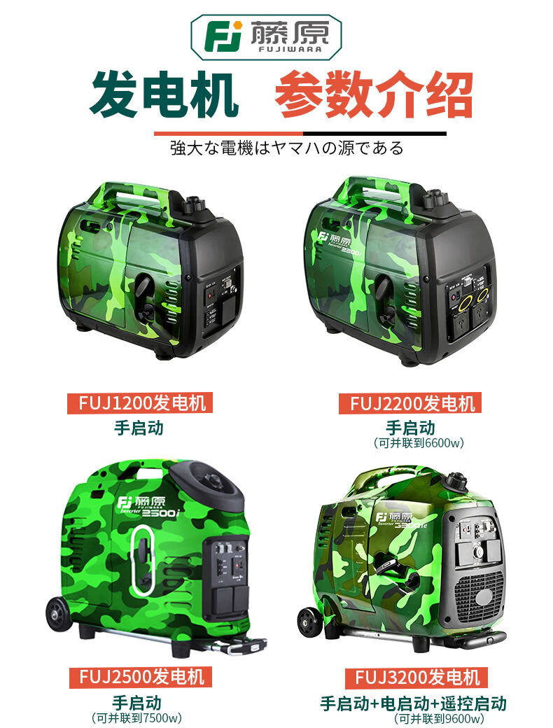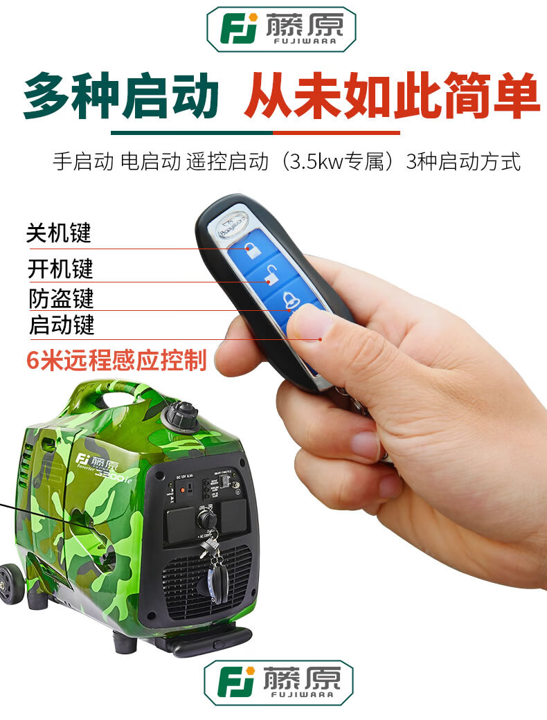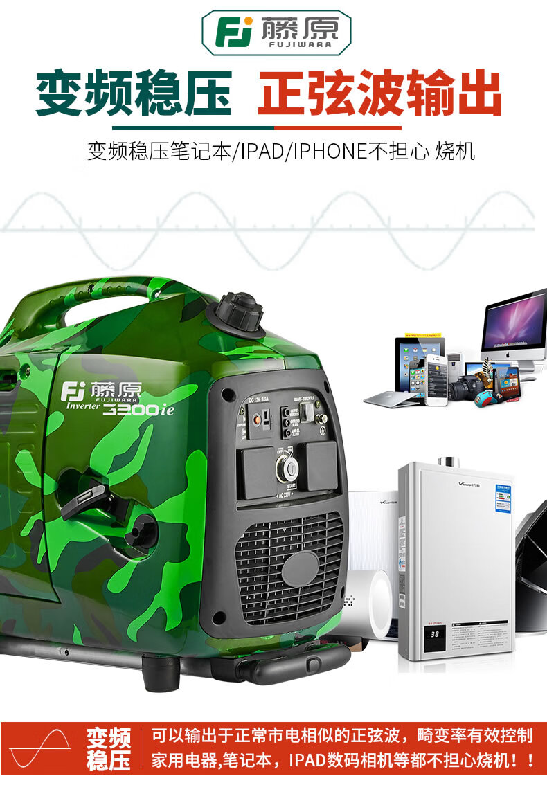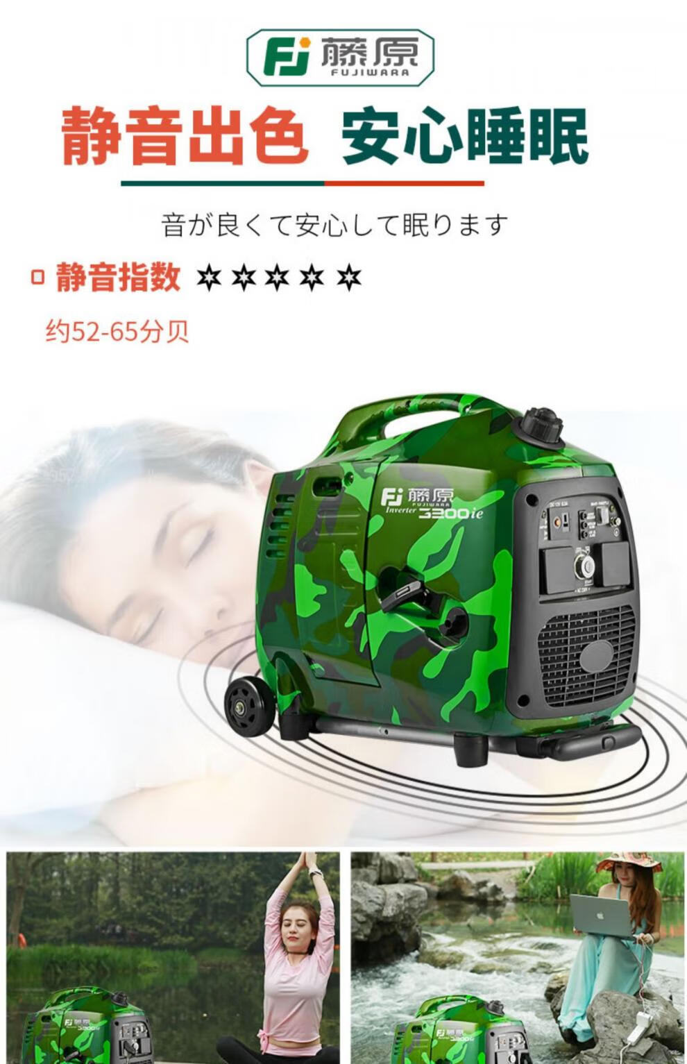 He Jiagong Fujiwara micro gasoline generator 220v household small silent variable frequency backup emergency outdoor camping portable 1.2Kw camouflage variable frequency generator