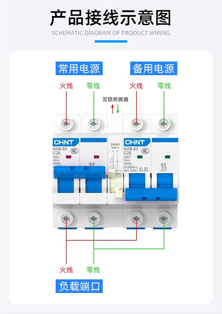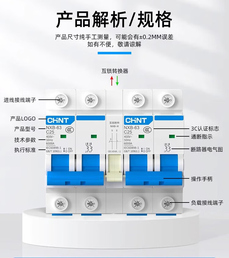 Chint two-way dual power automatic conversion switching air switch interlocking circuit breaker dual-way controller 220v 6A 2P