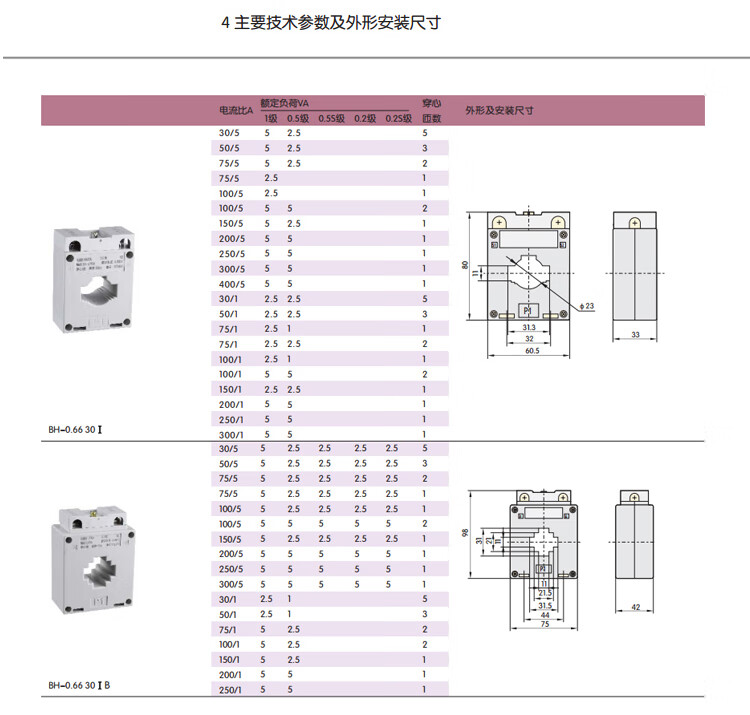 Chint current transformer BH-0.66 75/5 100/5 150/5 200/5 300/5 400/5 BH-0.66_3000_5 aperture 120II
