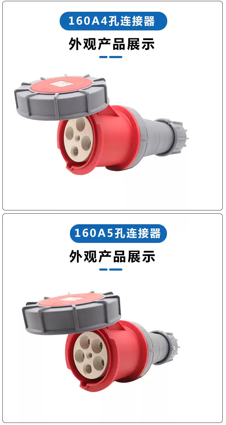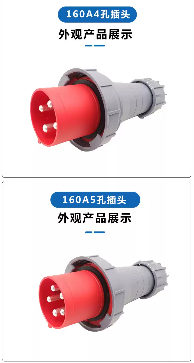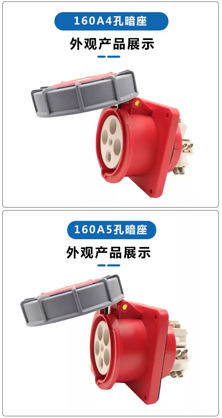 Special high-power 160A plug and socket for flood control pump distribution box 4-core 5-core IP67 industrial aviation plug 160A 4-hole concealed seat