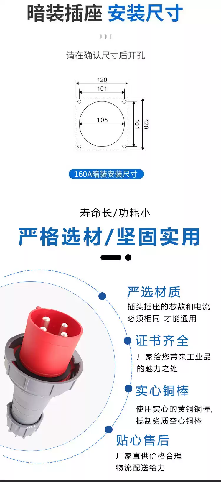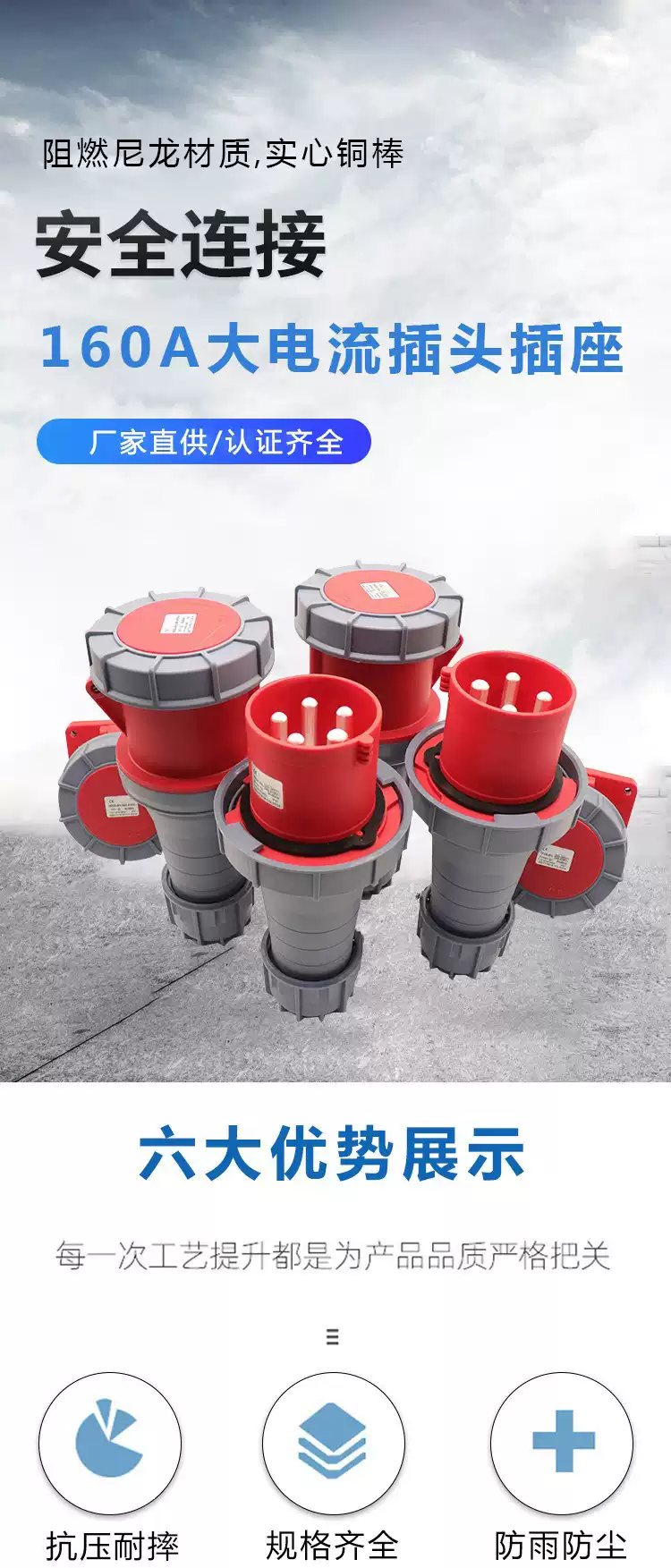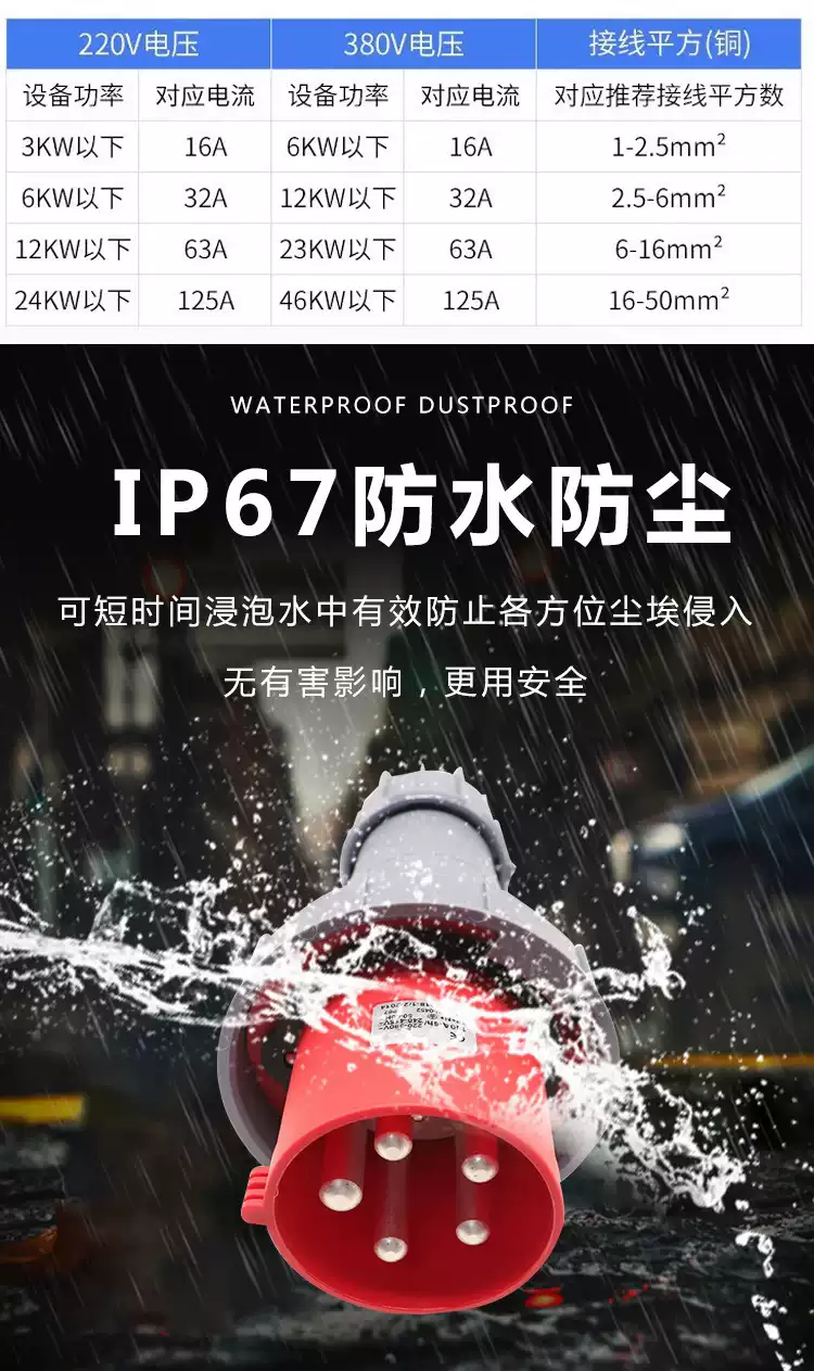 Special high-power 160A plug and socket for flood control pump distribution box 4-core 5-core IP67 industrial aviation plug 160A 4-hole concealed seat