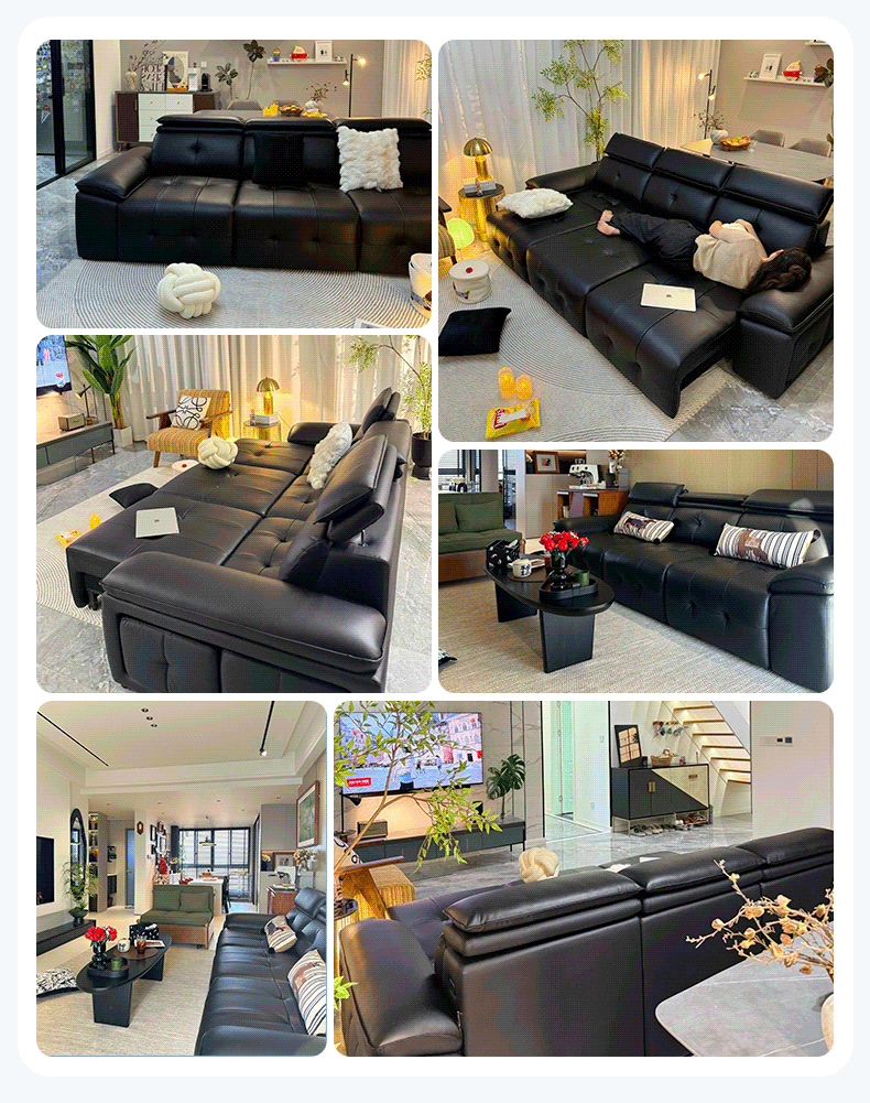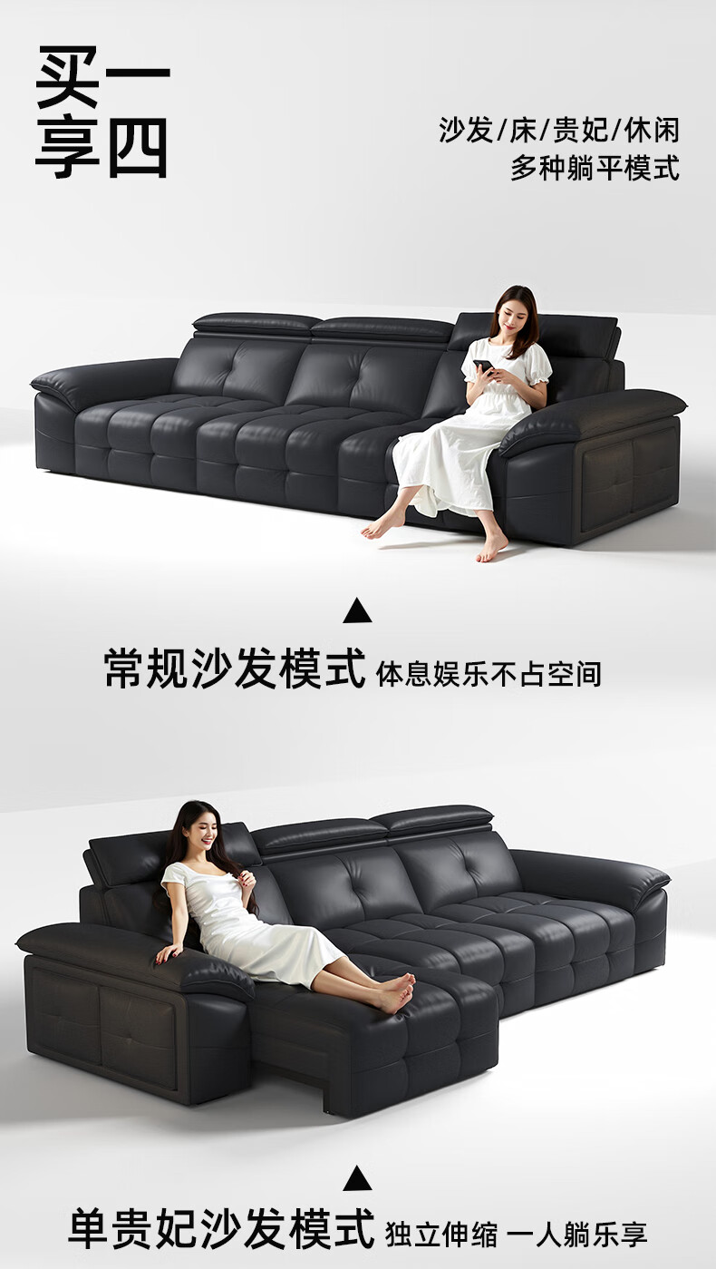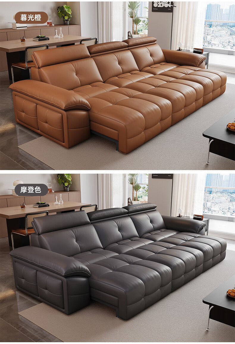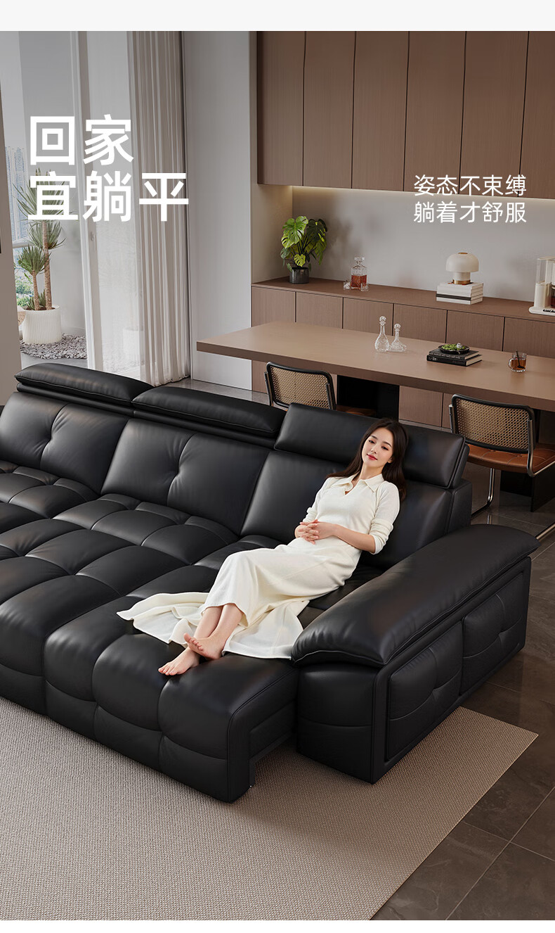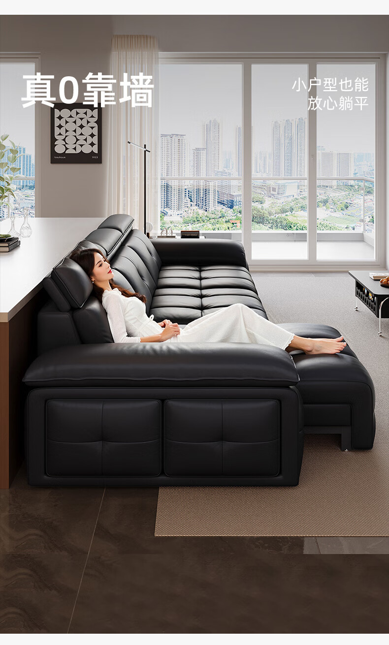 Zhien Government Subsidies Italian Minimalist Lawrence Zero Wall Electric Function Sofa Lazy Telescopic Living Room Leather Sofa Three Motors 3.25 Meters Three Positions (Remote Control, Voice, Mini Program Three Controls) 2.2mm Contact Surface Leather