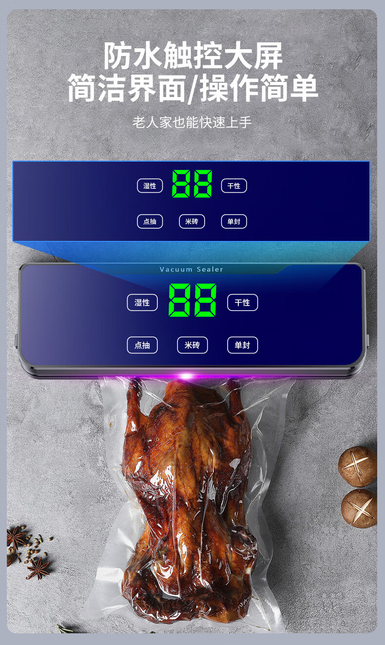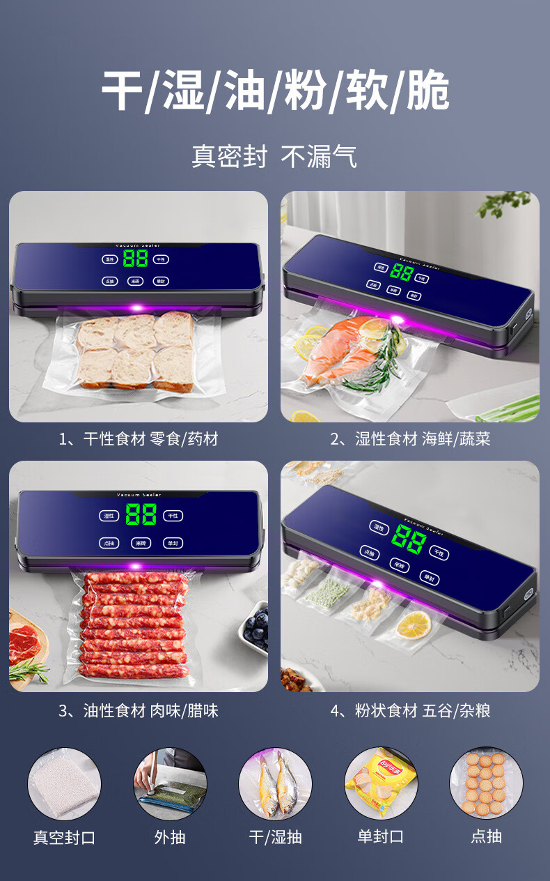Small household vacuum sealing machine, fully automatic vacuum packaging machine, food preservation machine, plastic sealing machine, Ziguang smart touch screen + free 50 pieces