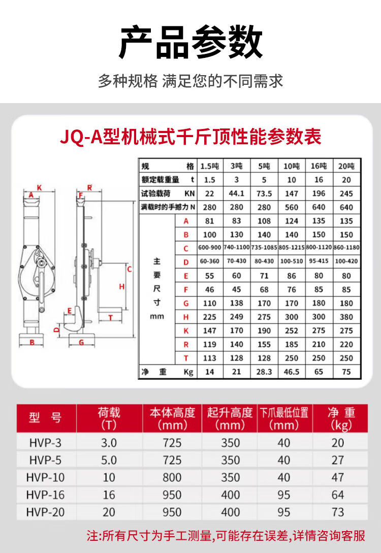 Clamp hand-operated cross-top and shoulder-top mechanical jack rack and rack lifter spiral claw jack 5 tons 10 tons imported model 3 tons across 3 tons (no false standard) in stock