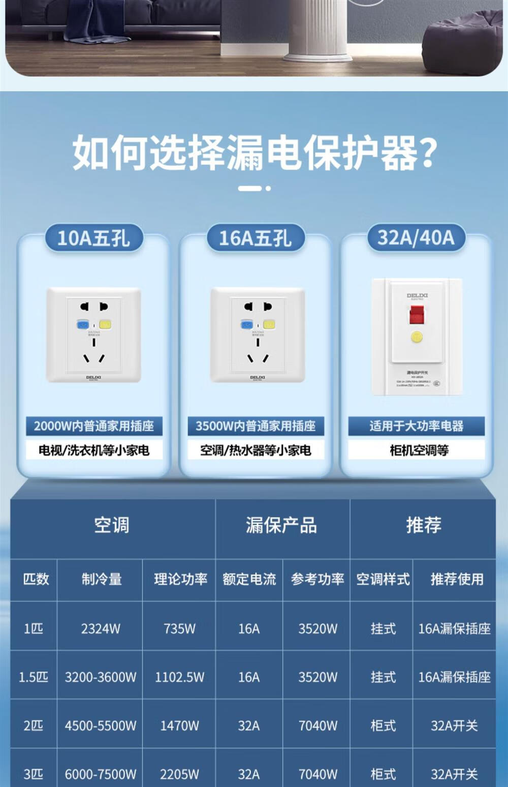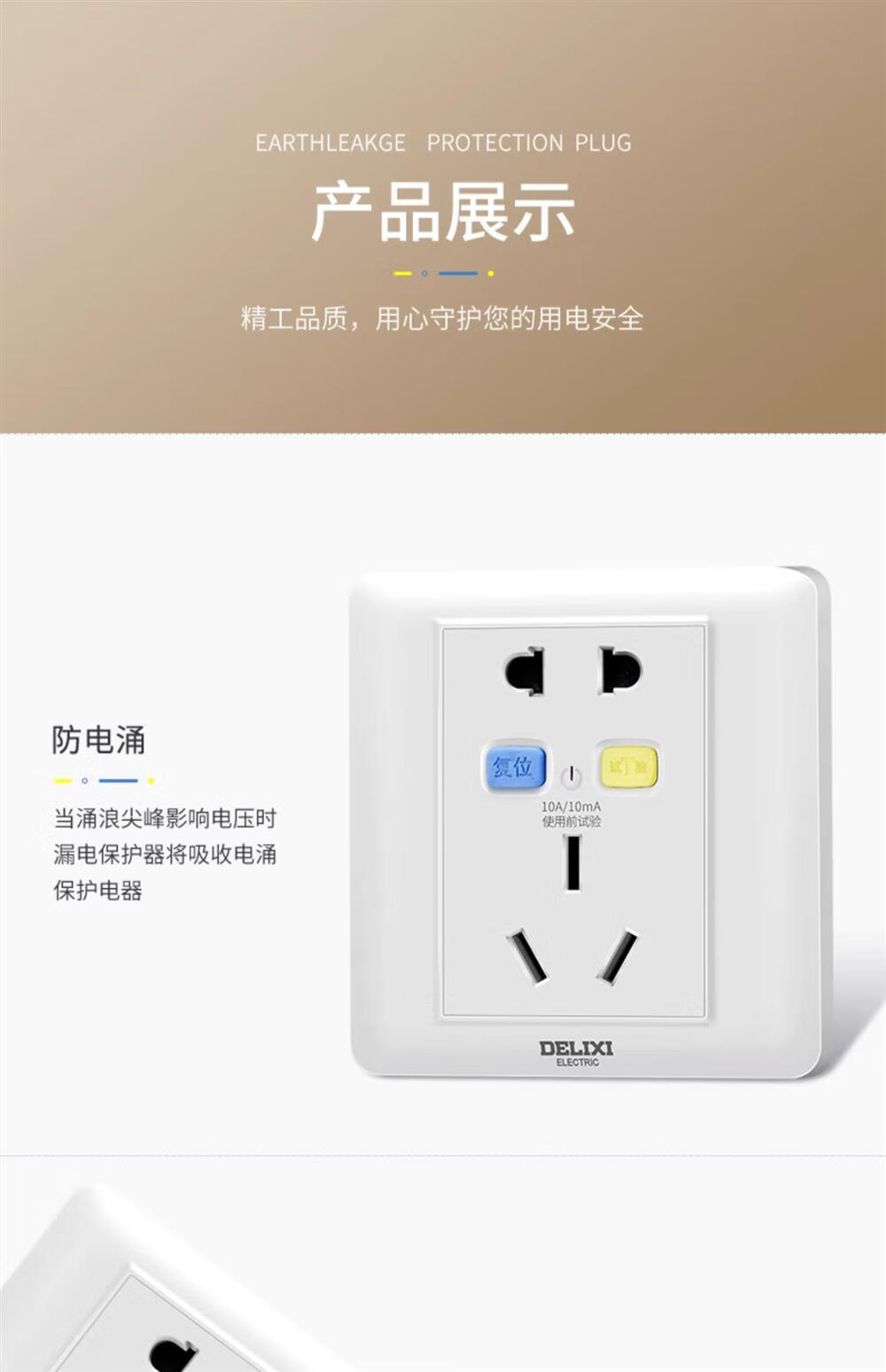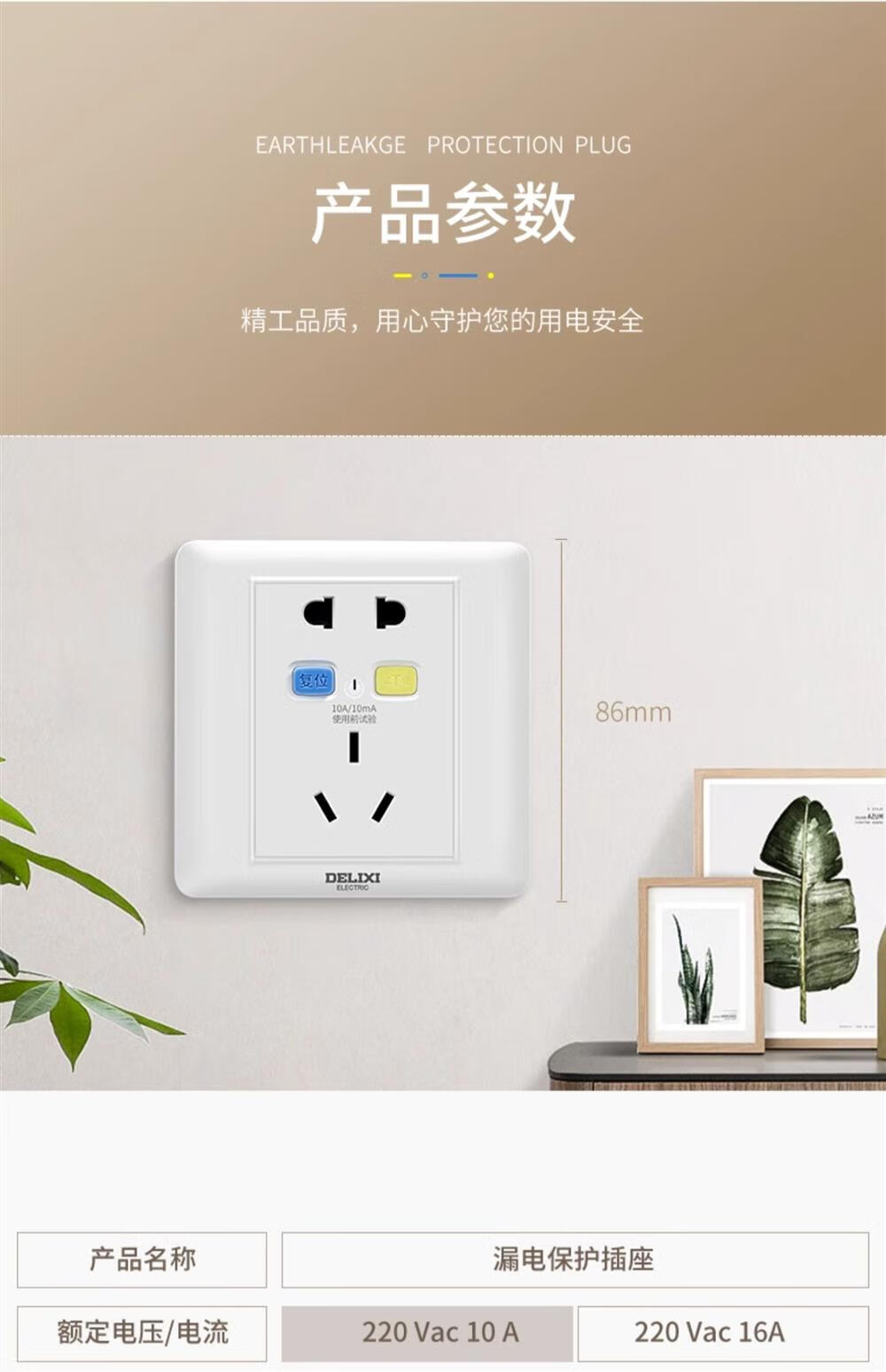 Delixi switch leakage protection socket head 86 type concealed air conditioner 16a household 32A power supply leakage protection band switch plug-in leakage protection plug 10A