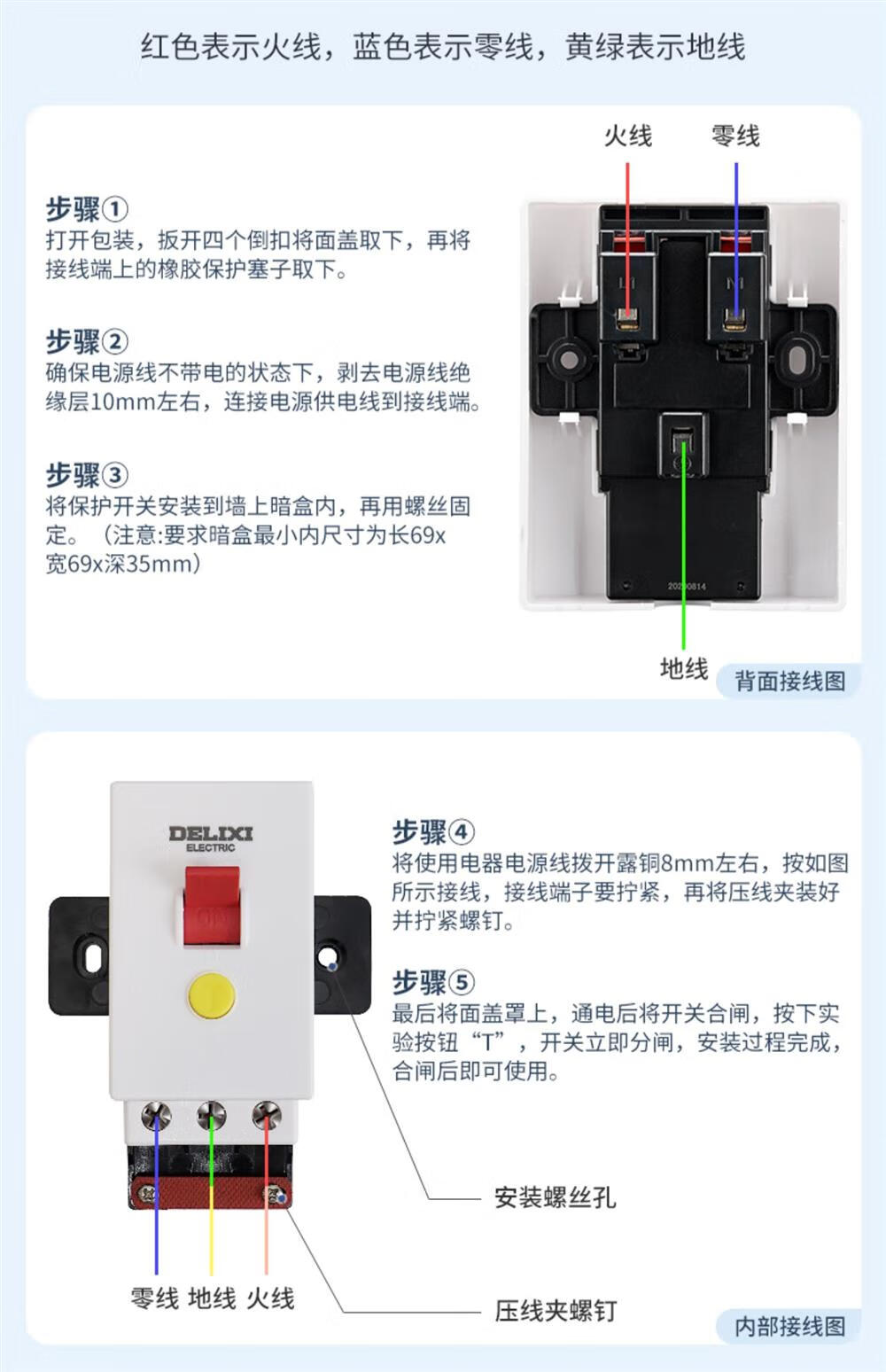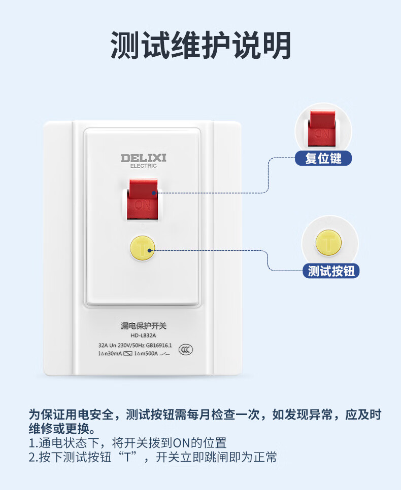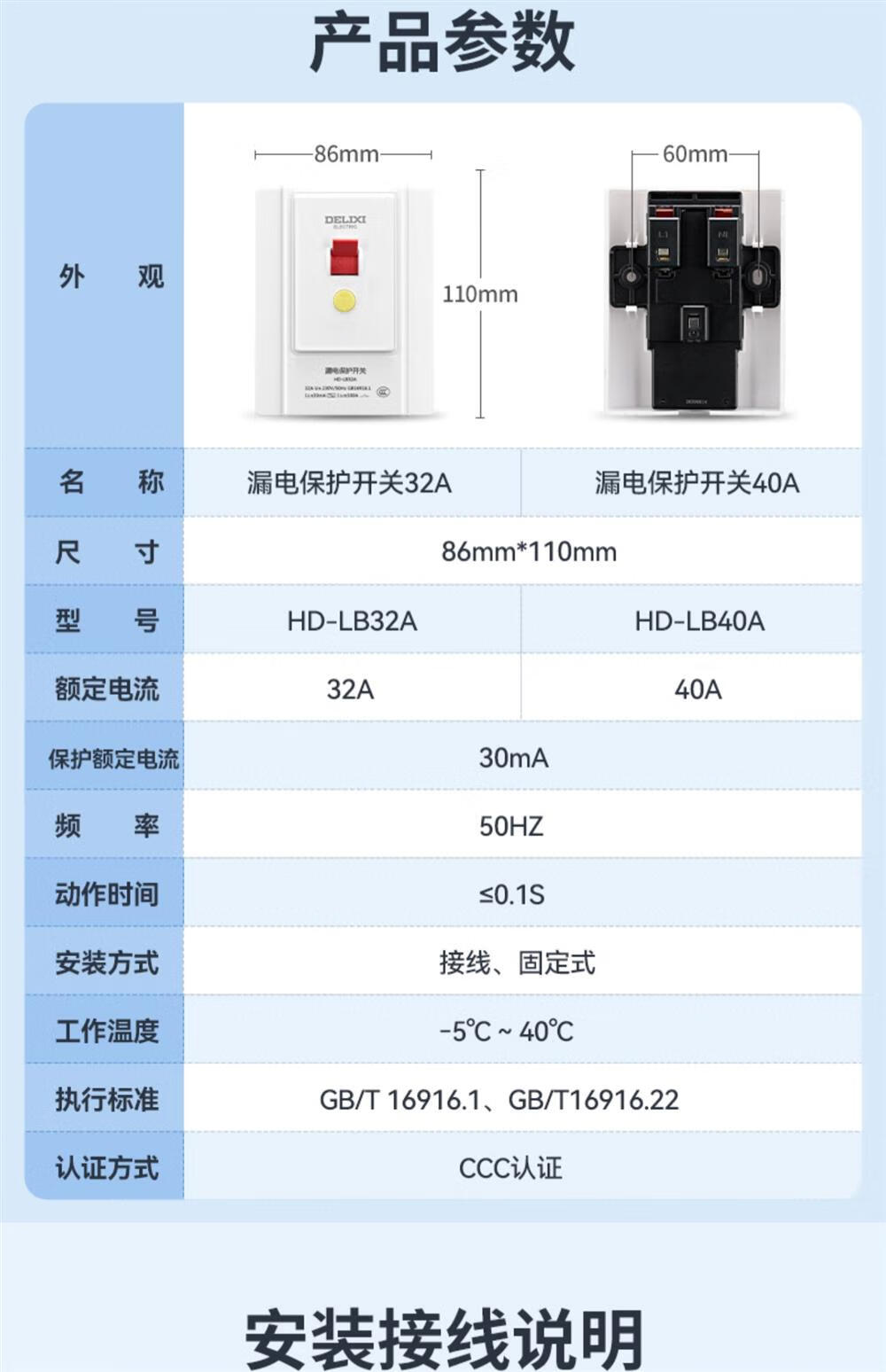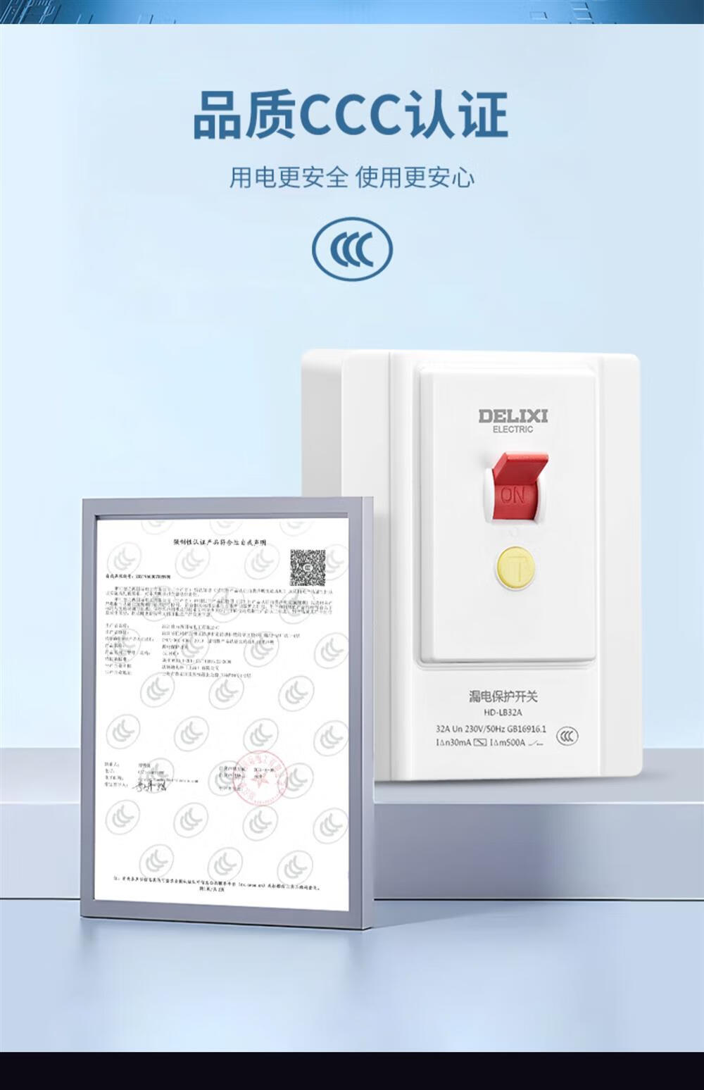 Delixi switch leakage protection socket head 86 type concealed air conditioner 16a household 32A power supply leakage protection band switch plug-in leakage protection plug 10A