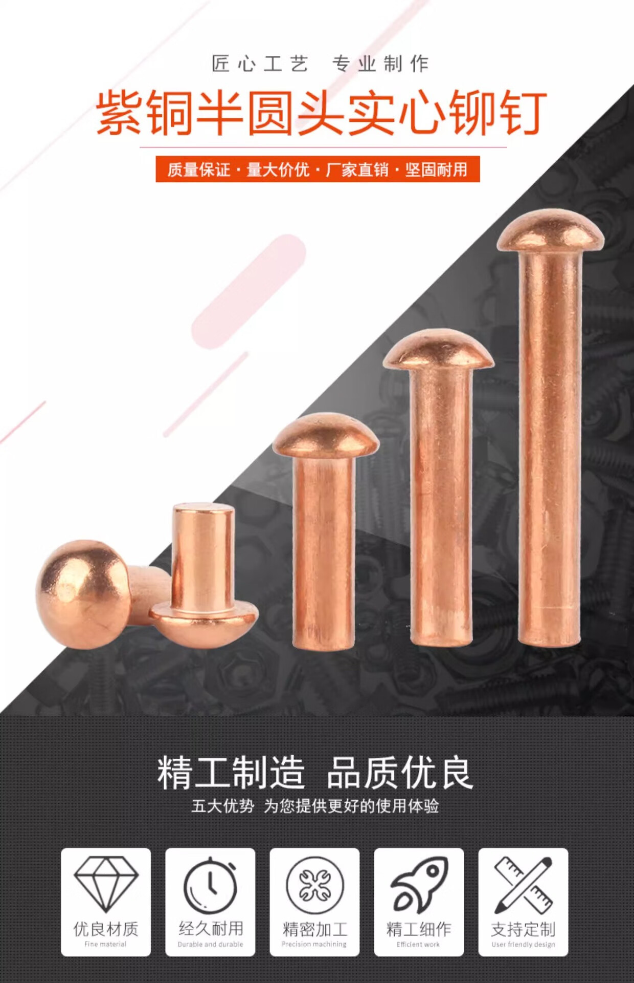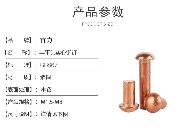 Shouli copper countersunk head copper rivet GB869 percussion solid M2-M8 copper nail copper rivet copper material round head rivet/high quality copper copper M2x2 10 pieces