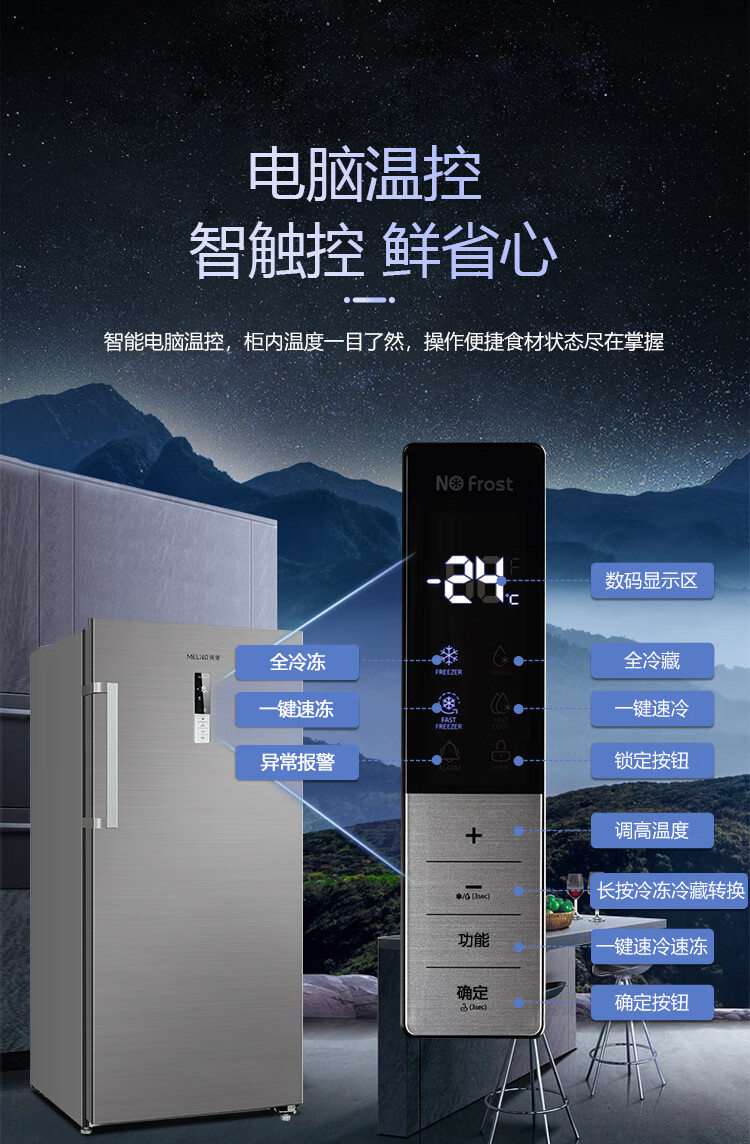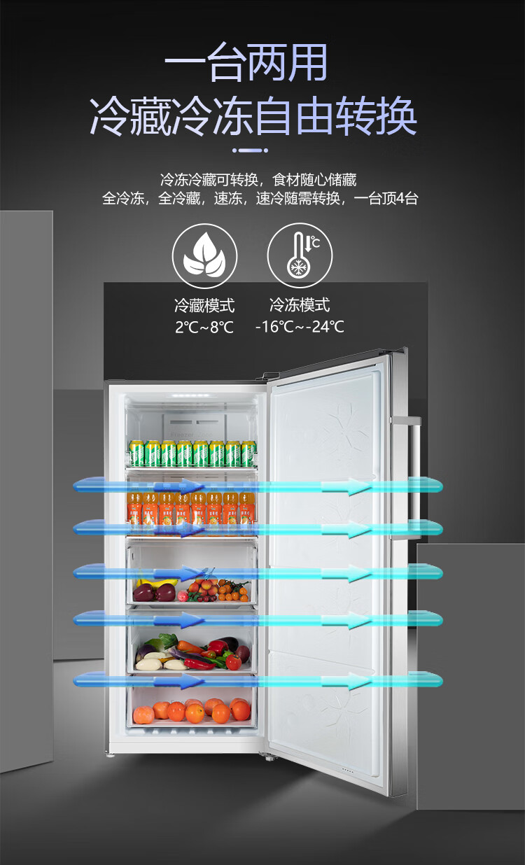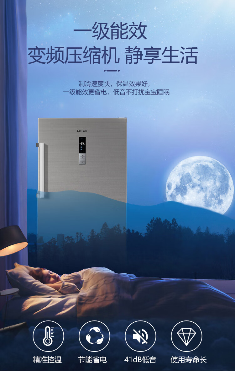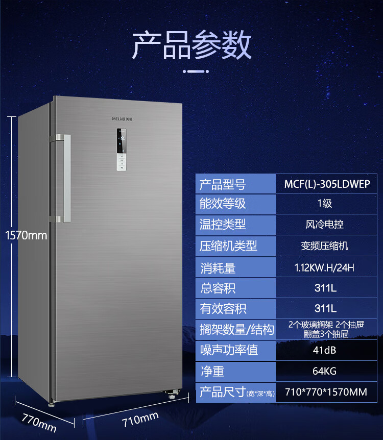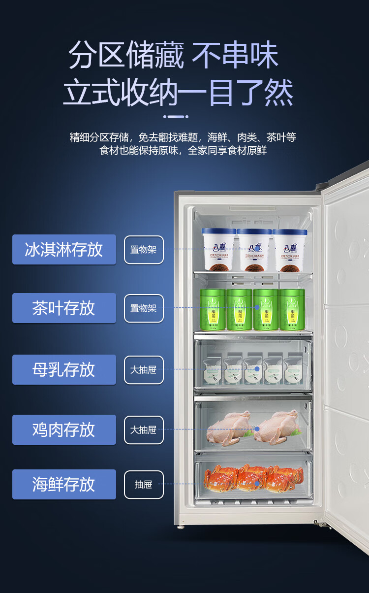 Meiling air-cooled vertical freezer home commercial drawer-type large-capacity refrigeration and freezing computer-controlled temperature variable frequency frost-free air-cooled refrigerator conversion cabinet five-layer large capacity first-class energy efficiency air-cooled frost-free 172L