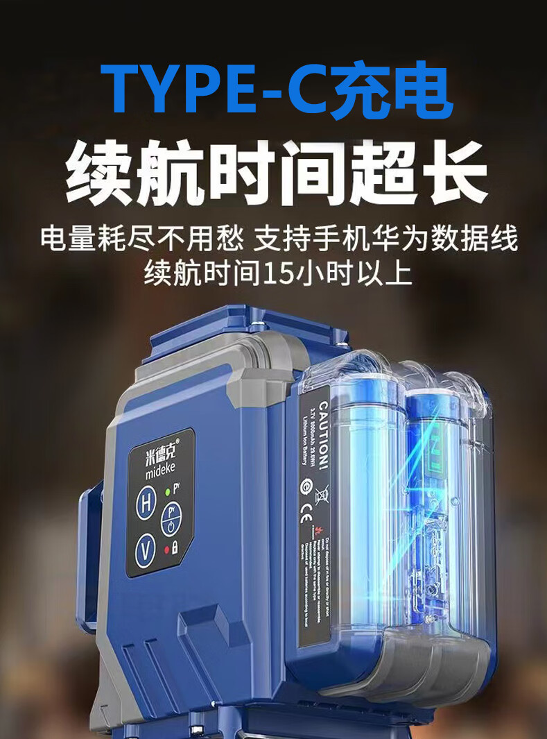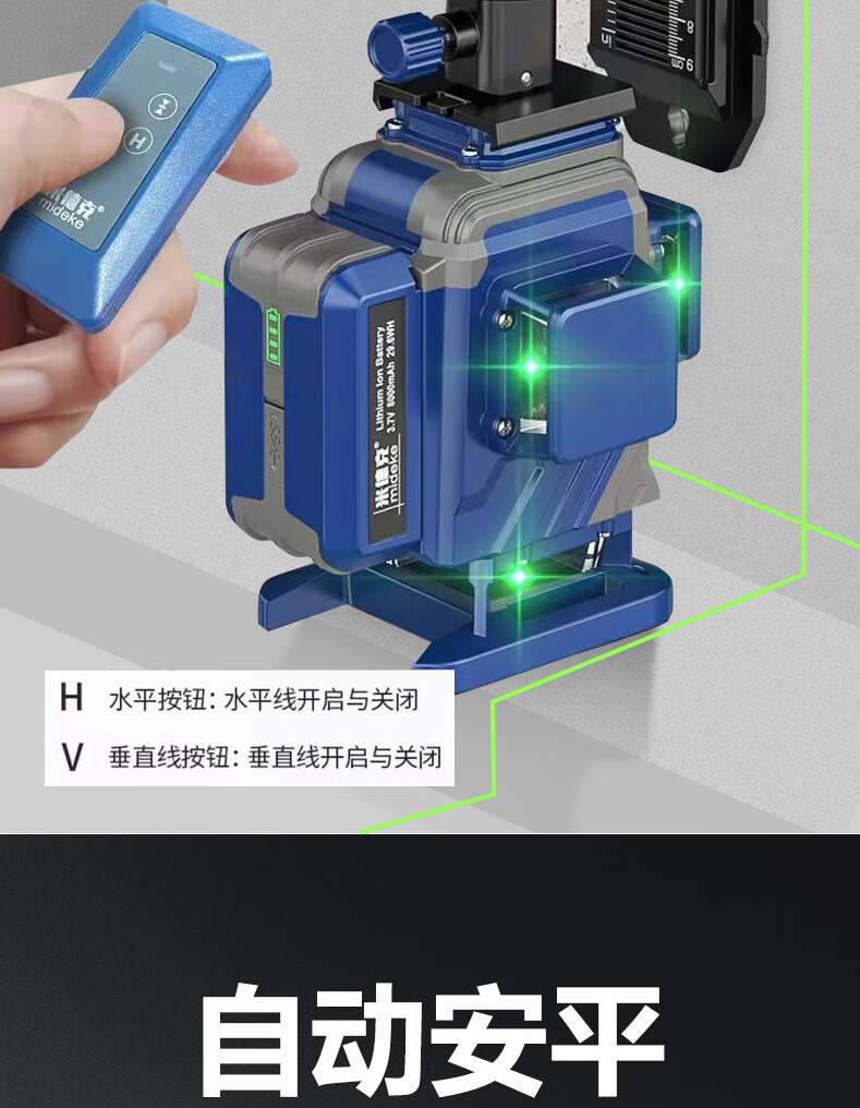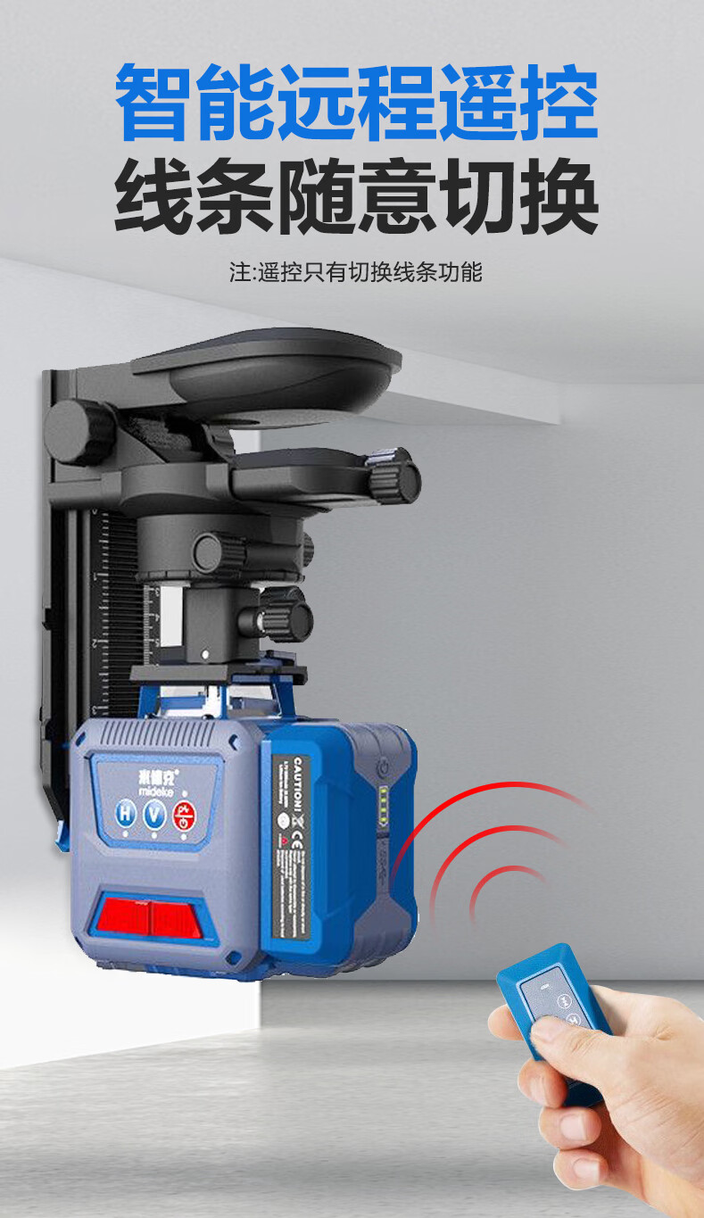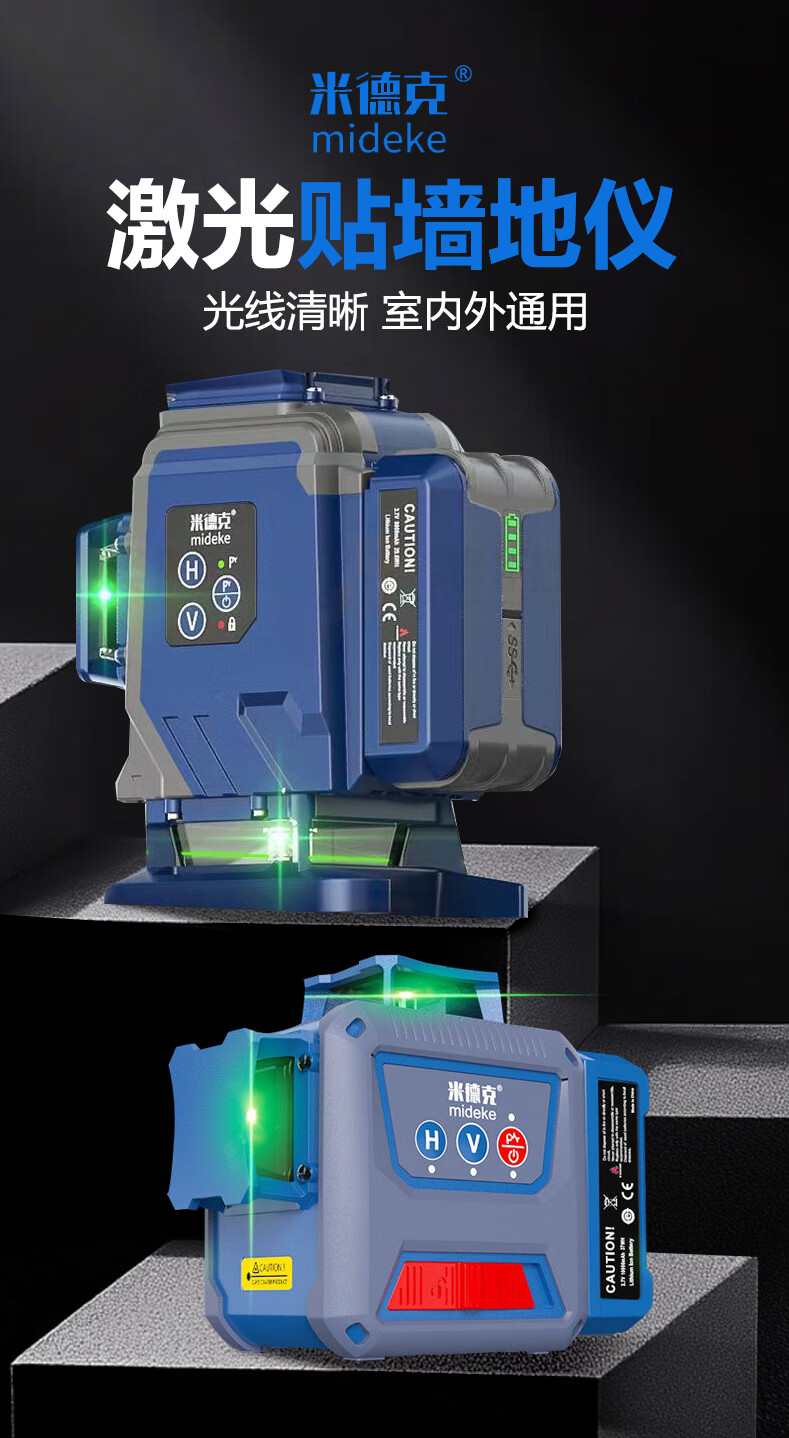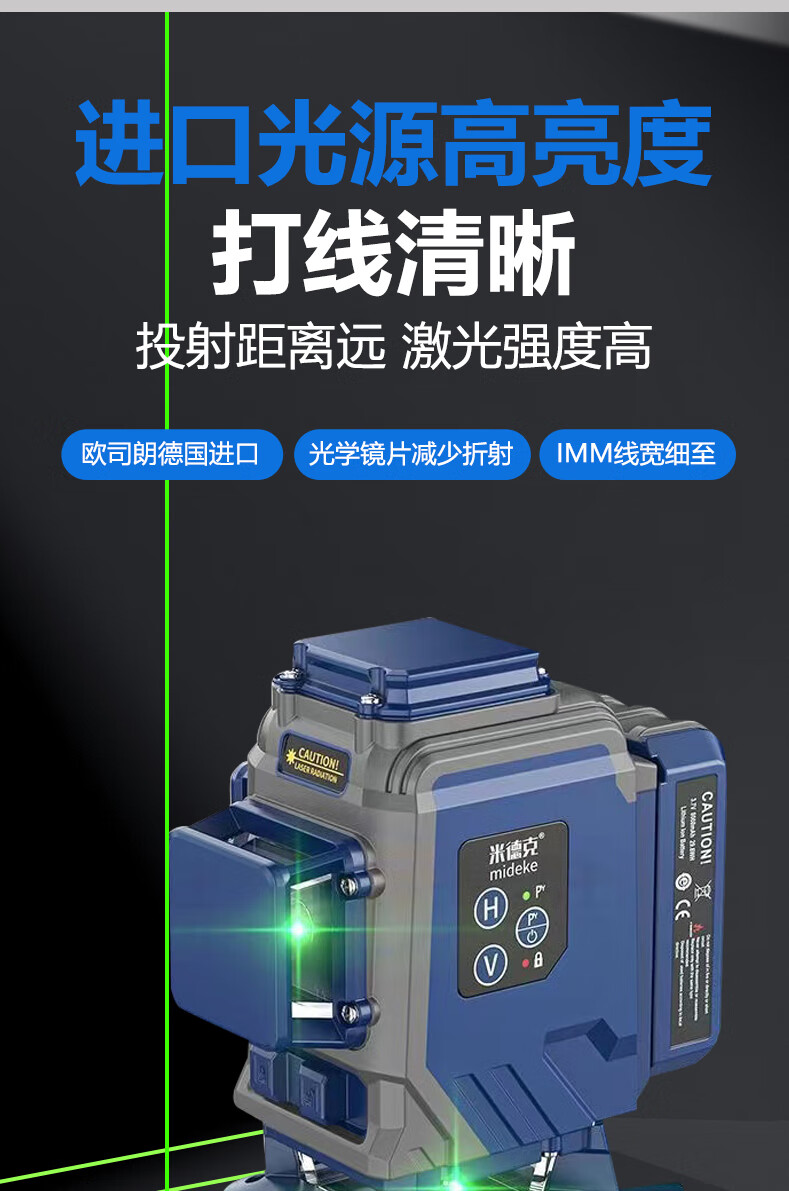 Mideke's latest 12-line level meter with strong light and thin line, outdoor ultra-bright automatic leveling 8-line infrared wall-mounted and floor-mounted level meter, green light 8-line lower level, simple dual-power supply, 5200 mAh battery