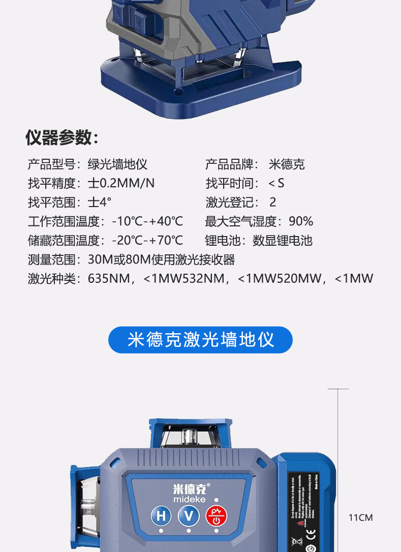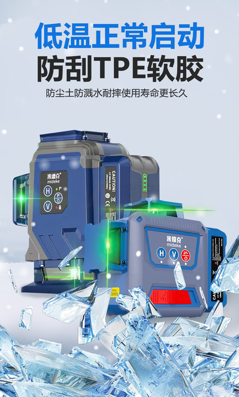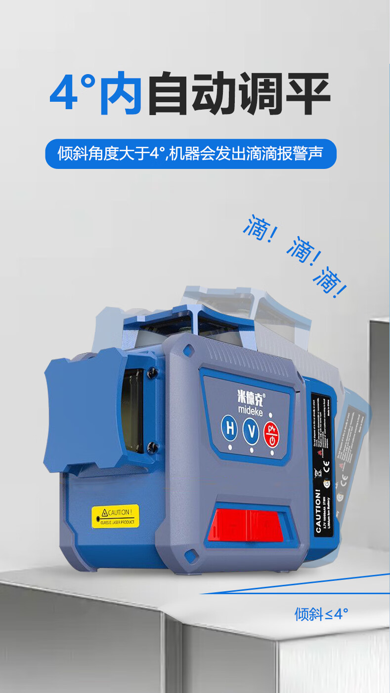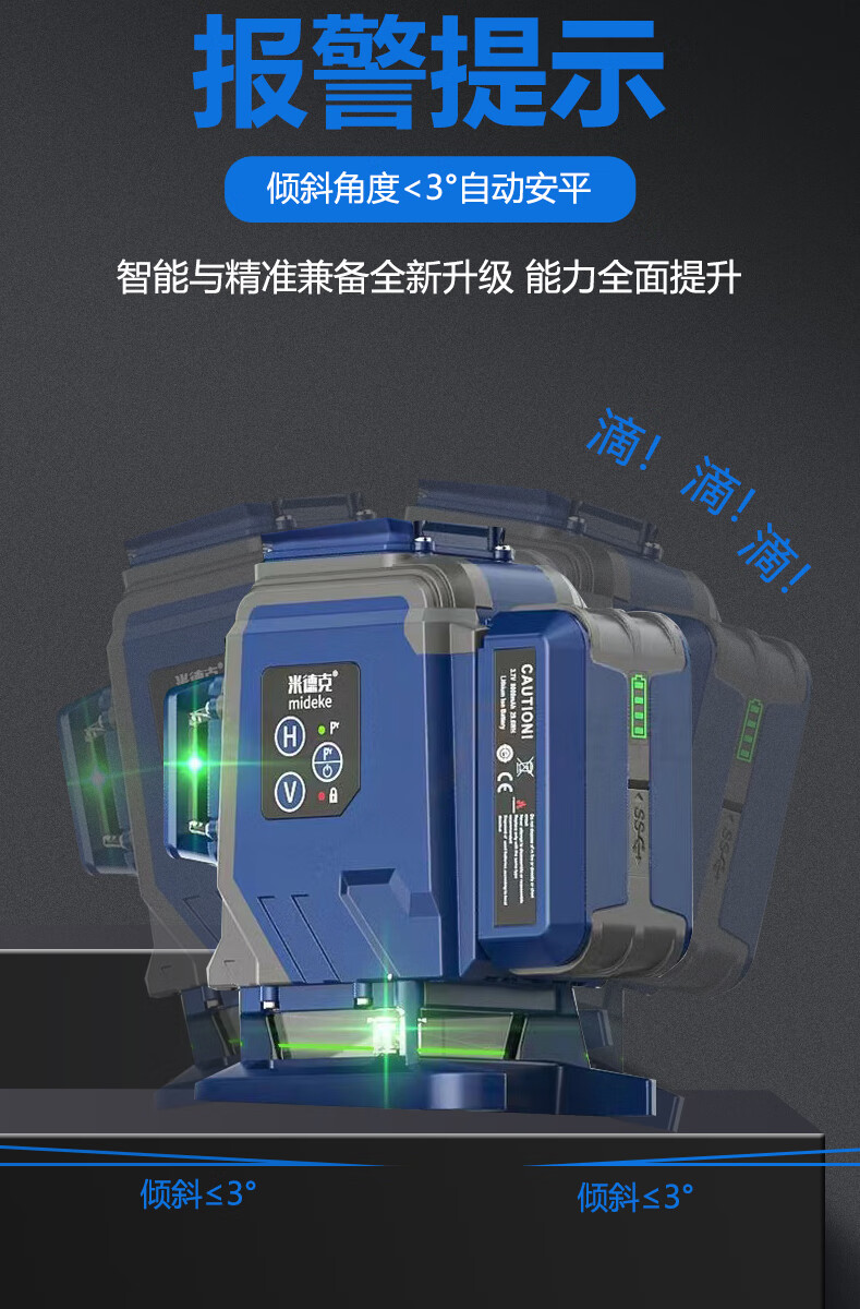 Mideke's latest 12-line level meter with strong light and thin line, outdoor ultra-bright automatic leveling 8-line infrared wall-mounted and floor-mounted level meter, green light 8-line lower level, simple dual-power supply, 5200 mAh battery