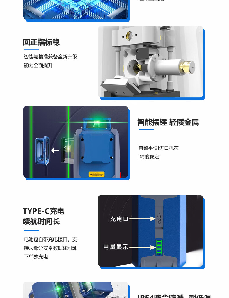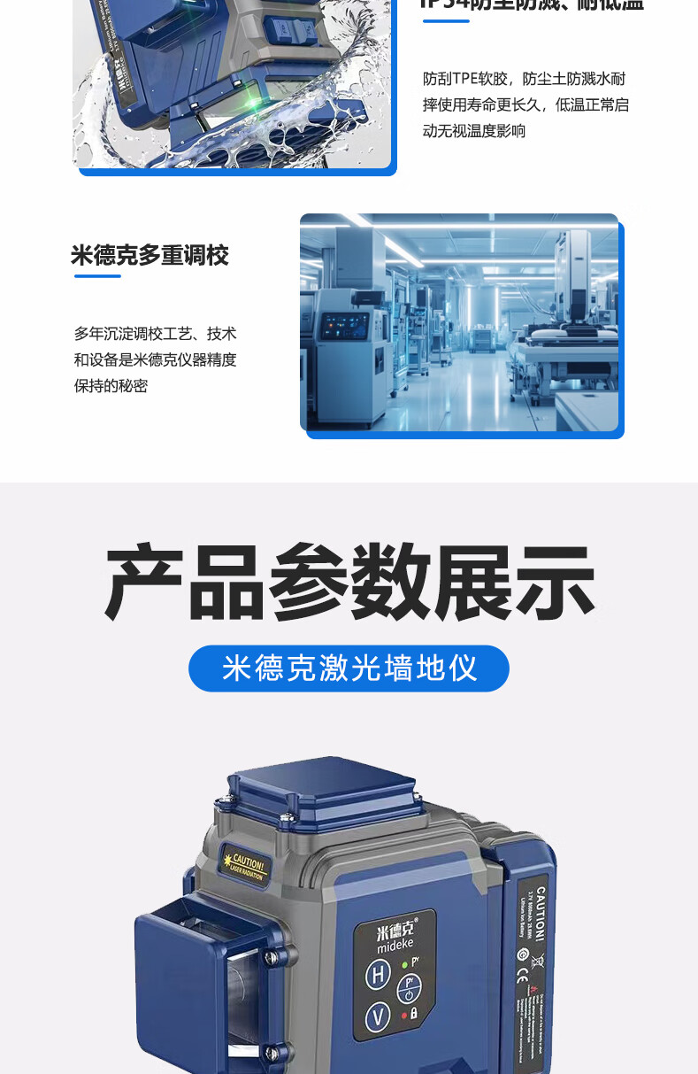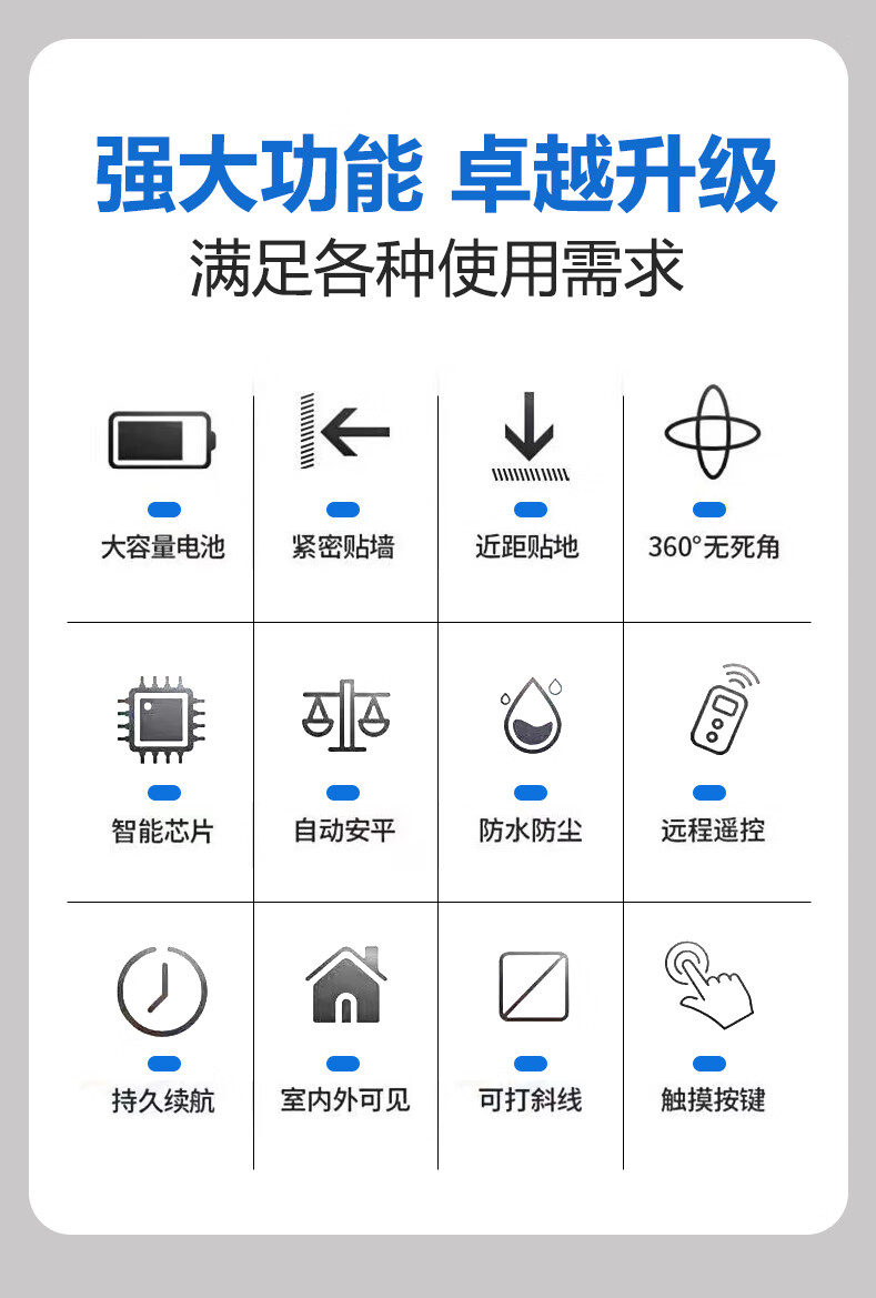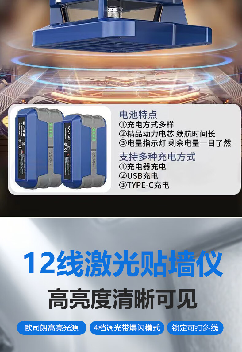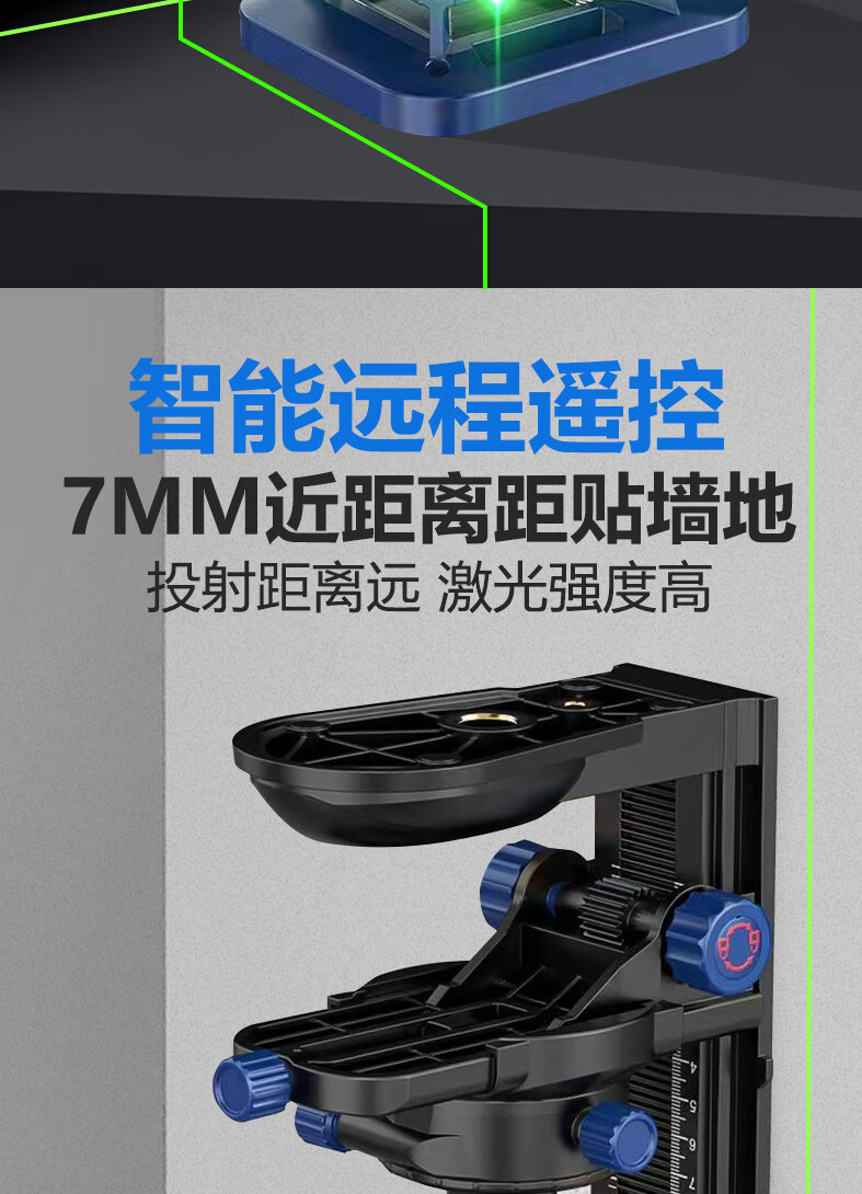 Mideke's latest 12-line level meter with strong light and thin line, outdoor ultra-bright automatic leveling 8-line infrared wall-mounted and floor-mounted level meter, green light 8-line lower level, simple dual-power supply, 5200 mAh battery