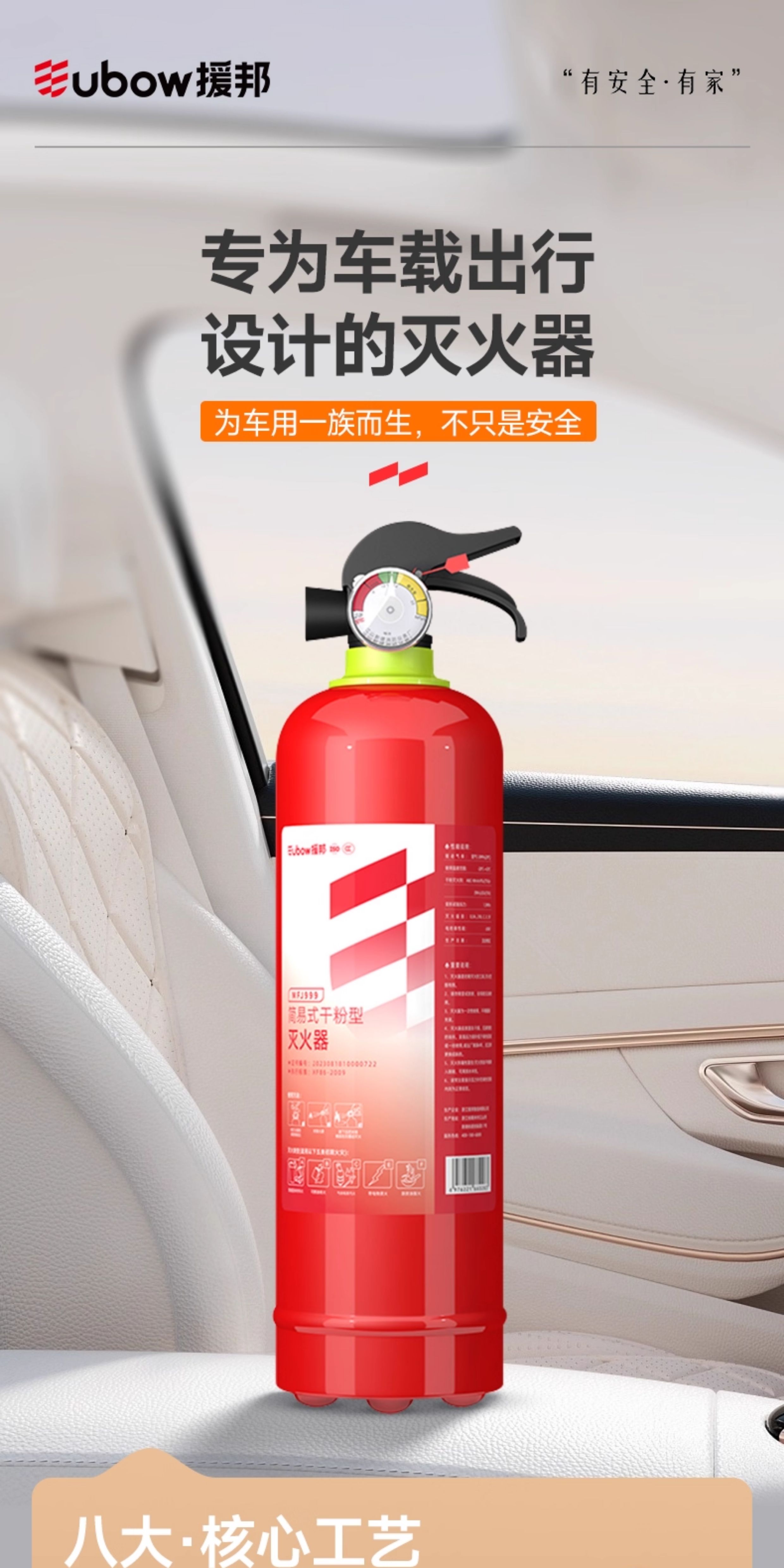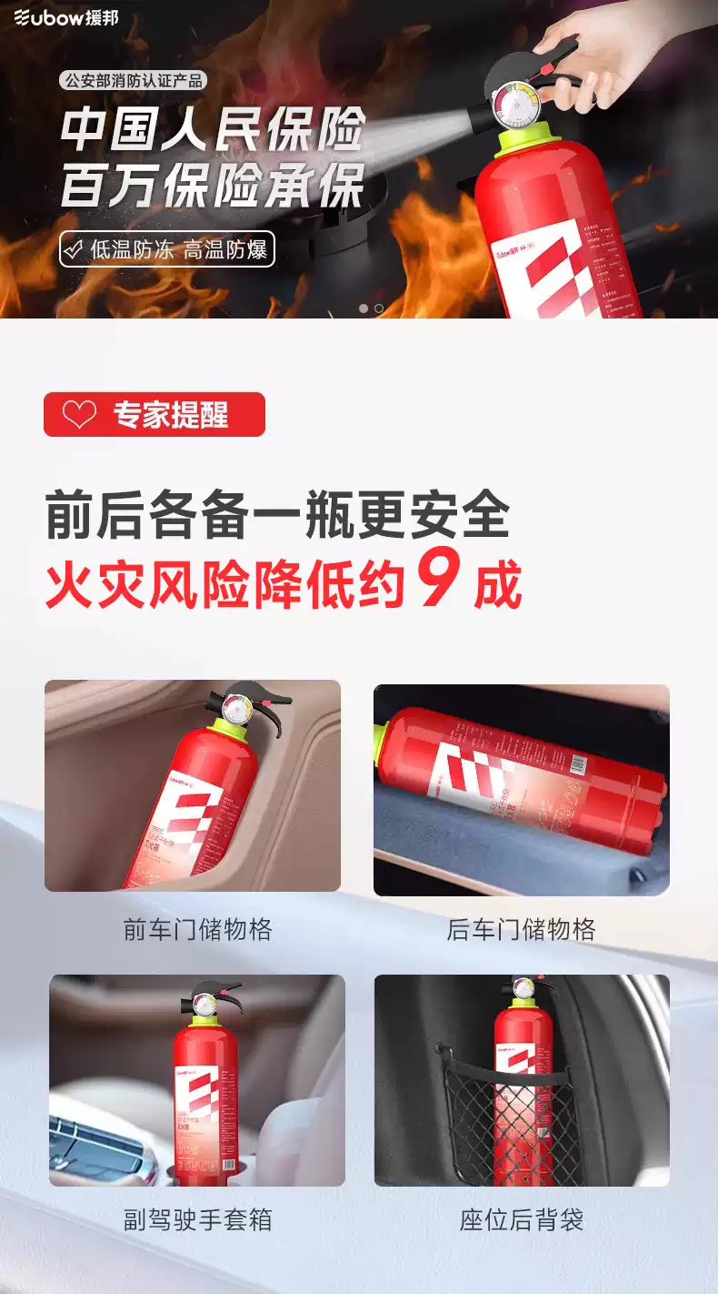Youdaoshi car fire extinguisher dry powder for small private cars, portable cars, special cars, home fire annual inspection 1kg 500g dry powder 500g super dry powder PICC million quality guarantee