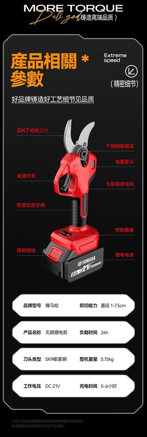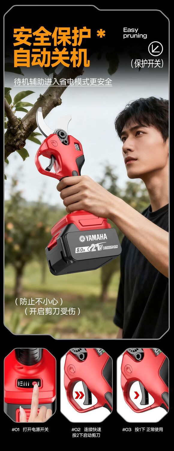 YAMAHA electric pruning shears, pruning shears, fruit tree lithium-ion scissors, garden branches, thick branches, rechargeable pruning artifact, high-end model, battery model, free luxury gift bag