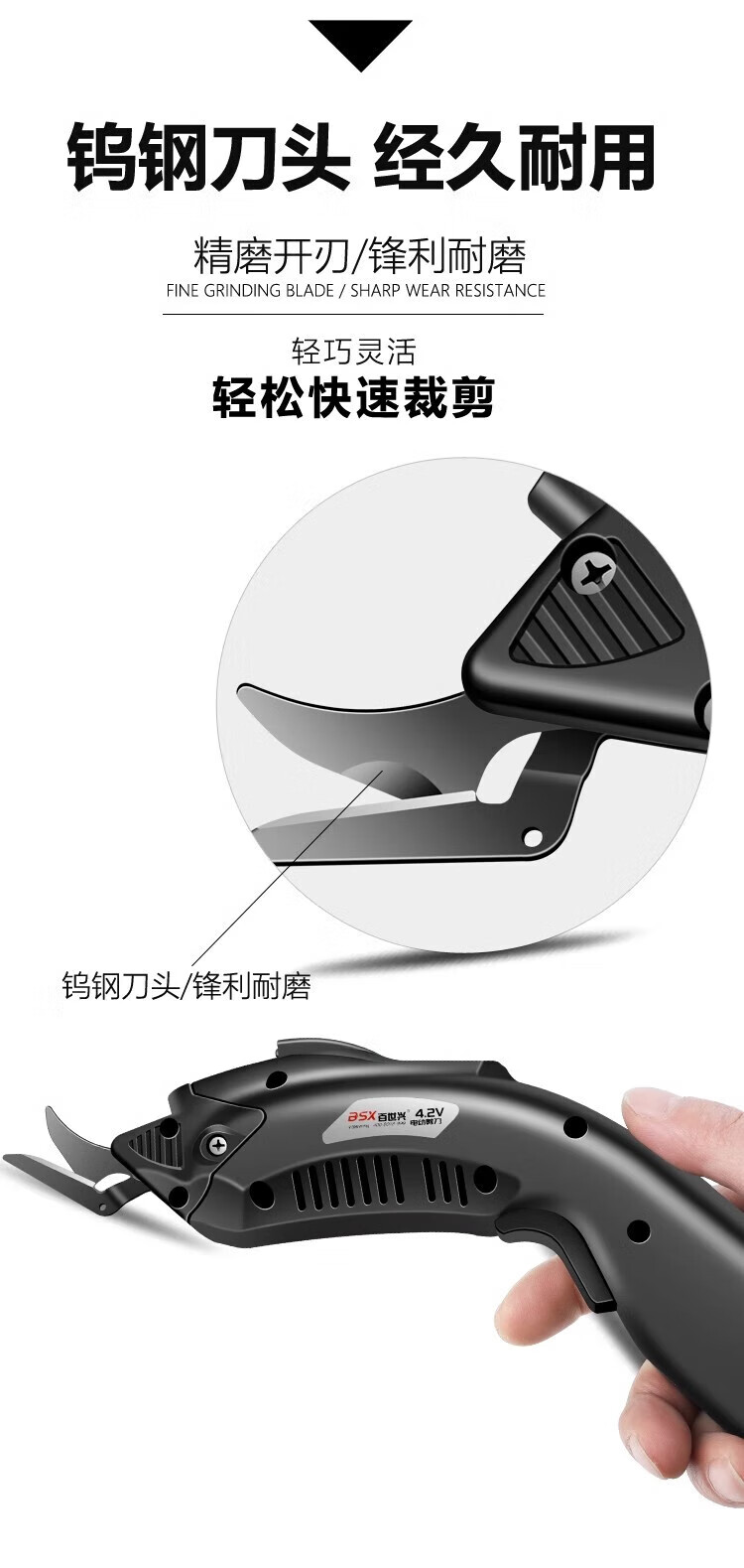 Jipindi lithium battery electric scissors for cutting cloth, tailoring, leather clothing, wireless, with 2 alloy blades/5000mAh