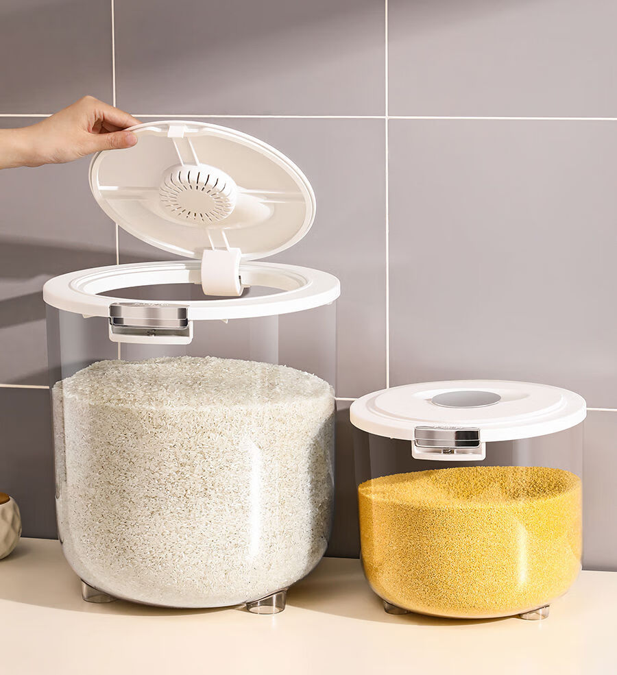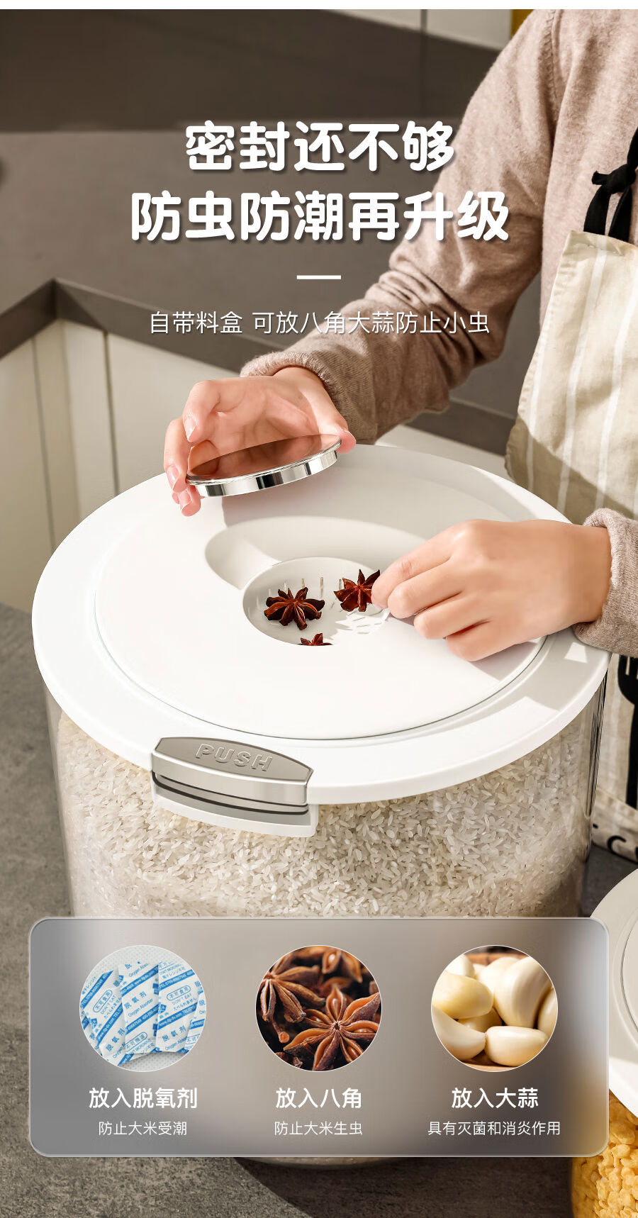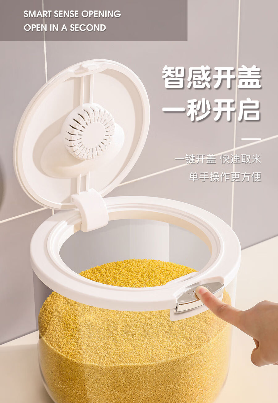 Cat-loaded rice bucket household insect-proof and moisture-proof sealed grade rice storage box kitchen rice cylinder flour storage tank material sapphire green 10 catties gift measuring cup