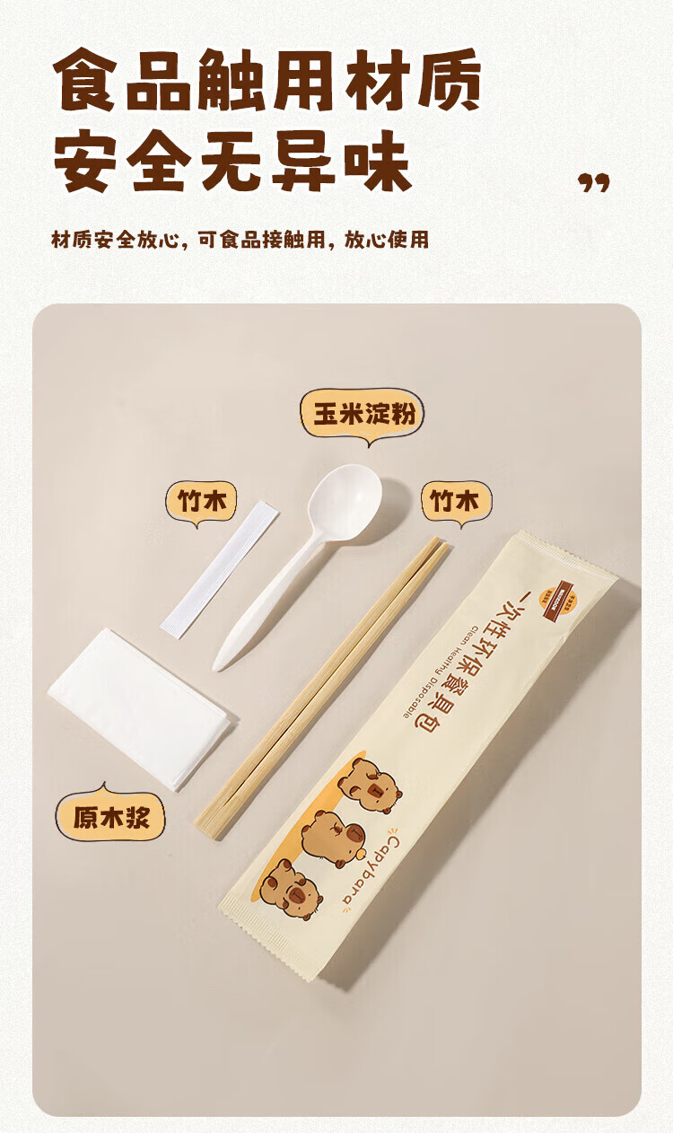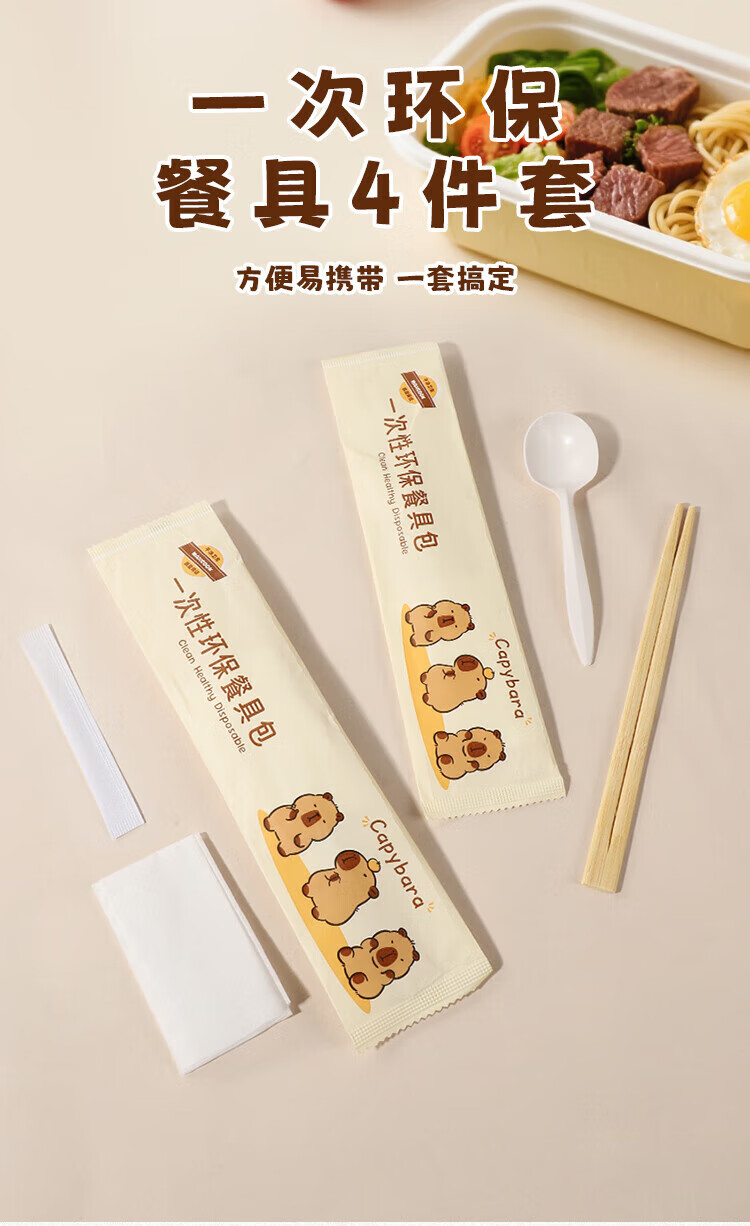 MAXCOOK disposable tableware set, individually packaged, food-grade disposable chopsticks, spoons, environmentally friendly tableware package, picnic takeout, four-piece disposable tableware set*50 set MCPJ5314