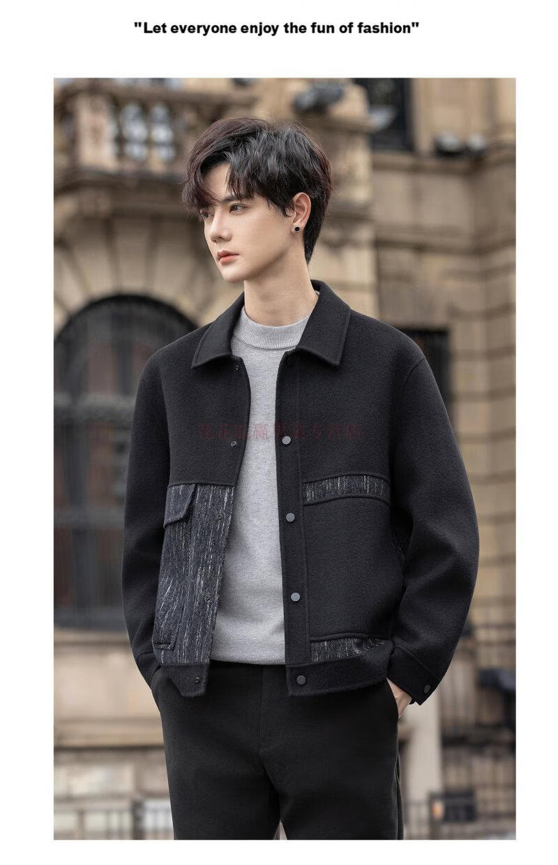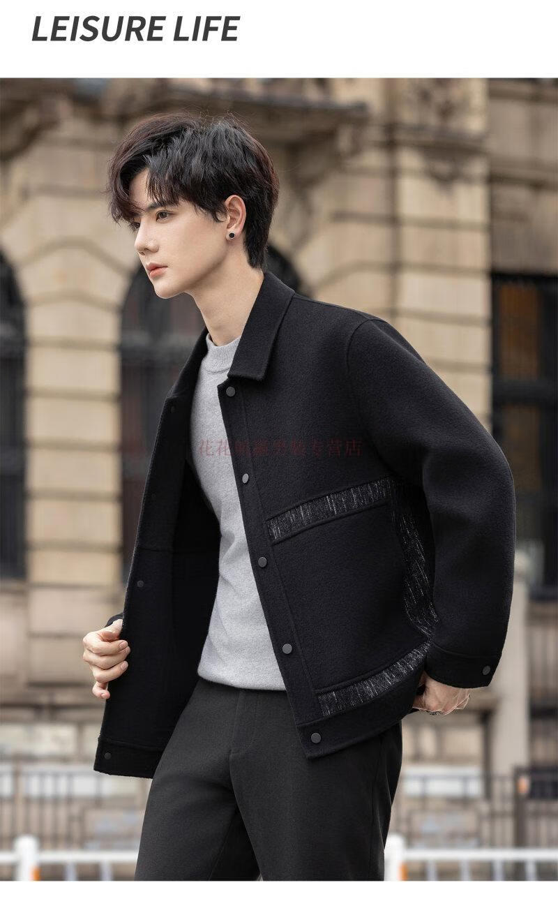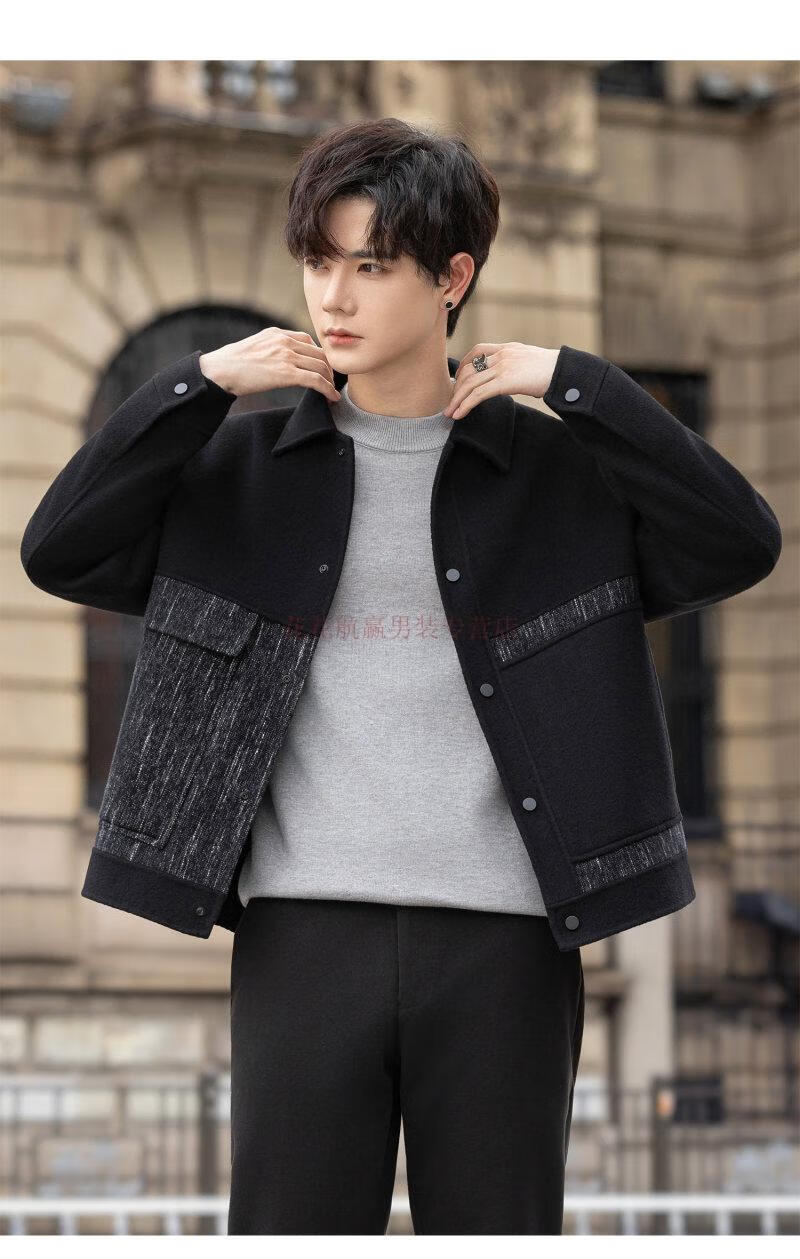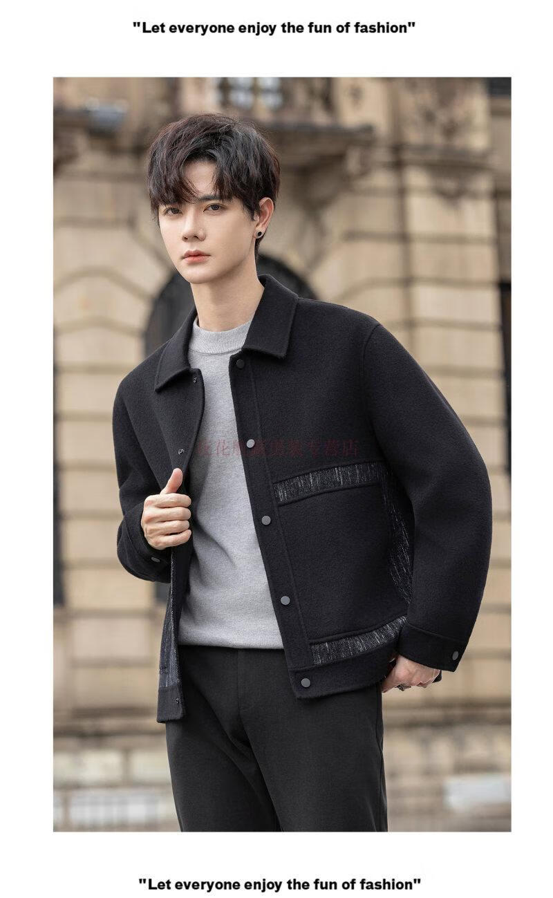 Playboy (PLAYBOY) Woolen Jacket Men's 2025 Autumn and Winter New Double-sided Wool Coat Short Men's Tops Handsome Woolen Jacket Black L