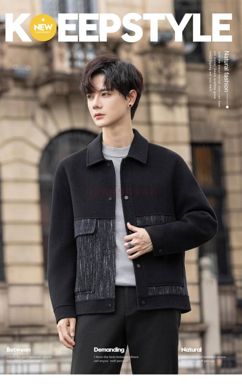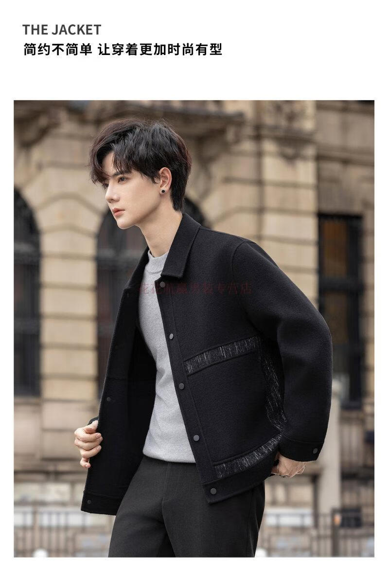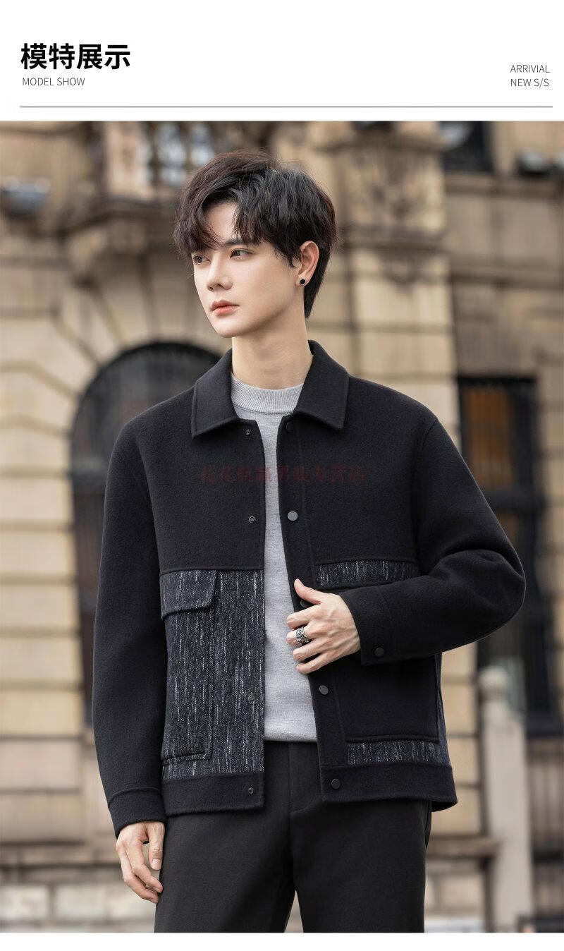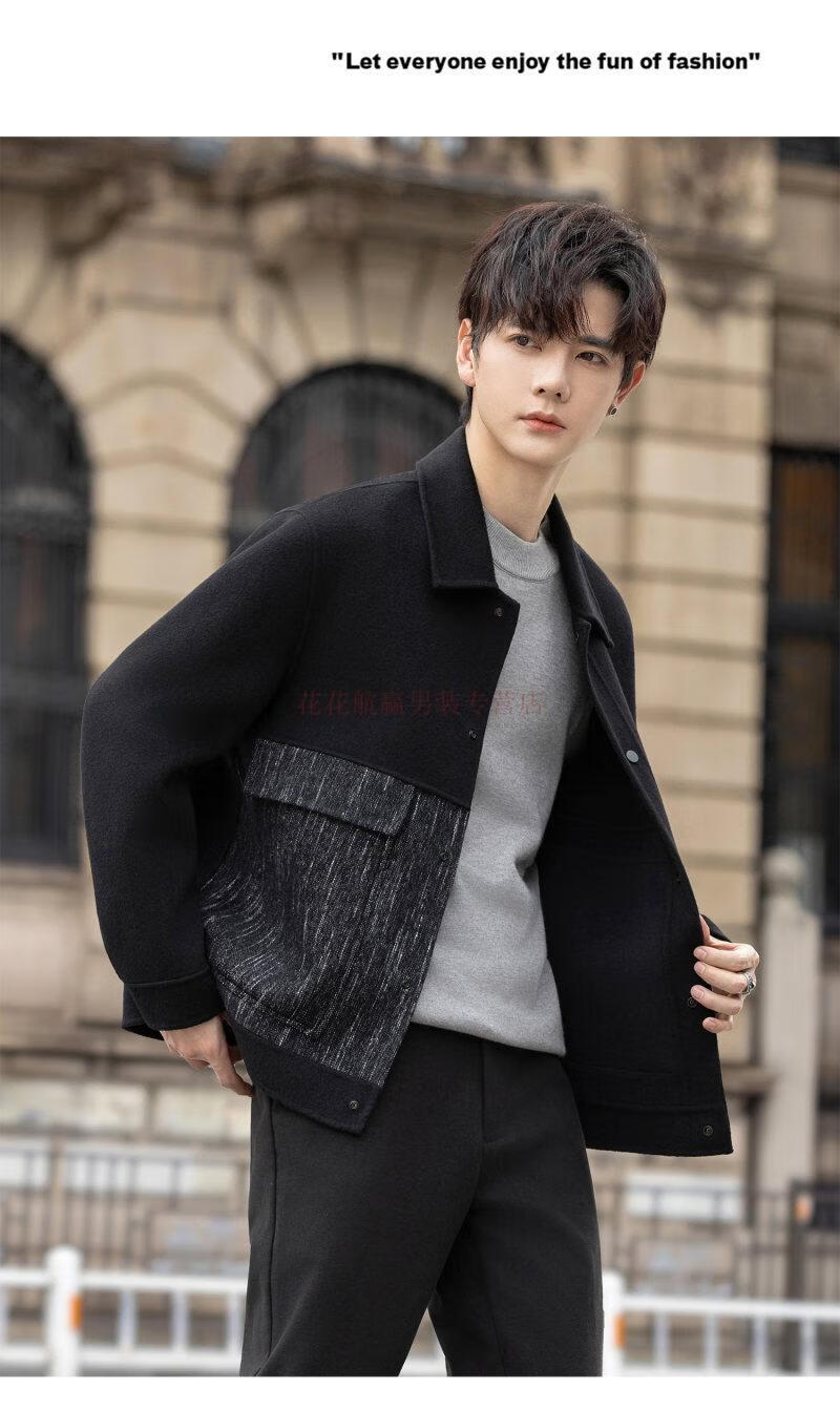 Playboy (PLAYBOY) Woolen Jacket Men's 2025 Autumn and Winter New Double-sided Wool Coat Short Men's Tops Handsome Woolen Jacket Black L