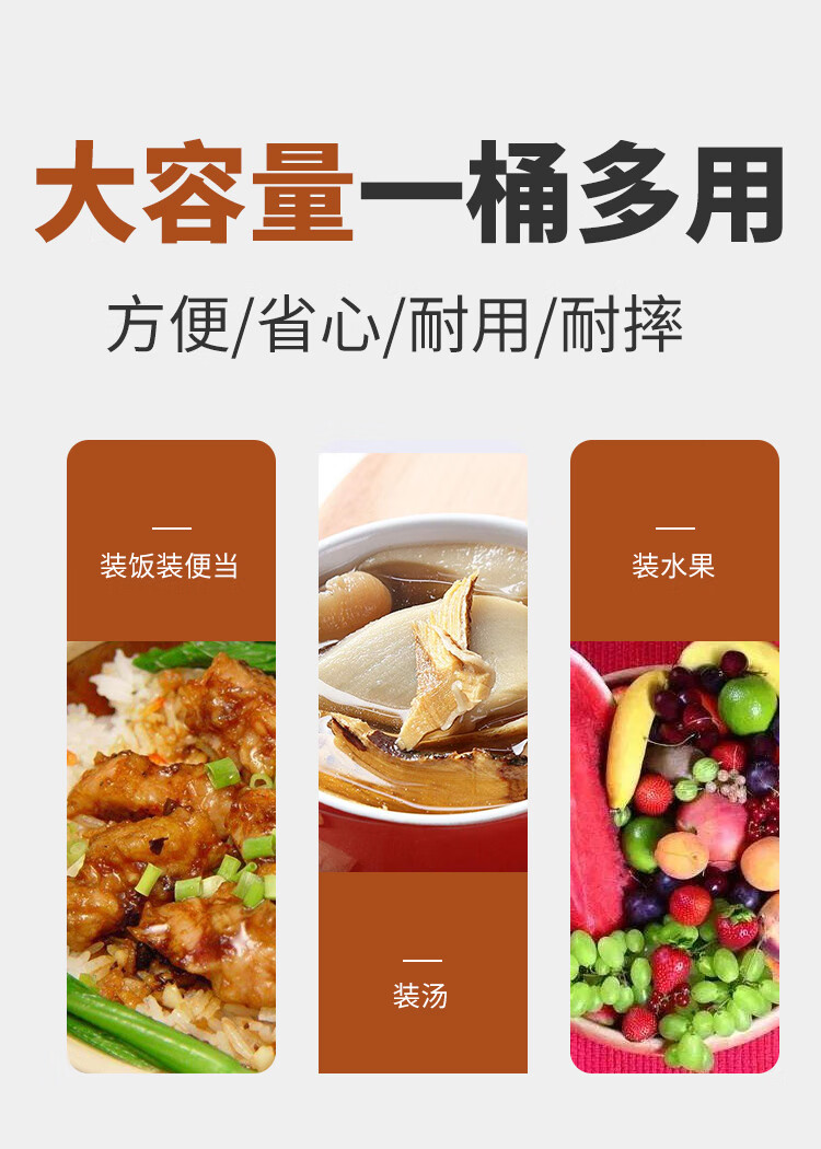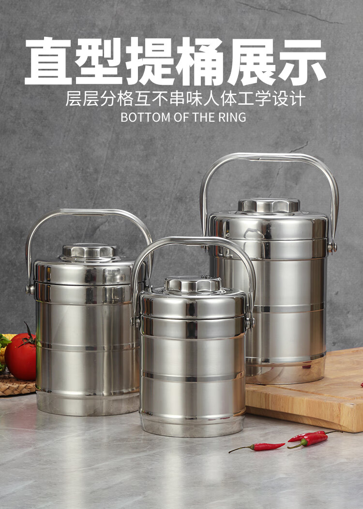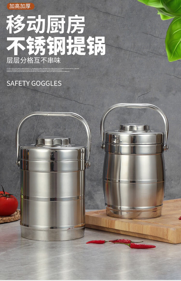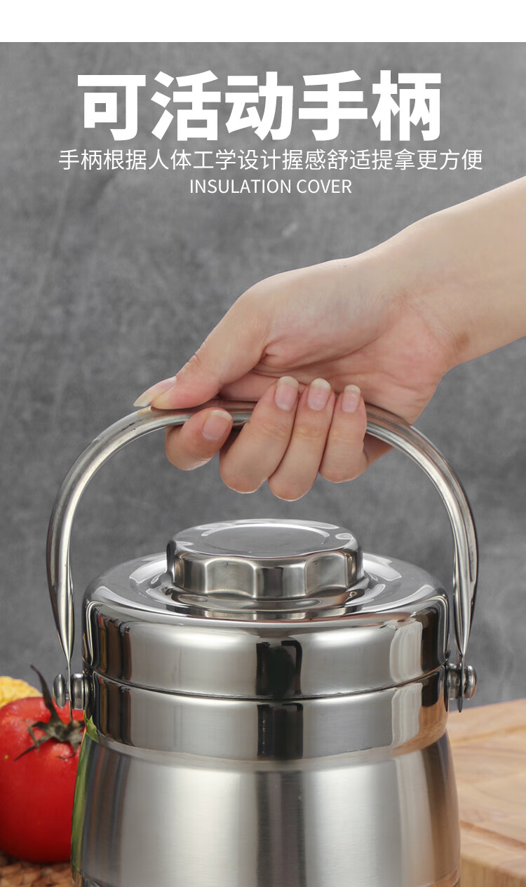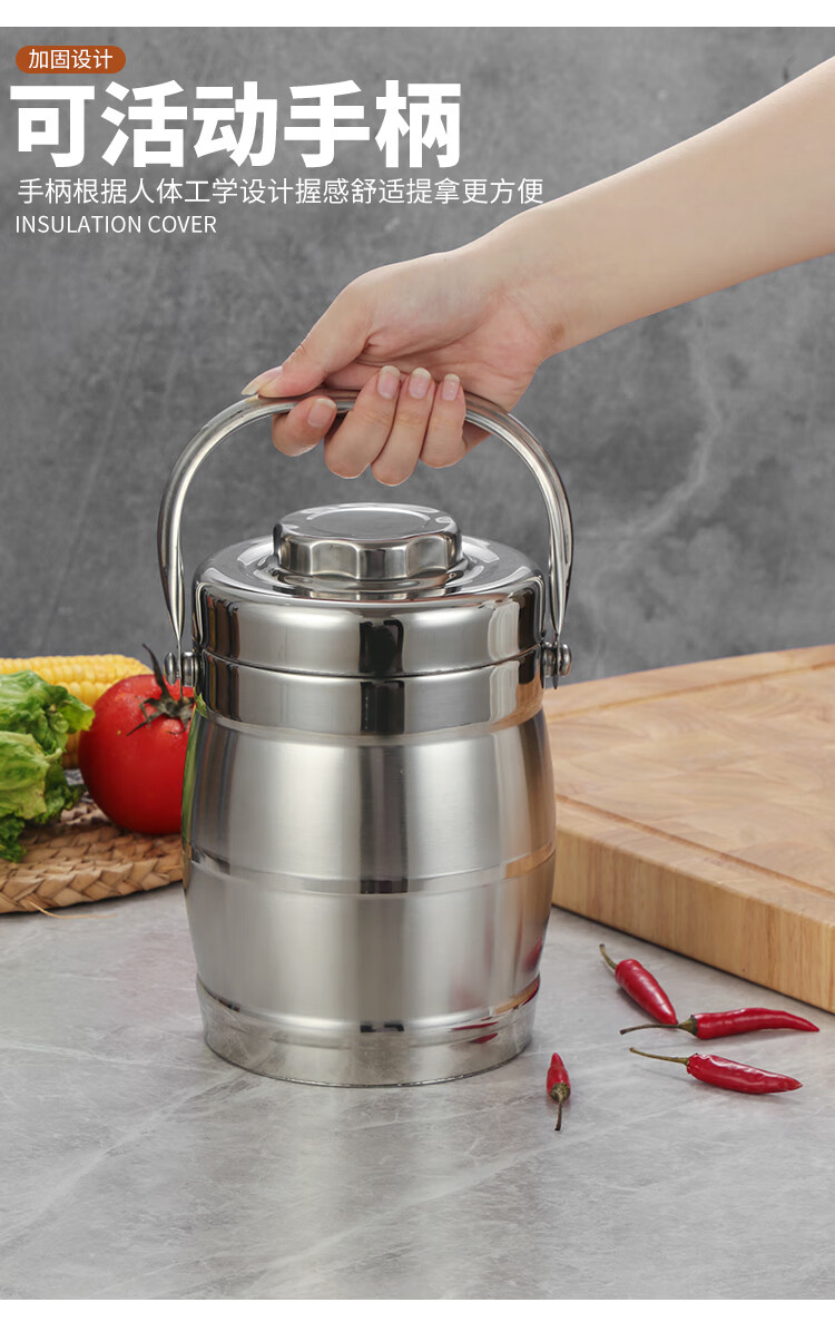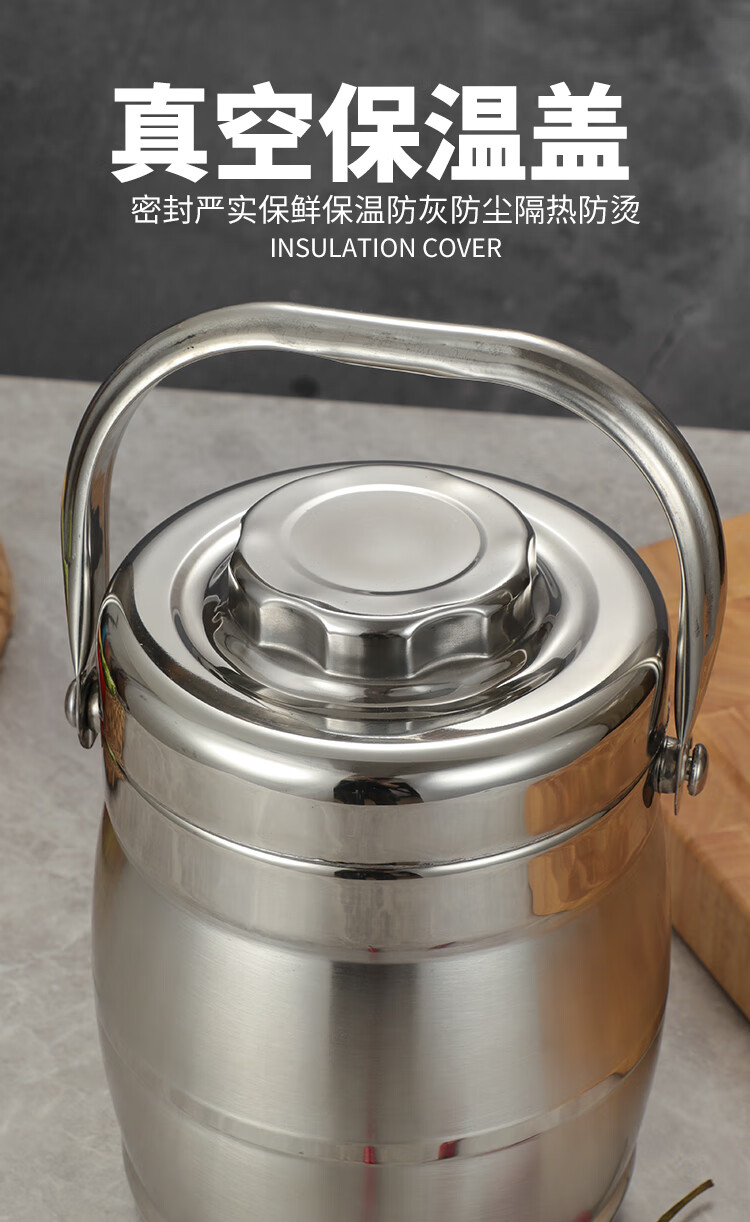 DEDT thickened stainless steel double-layer thermal insulation pot lunch box for office workers and students large-capacity three-layer vacuum rice bucket and rice basket 2.8L thermal insulation pot