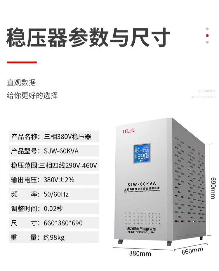 Delide voltage stabilizer 380v three-phase high power/30/50/60/80/100KW laser voltage stabilizer 380v copper column voltage stabilizer 60kw