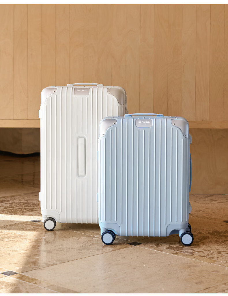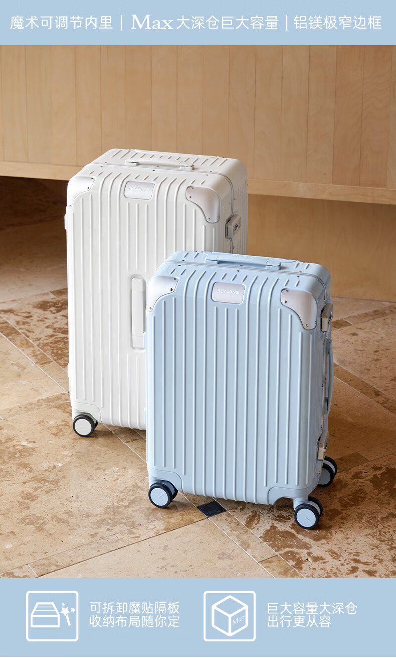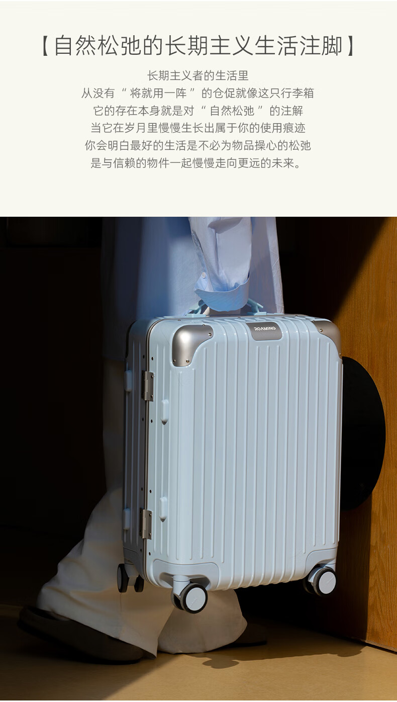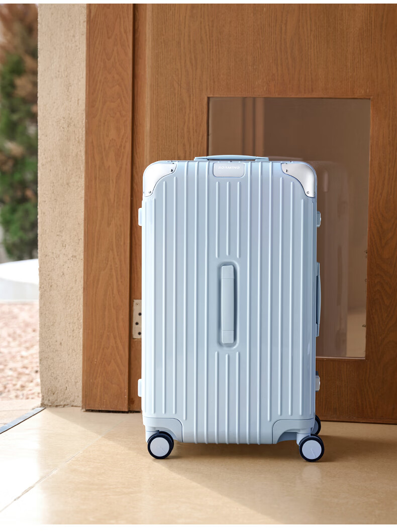 Roaming suitcase aluminum frame extra large capacity suitcase trolley case boarding case for men and women Breeze Blue 26 inches PLUS box type Overseas travel, domestic travel more than 10 days