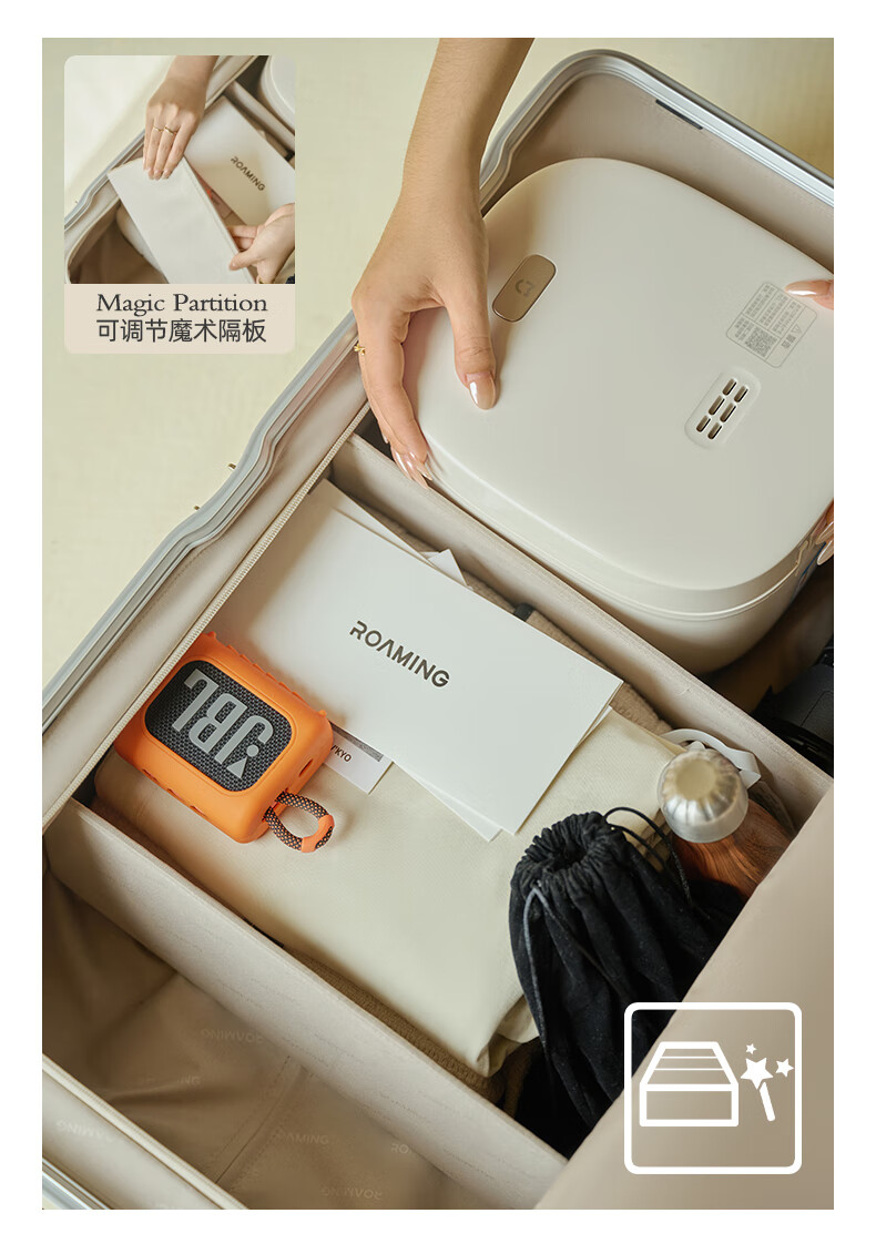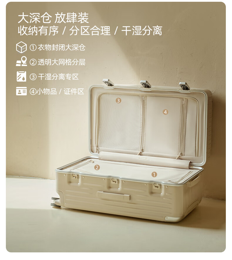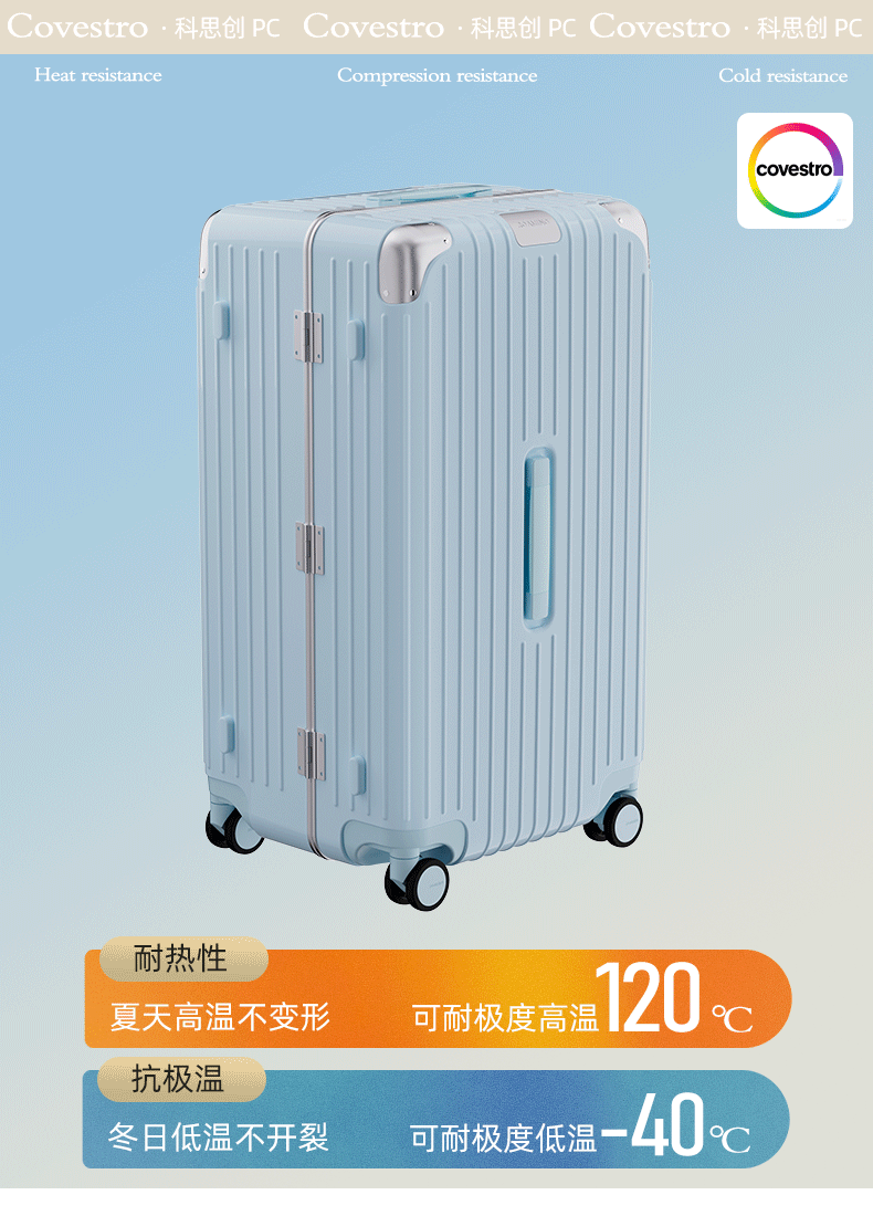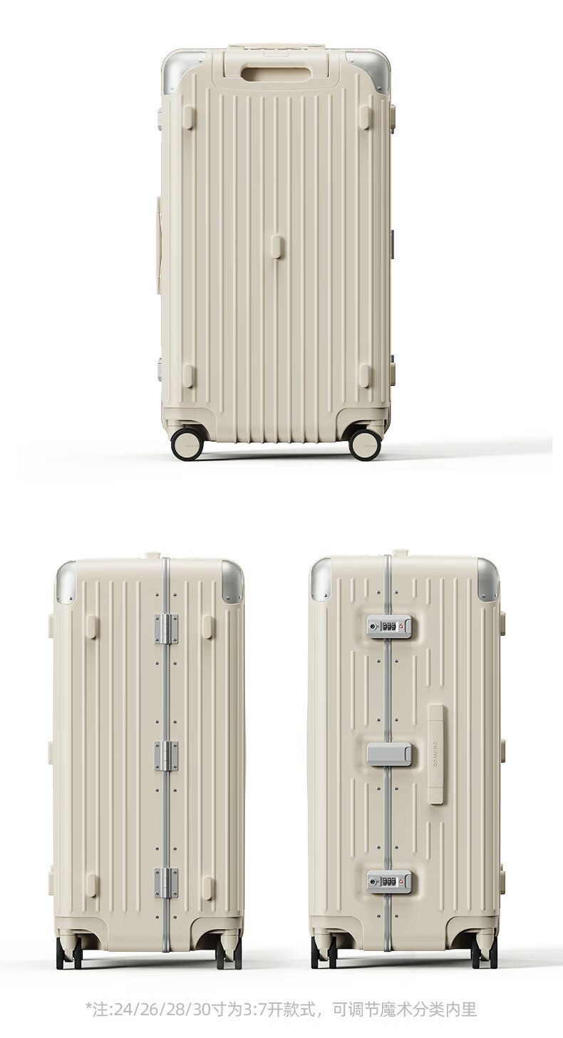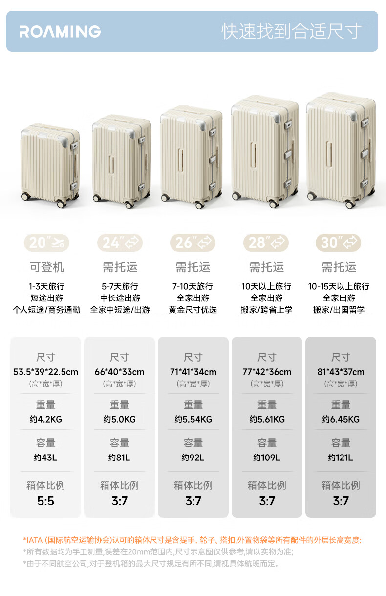 Roaming suitcase aluminum frame extra large capacity suitcase trolley case boarding case for men and women Breeze Blue 26 inches PLUS box type Overseas travel, domestic travel more than 10 days