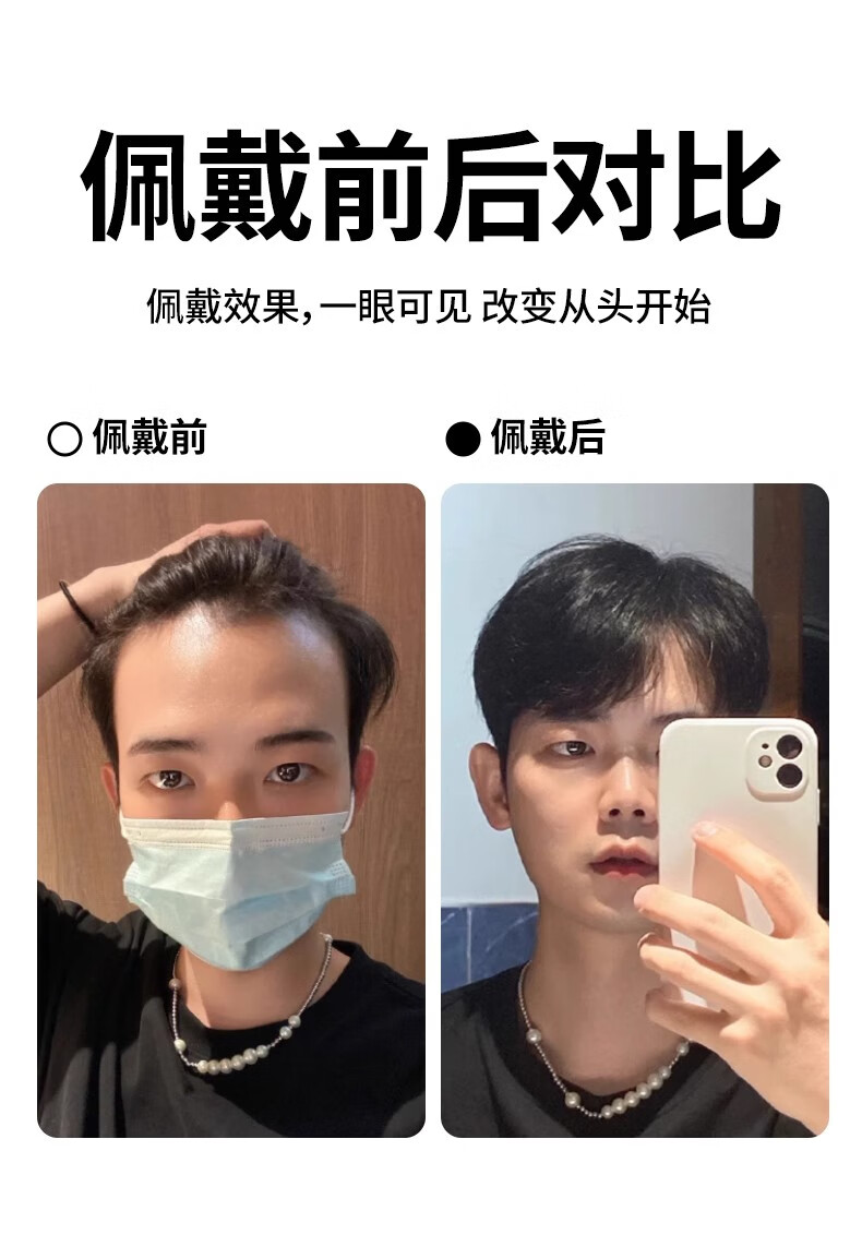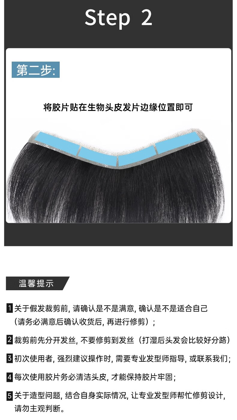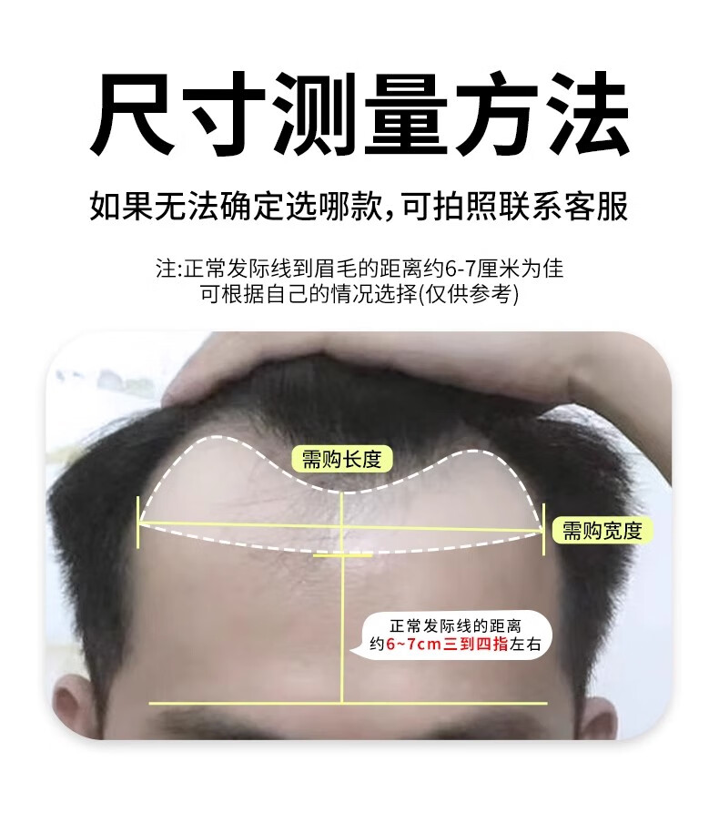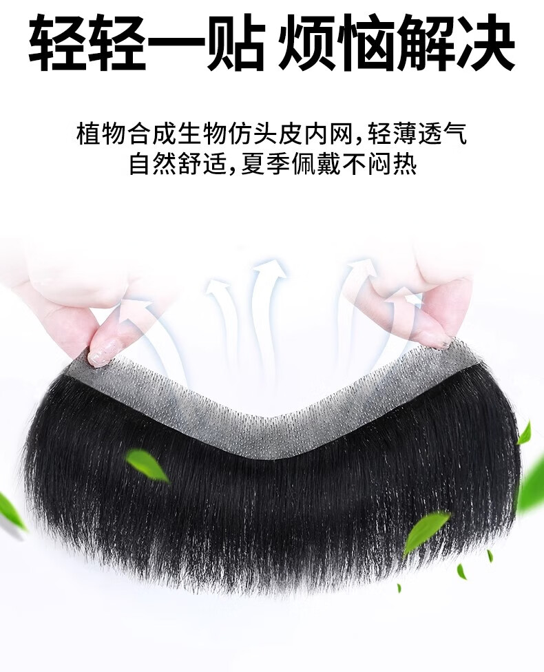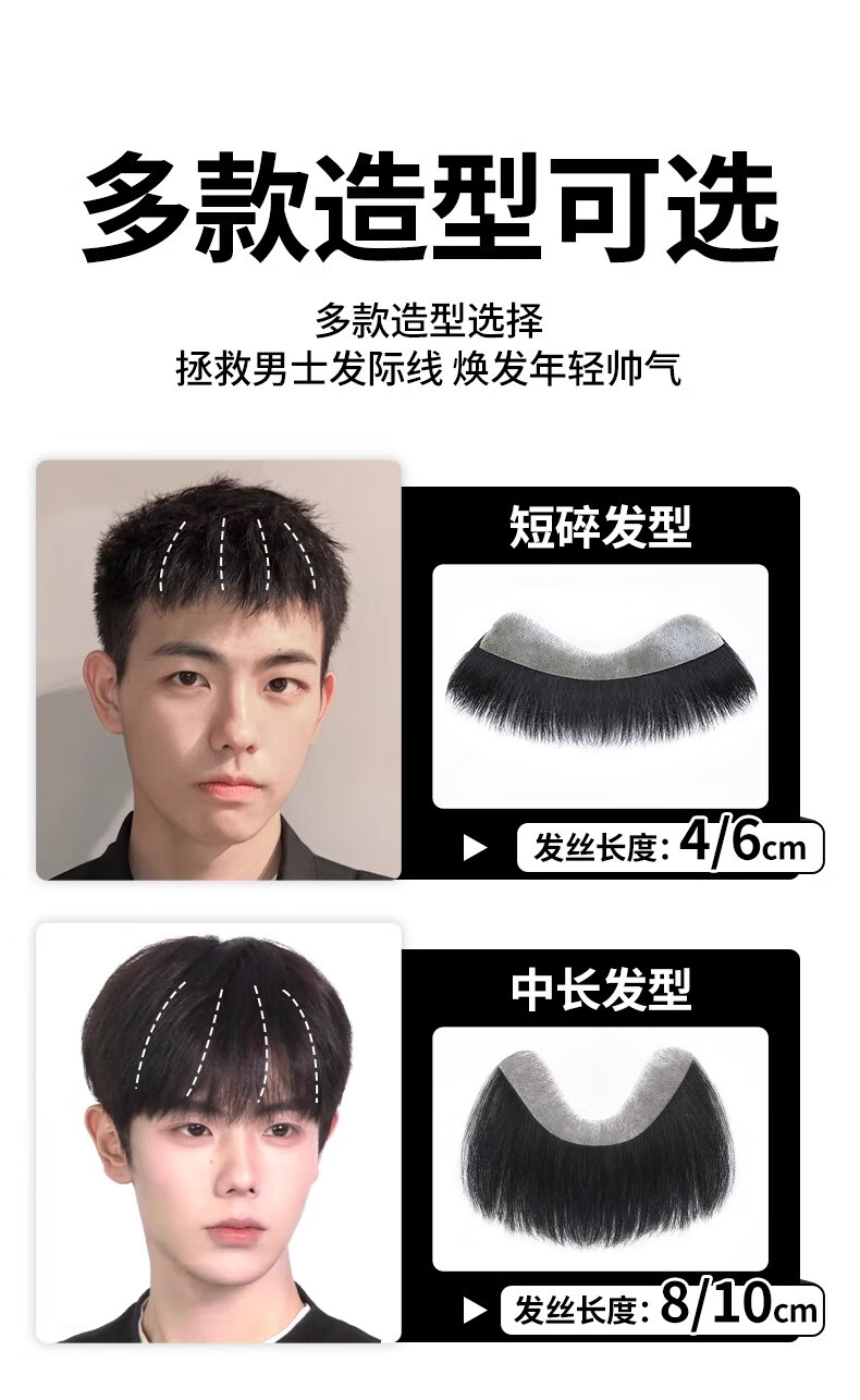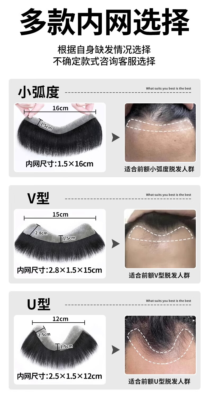 M-shaped men's wig piece, forehead hairline wig patch, full real hair invisible traceless precision trimmed bangs wig piece, blank style 1.5*16 15CM