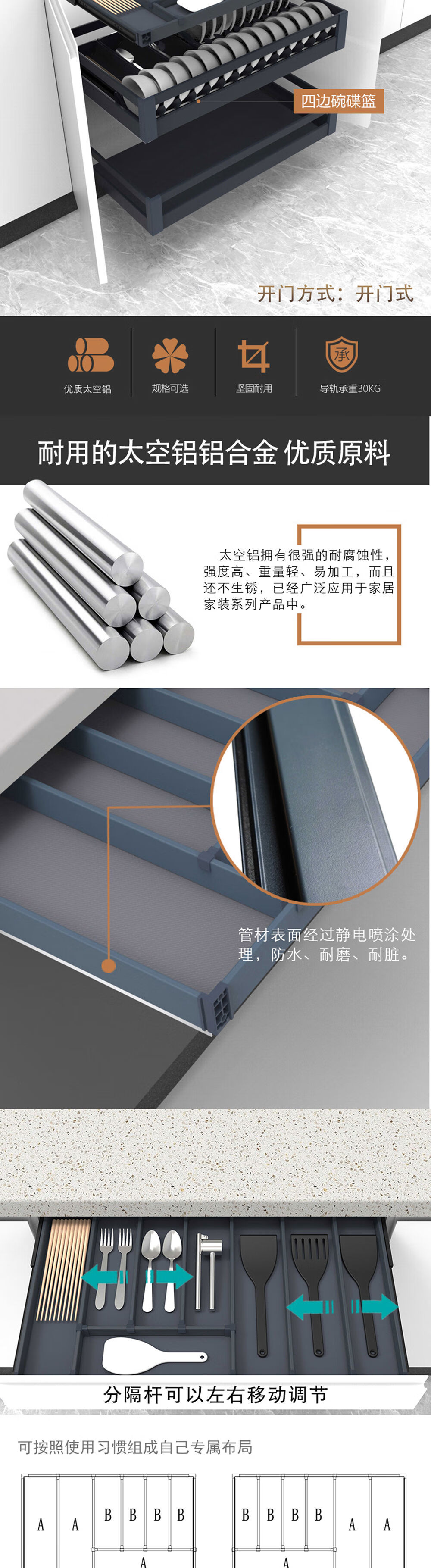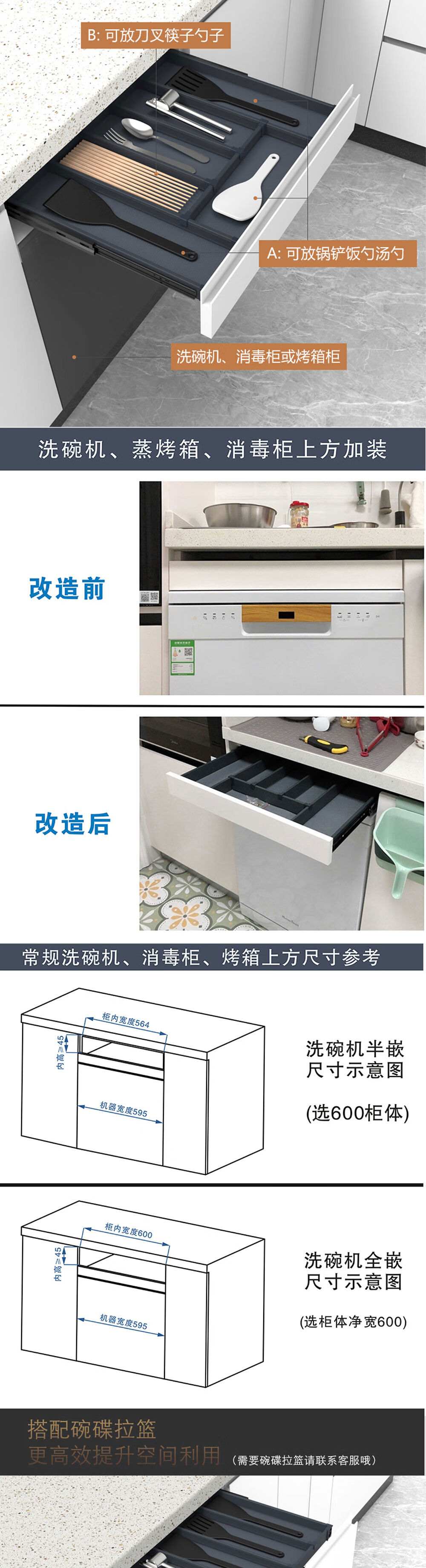 Kitchen remodeling cabinet tool single-layer drawer storage basket dishwasher rack custom shallow cabinet pull 800 cabinet model with damping guide rail without panel single-layer drawer type