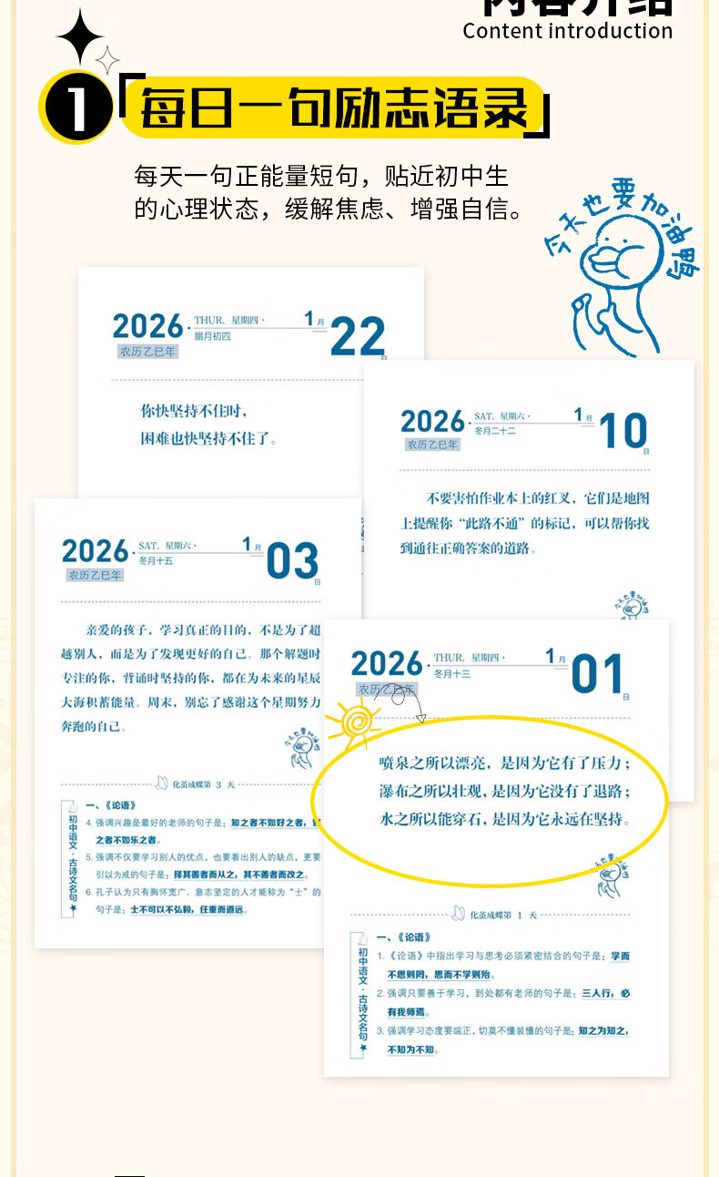 Ready stock, turn cocoon into butterfly, fish leap over the dragon's gate, 2026 calendar of inspirational quotes for junior high school students, countdown calendar, knowledge points self-discipline manual for students in the first, second, third and third grades of junior high school, gift for junior high school students, inspirational countdown to high school entrance examination, knowledge points desk calendar, transform cocoon into butterfly, 2026 calendar of inspirational quotes for junior high school students