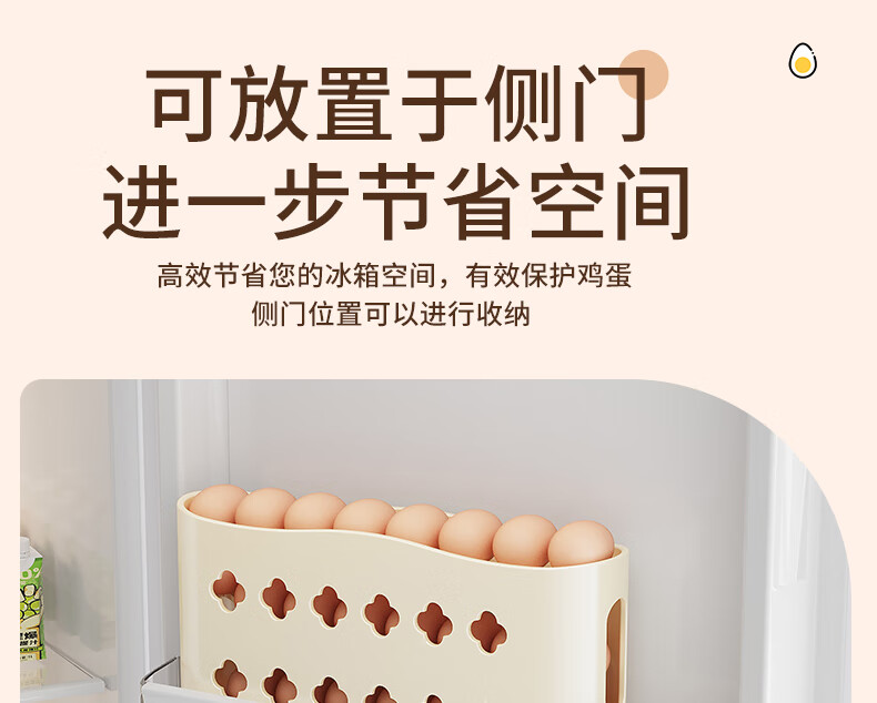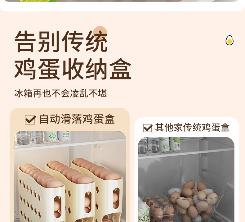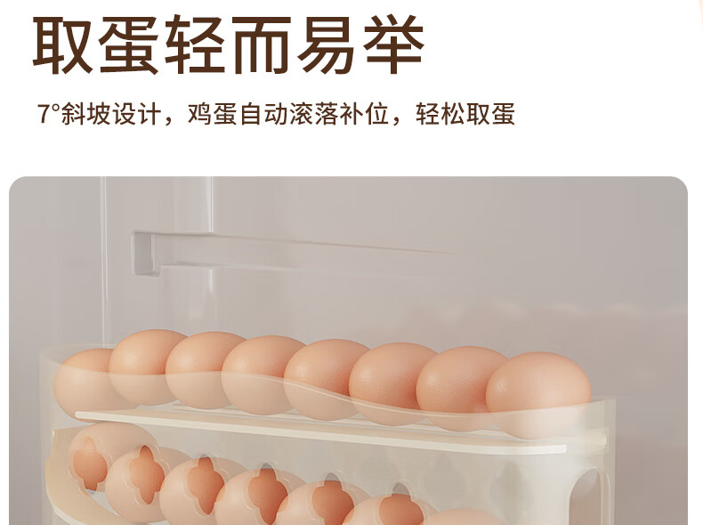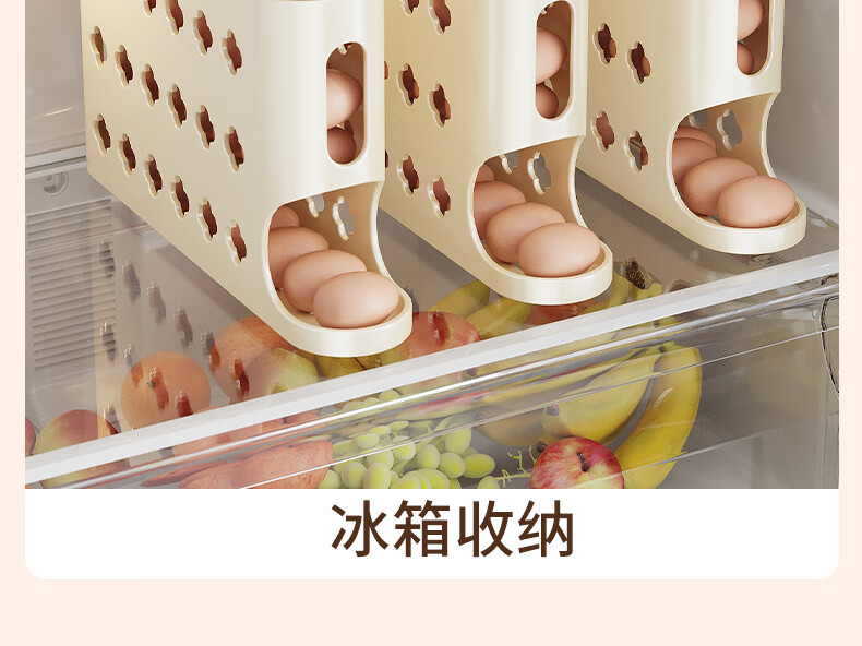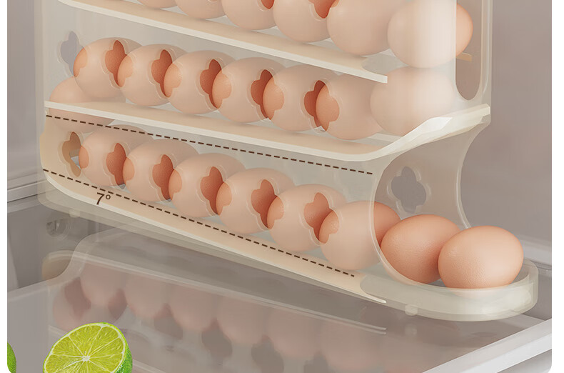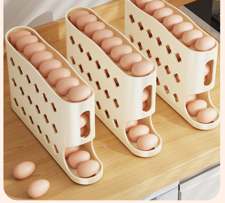 Erisi rolling egg storage box kitchen multi-layer oblique automatic egg rolling device refrigerator side door egg tray crisper cream color - 1 pack can hold about 30 eggs
