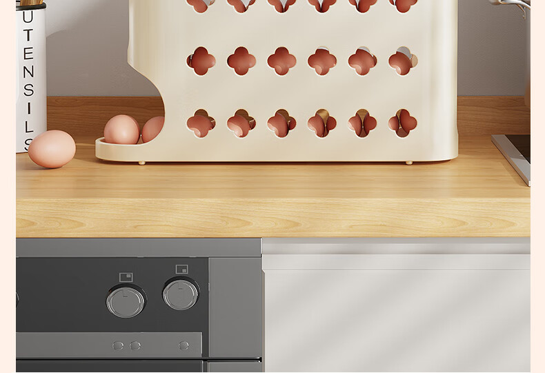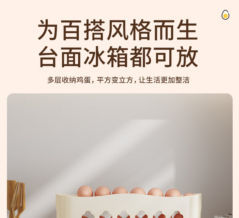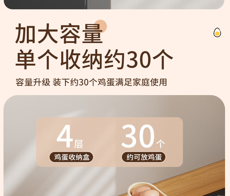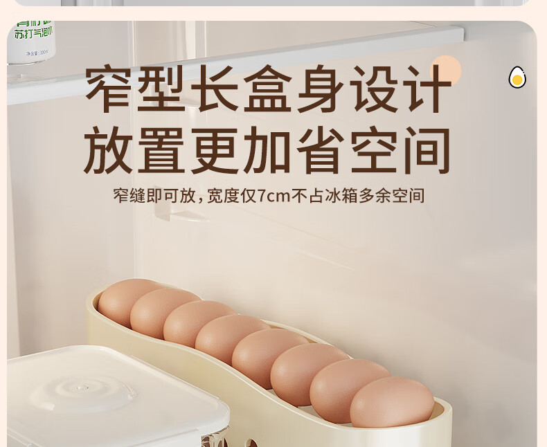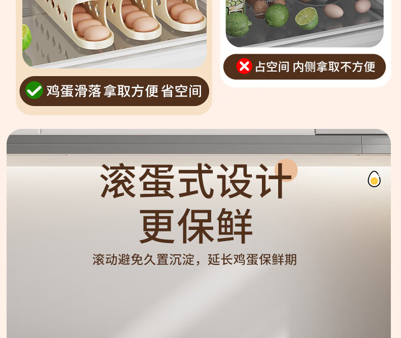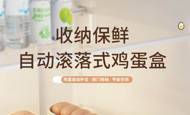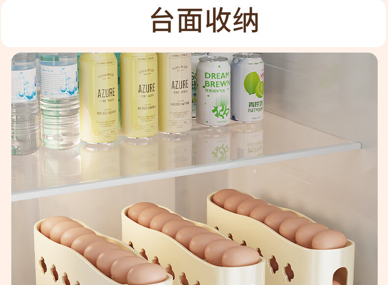 Erisi rolling egg storage box kitchen multi-layer oblique automatic egg rolling device refrigerator side door egg tray crisper cream color - 1 pack can hold about 30 eggs