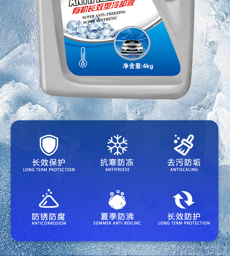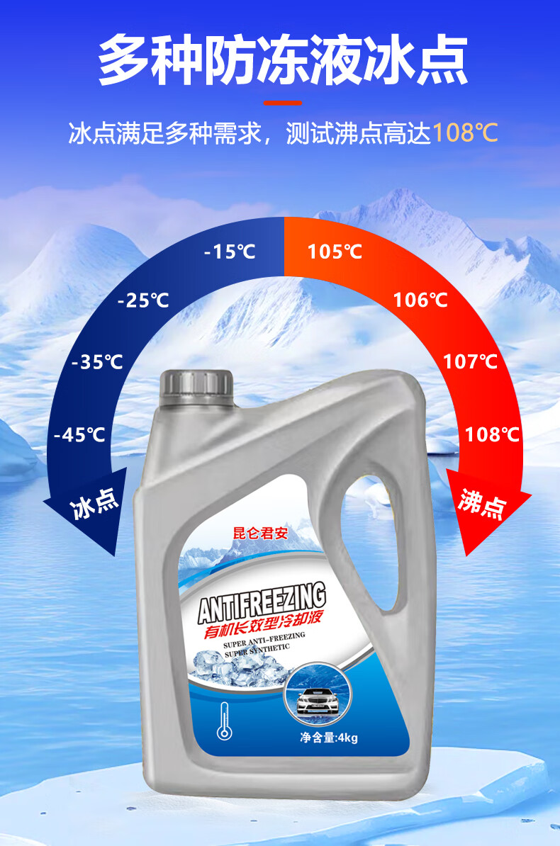 Antifreeze long-lasting car engine water tank genuine coolant red green car large barrel for all seasons 4KG -45 antifreeze red for all models