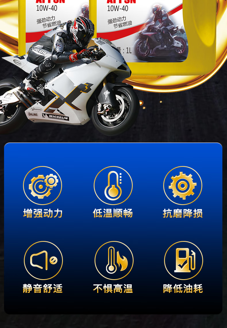 Motorcycle oil 125 Suzuki pedal curved beam Yamaha 150 three-wheel motorcycle four-season general engine oil 1 bottle - fully synthetic motorcycle oil SN10W-40