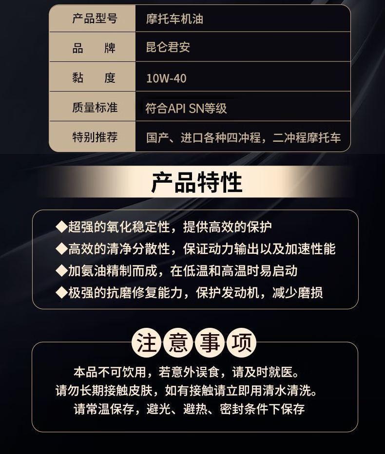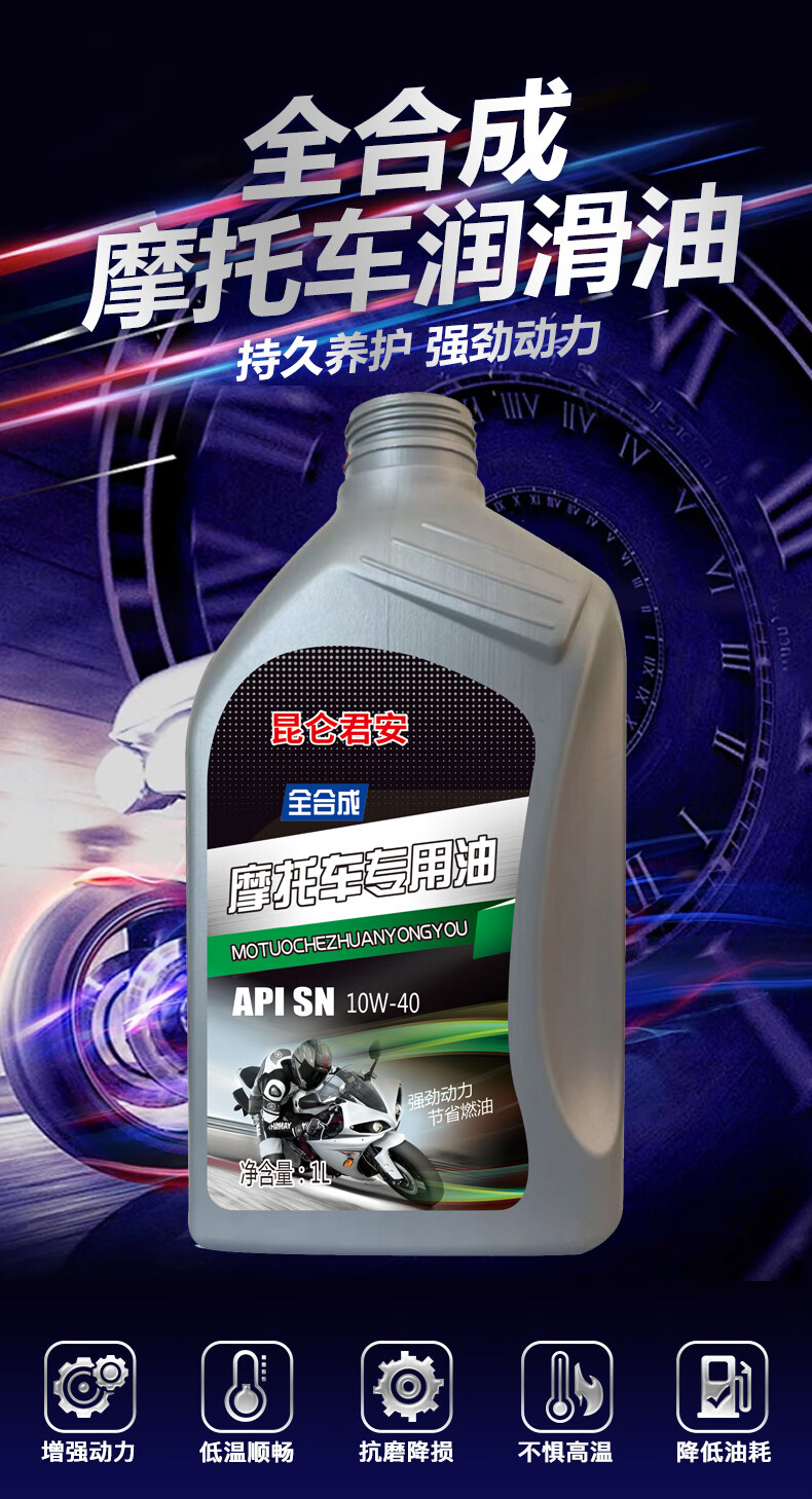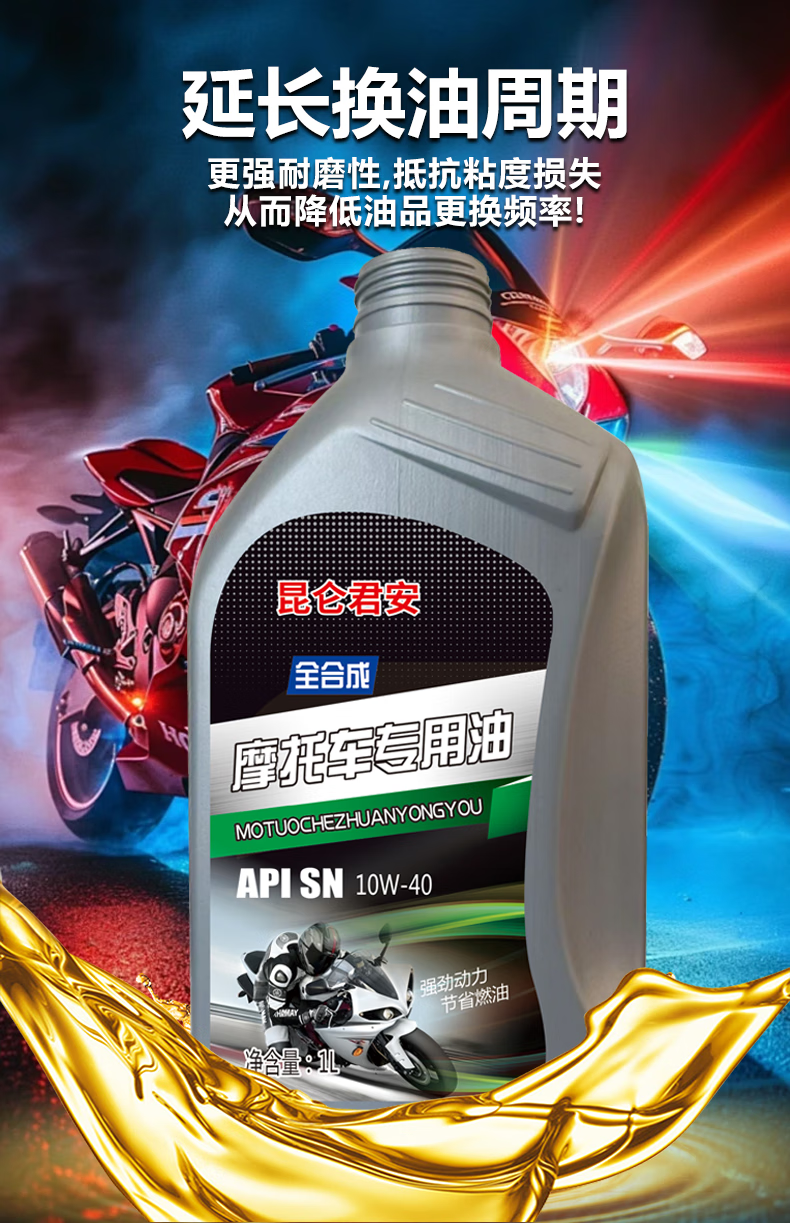 Fully synthetic motorcycle oil SN 10W-40 Honda Suzuki Yamaha four-stroke lubricant for all seasons 2 bottles SN10W-40 fuel-saving lubrication and noise reduction