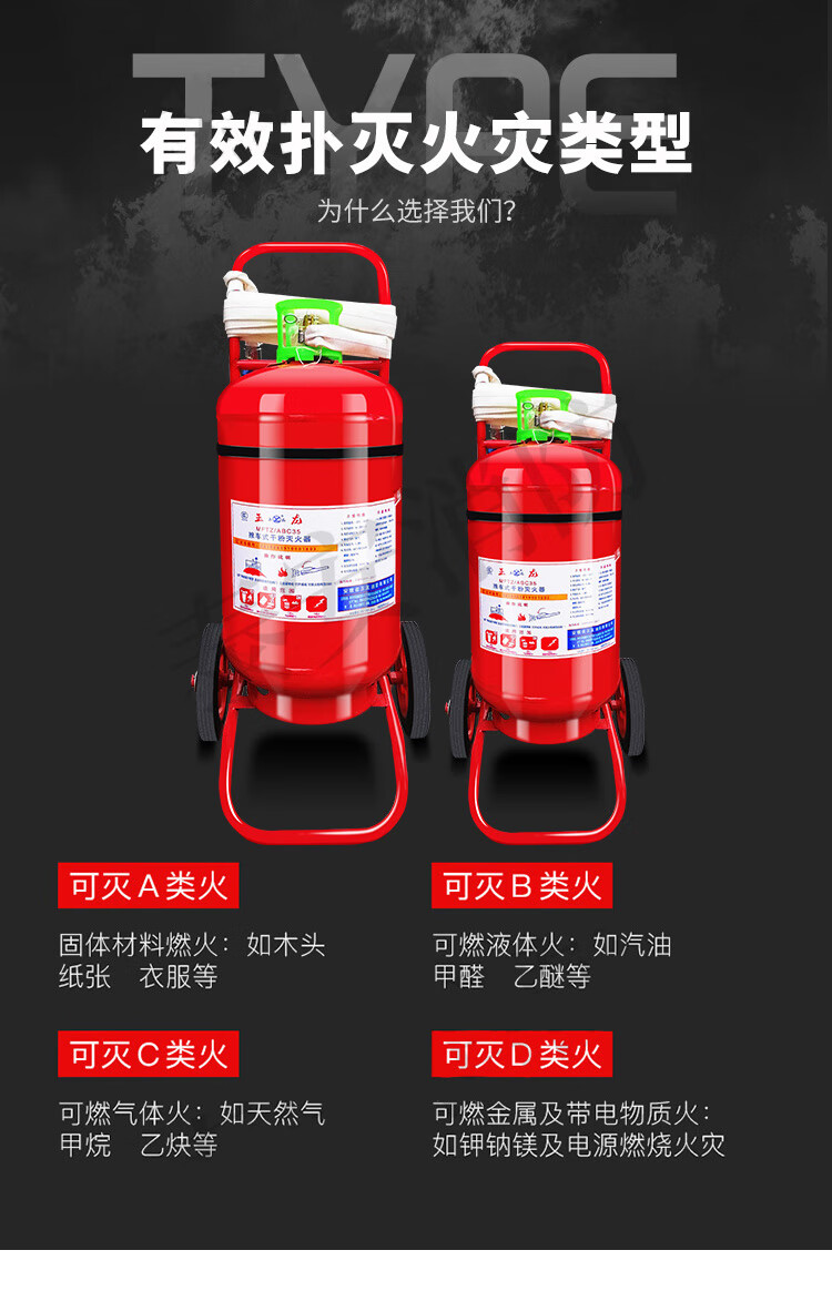 Trolley type dry powder fire extinguisher 35kg 50kg large warehouse factory gas station factory special equipment 25kg trolley metal fire extinguisher