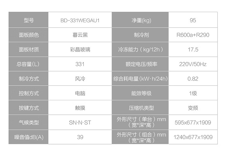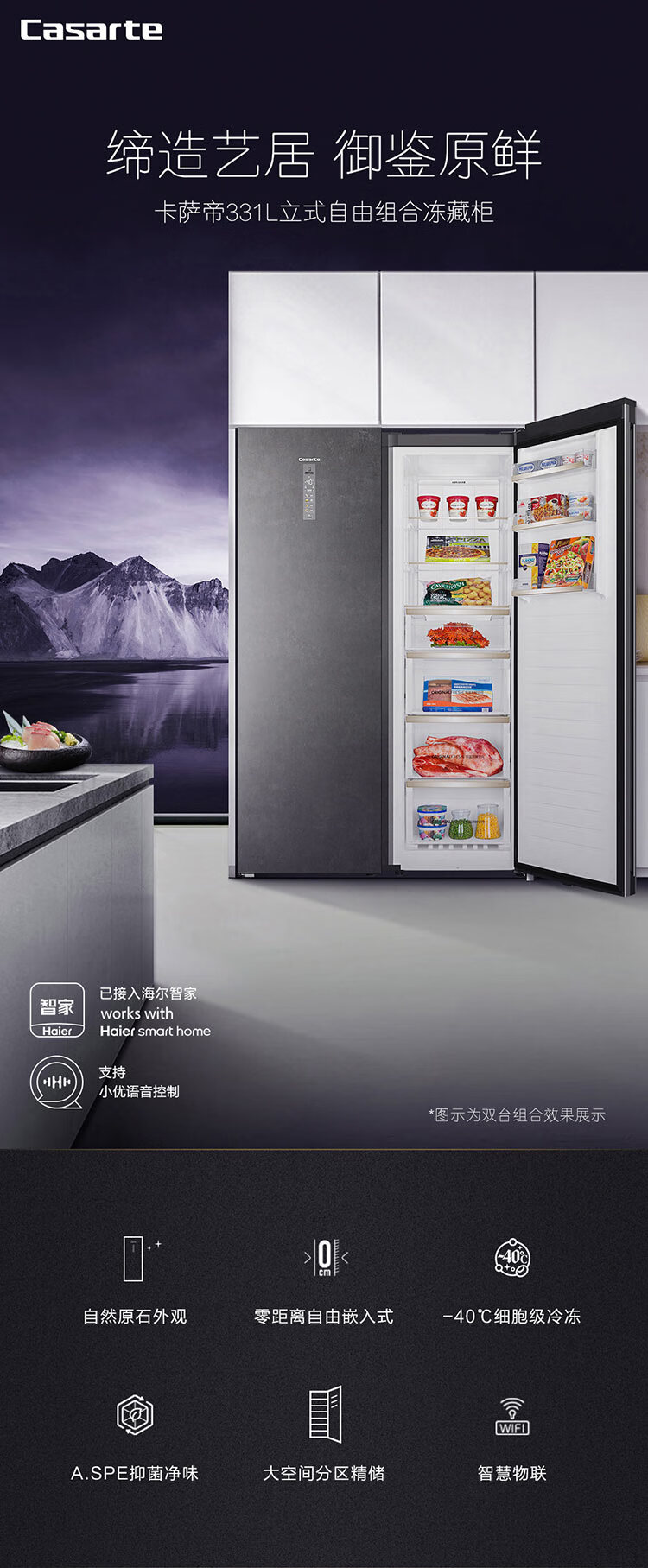 Casarte vertical freezer BD-331WEGAU1331 liter air-cooled deep-cooling intelligent large-capacity household embedded 0L Muyunhei