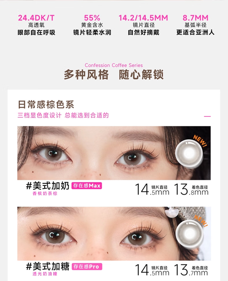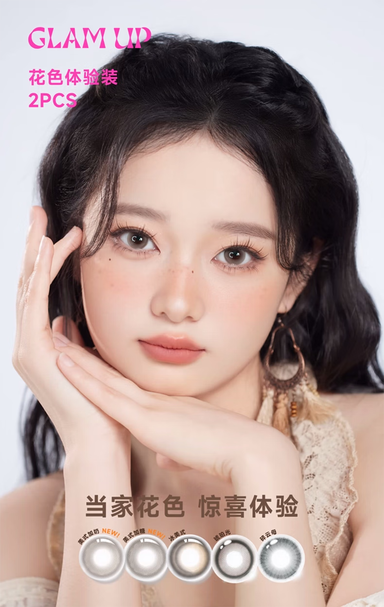 Beauty Screen Trial Pack GLAM UP Daily Disposable 2 Pieces Coffee Series Color Contact Lenses Hydrogel Color Contact Lenses Daily Disposable 2 Pieces Ice American Style 0 Degree